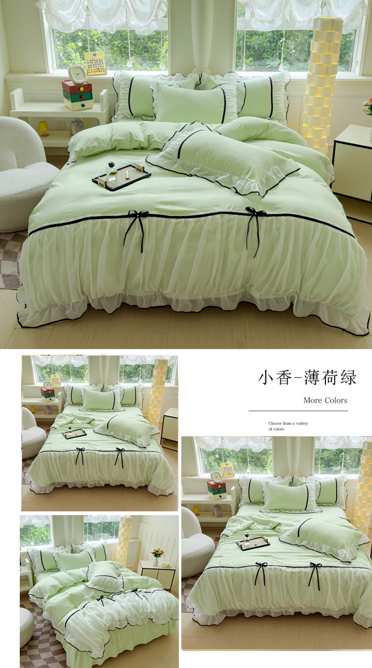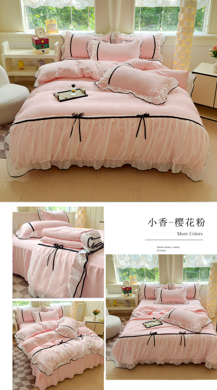 商品名称:(总)(总)漫布云2025春夏韩版公主风小香风公主风水洗棉工艺款四件套法式蕾丝花边床裙款四件套