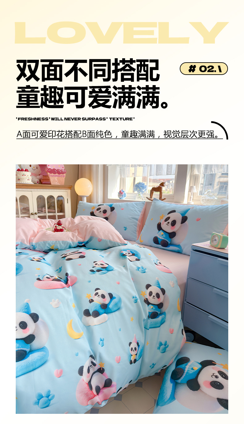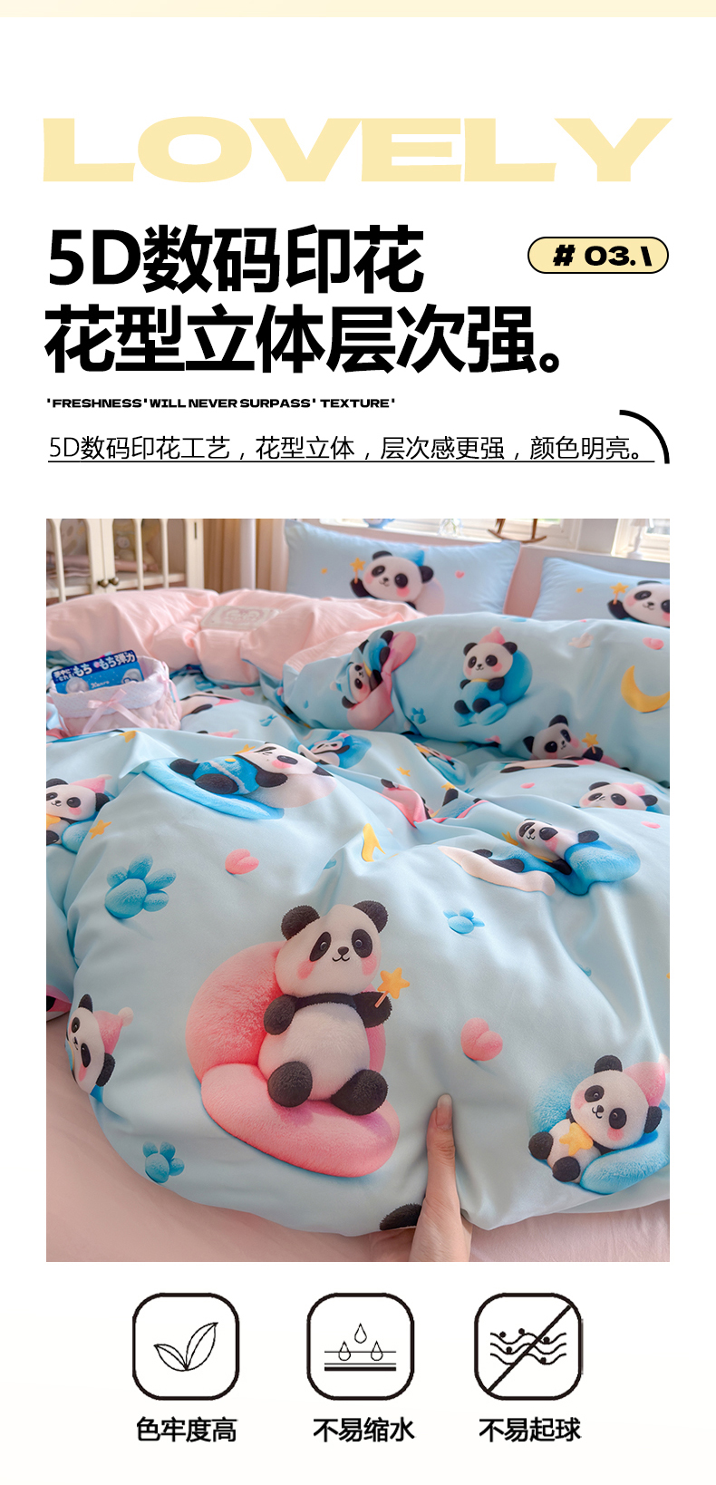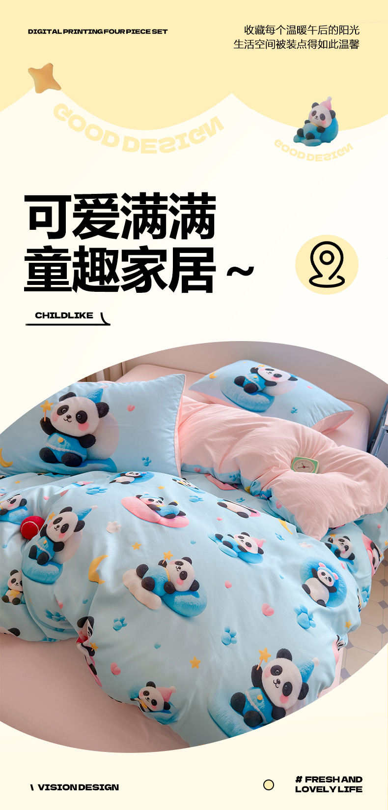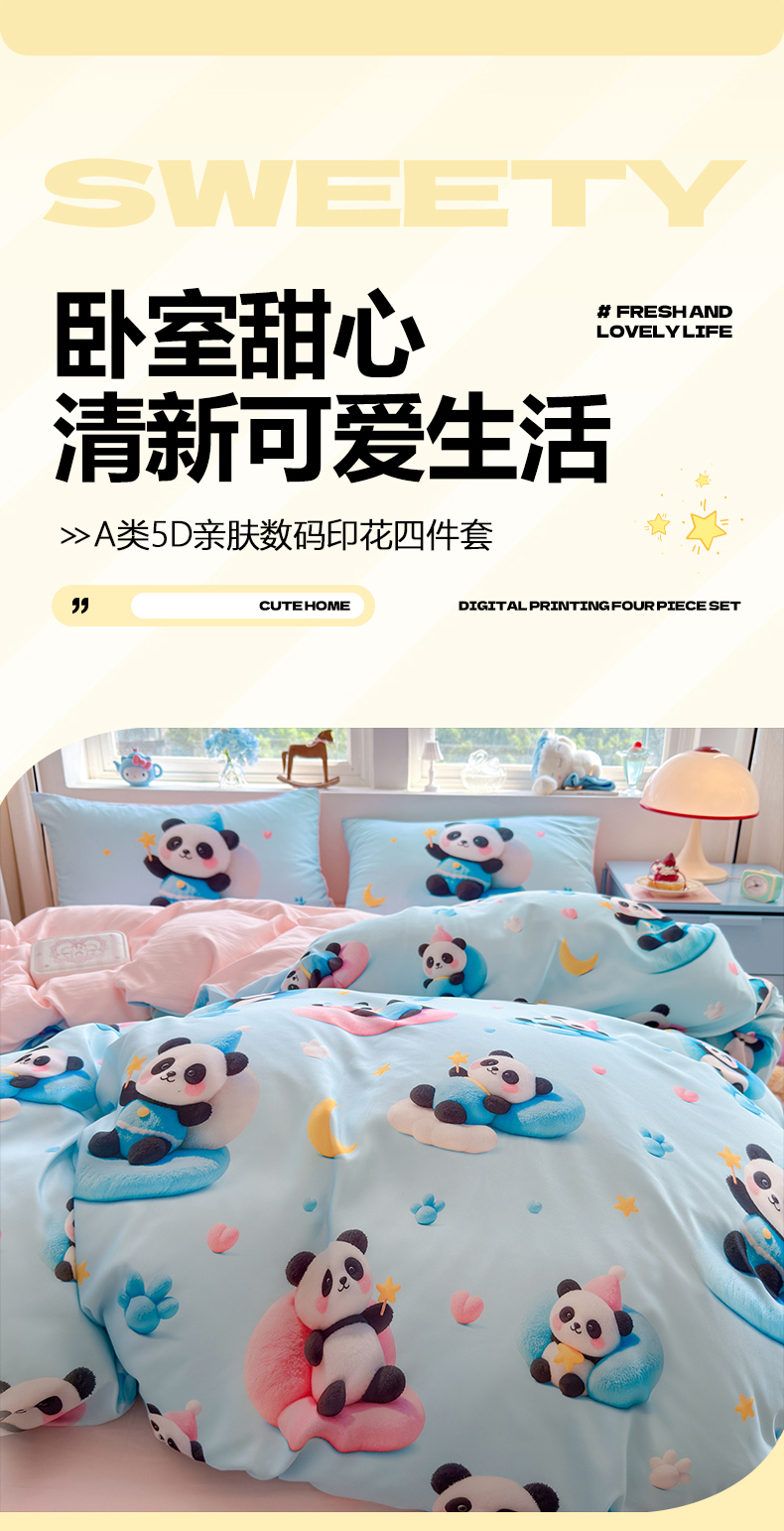 当前位置: 91家纺网 > 商品网购 > 床品套件 > 四件套 > 其它四件套 > 优卡迪家纺馆 2025新款110克5D数码印花四件套 梦幻熊猫