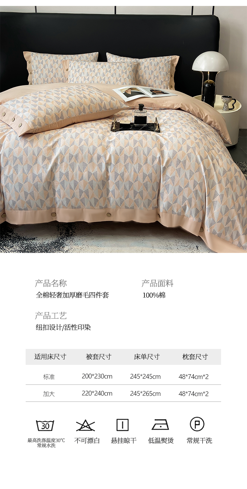商品名称:麦田家纺 2025新款全棉纯棉轻奢加厚磨毛纽扣款四件套 知凡