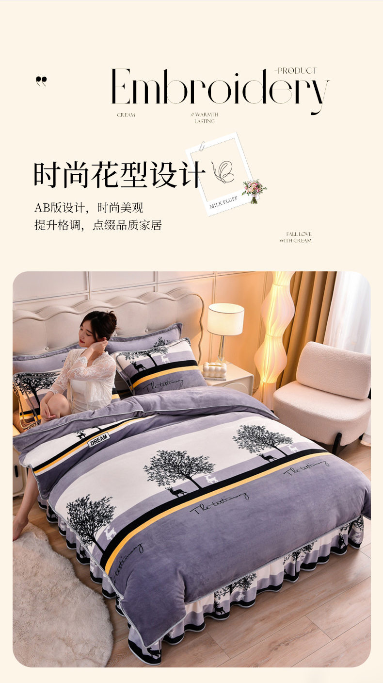 (总)绒宴 2025新款8.5斤牛奶绒金貂法莱绒床裙款保暖四件套,海棠,绮梦园,爱心派对,暗香,初遇,蝶梦,花海,林中有鹿,流金岁月,玫瑰庄园,萌豚卡皮,暮色恋人,蔷薇密语,绅士条纹,时光旅行,拾光,似水流年,一莲幽梦,郁金花开,约定,繁花,梦幻蝴蝶,钟爱一生,爱心箭,大蓝格,简易生活,音乐狗,骑士风范,小奶牛,爱丽丝-绿,多彩有杏,兰亭序,麦穗,蜜桔恋,秋日森林-鹿,三生有幸-灰,太空人,晚香玉,星星世界,英伦时尚,三生有幸-橘,时尚之约-蓝
