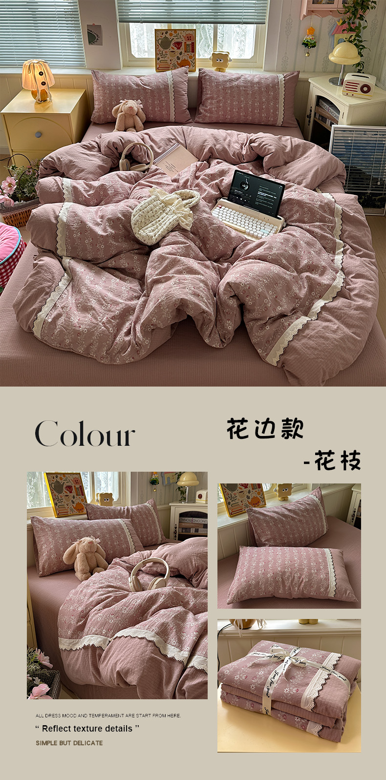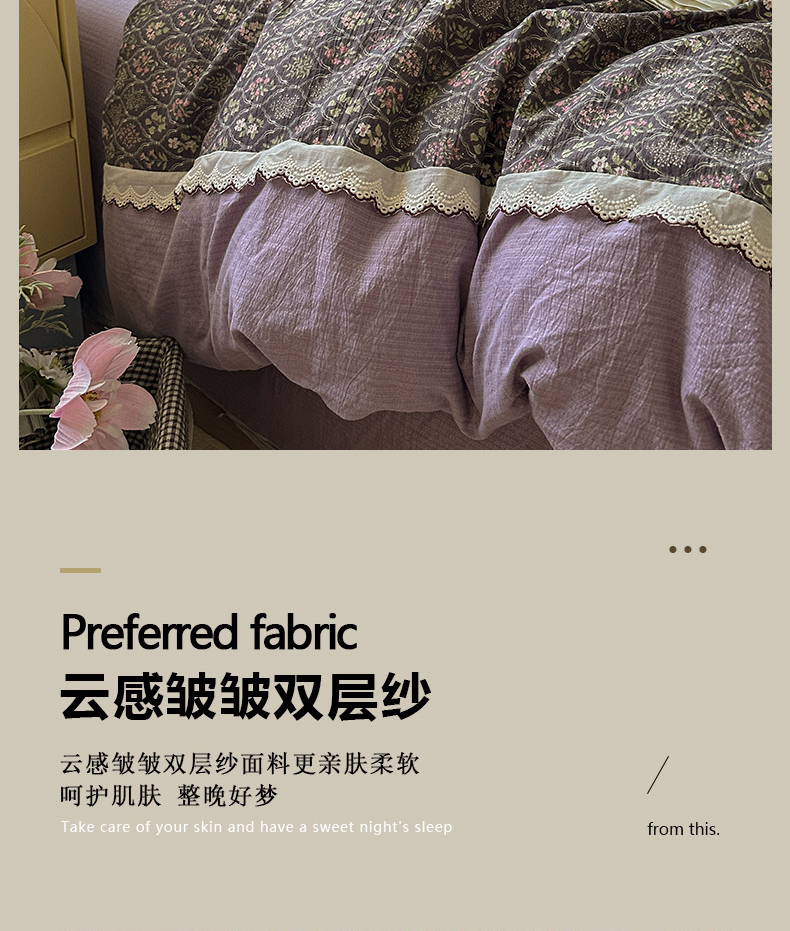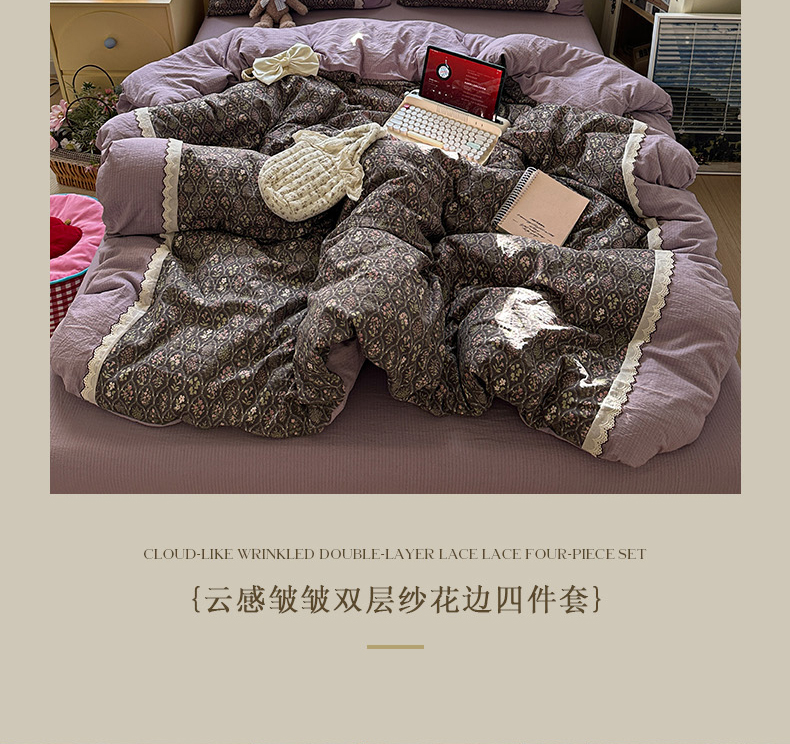 当前位置: 91家纺网 > 商品网购 > 床品套件 > 四件套 > 全棉普通四件套 > 水墨江南 2025新款云感皱皱纱全棉花边四件套场景一 花边款-秘境