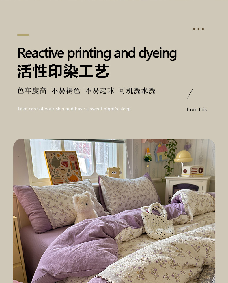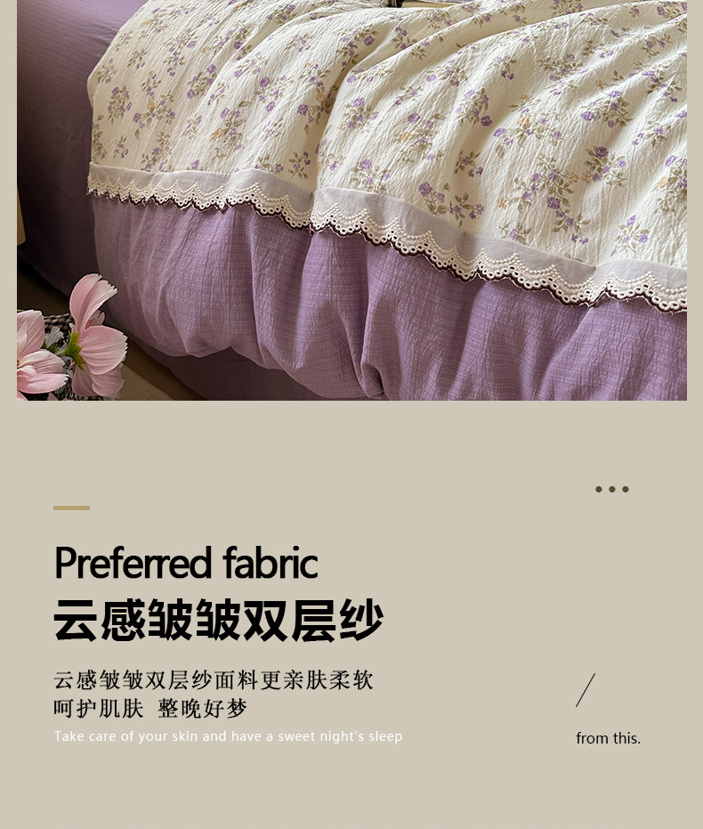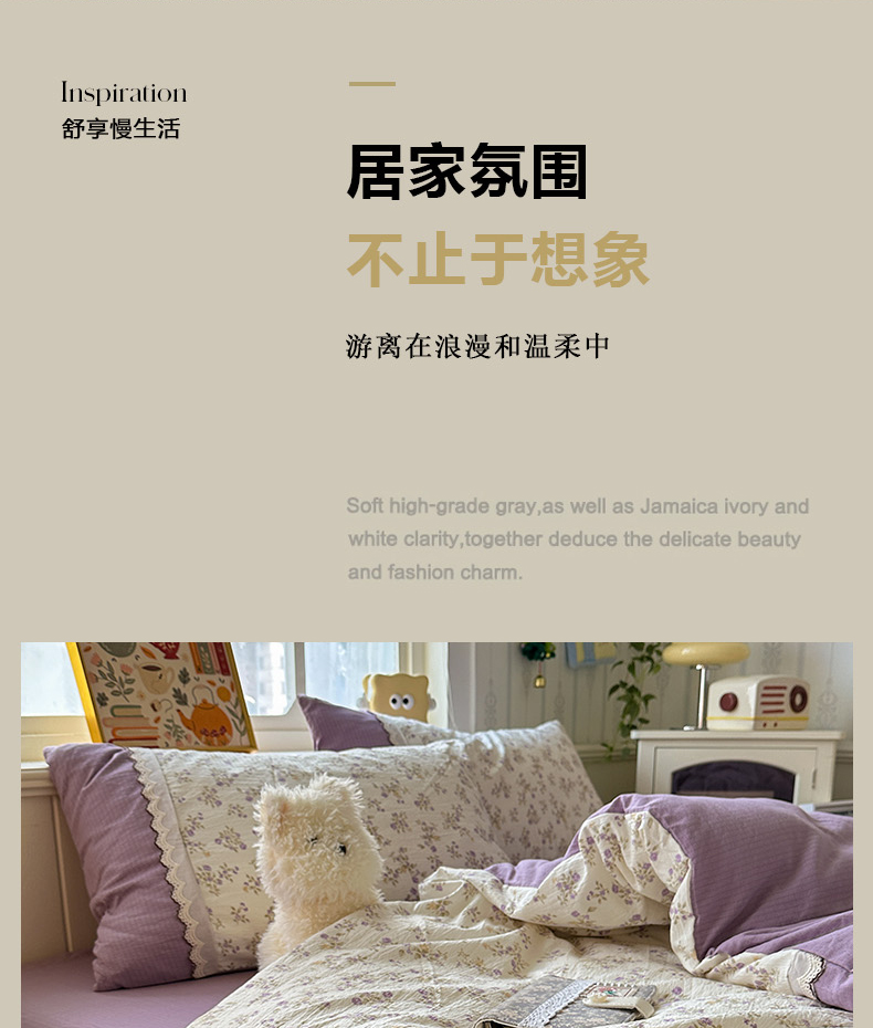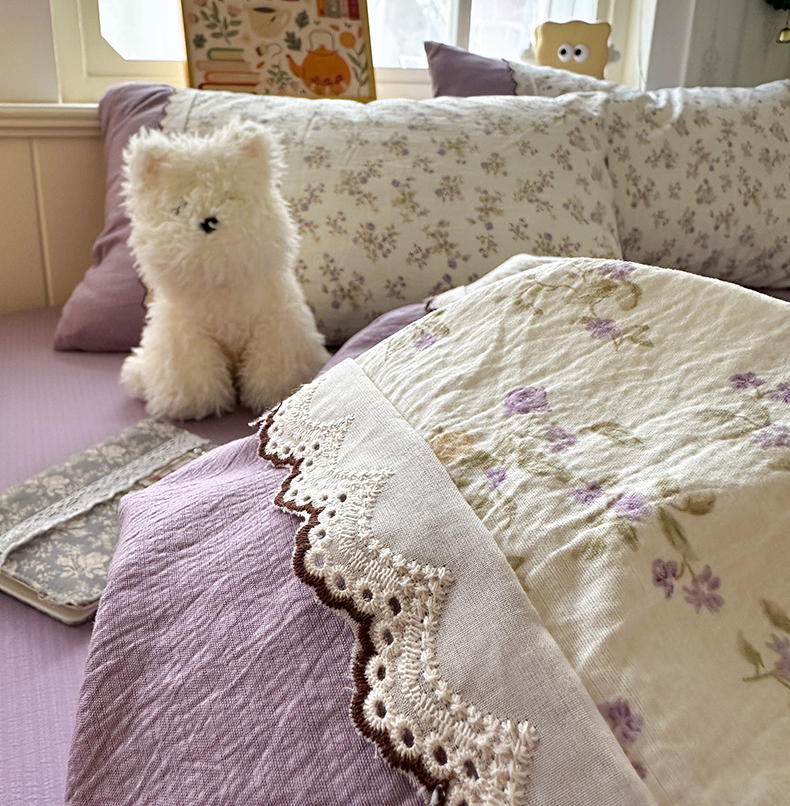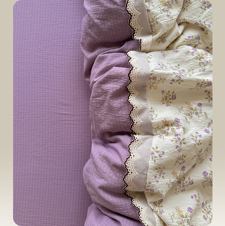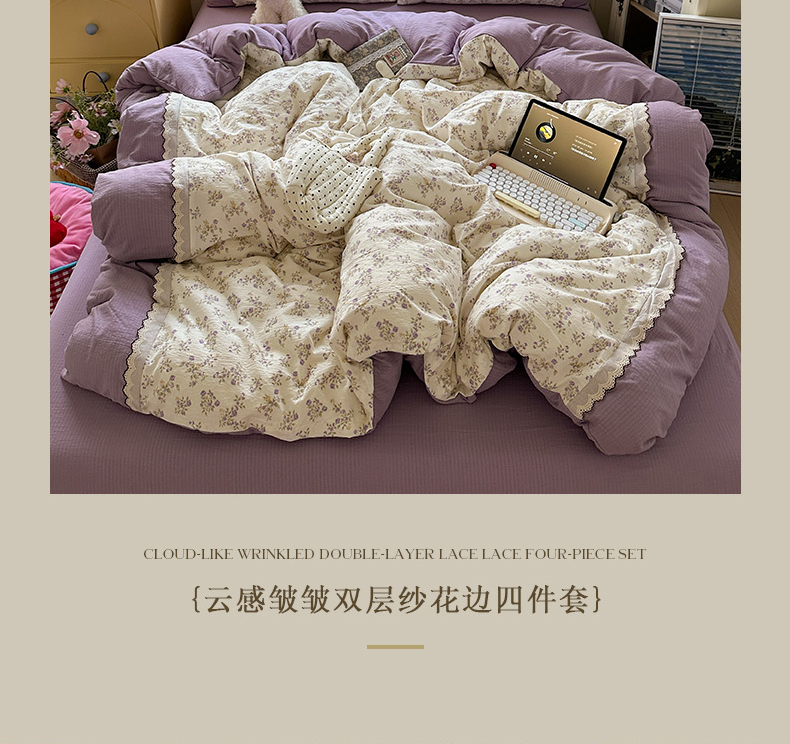 当前位置: 91家纺网 > 商品网购 > 床品套件 > 四件套 > 全棉普通四件套 > 水墨江南 2025新款云感皱皱纱全棉花边四件套场景一 花边款-浪漫花枝