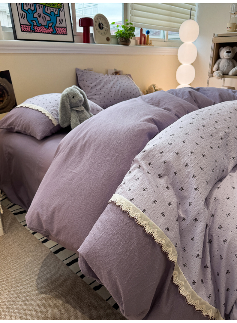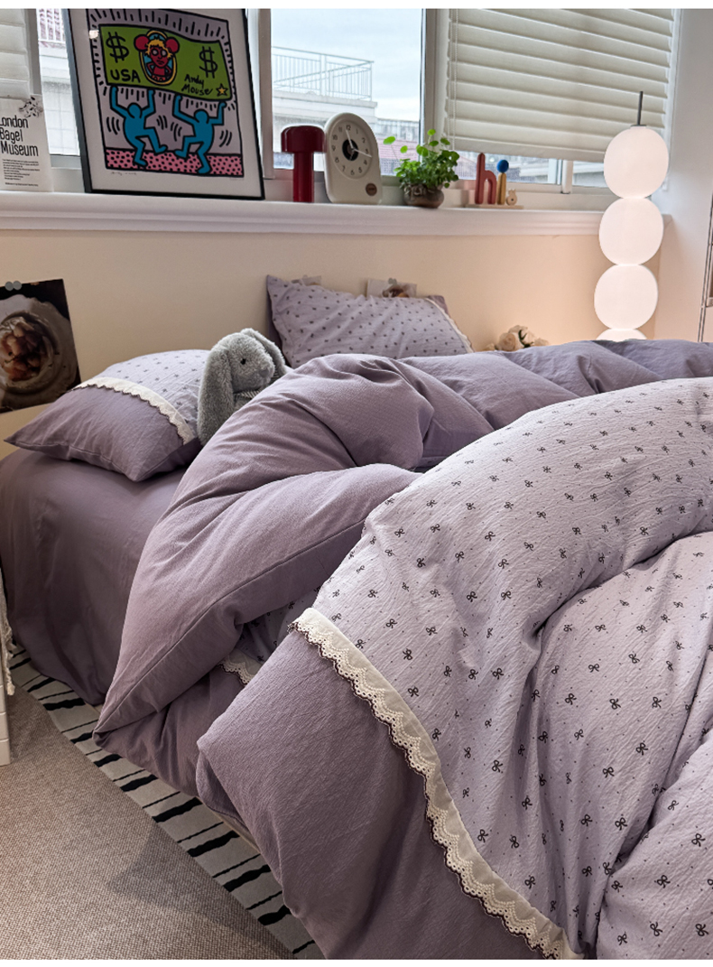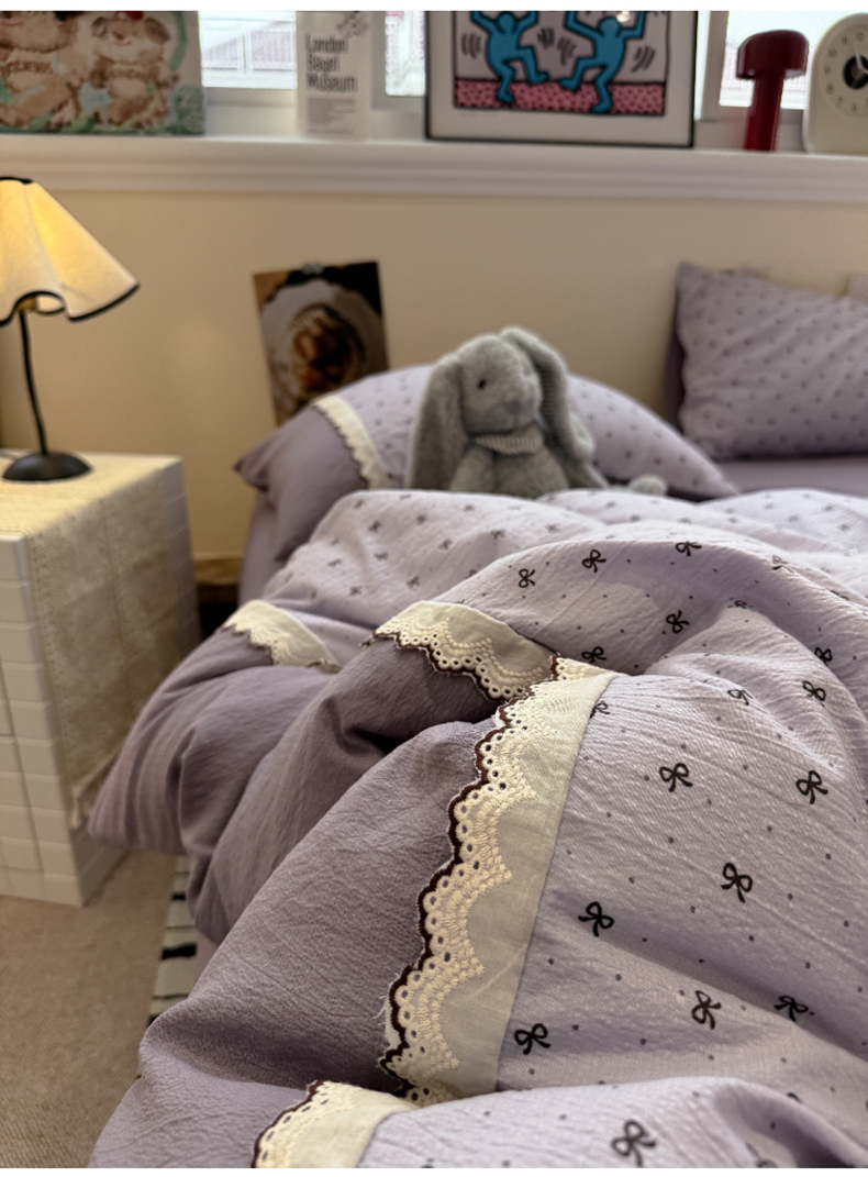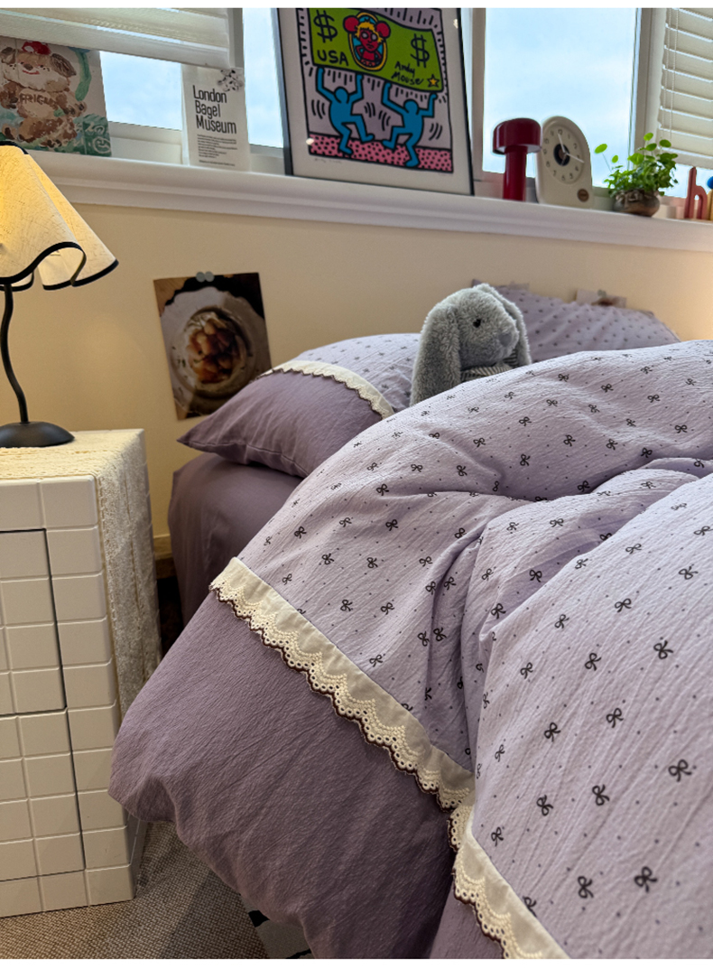 当前位置: 91家纺网 > 商品网购 > 床品套件 > 四件套 > 全棉普通四件套 > 水墨江南 2025新款云感皱皱纱全棉花边四件套-场景二 花边款-欢乐颂