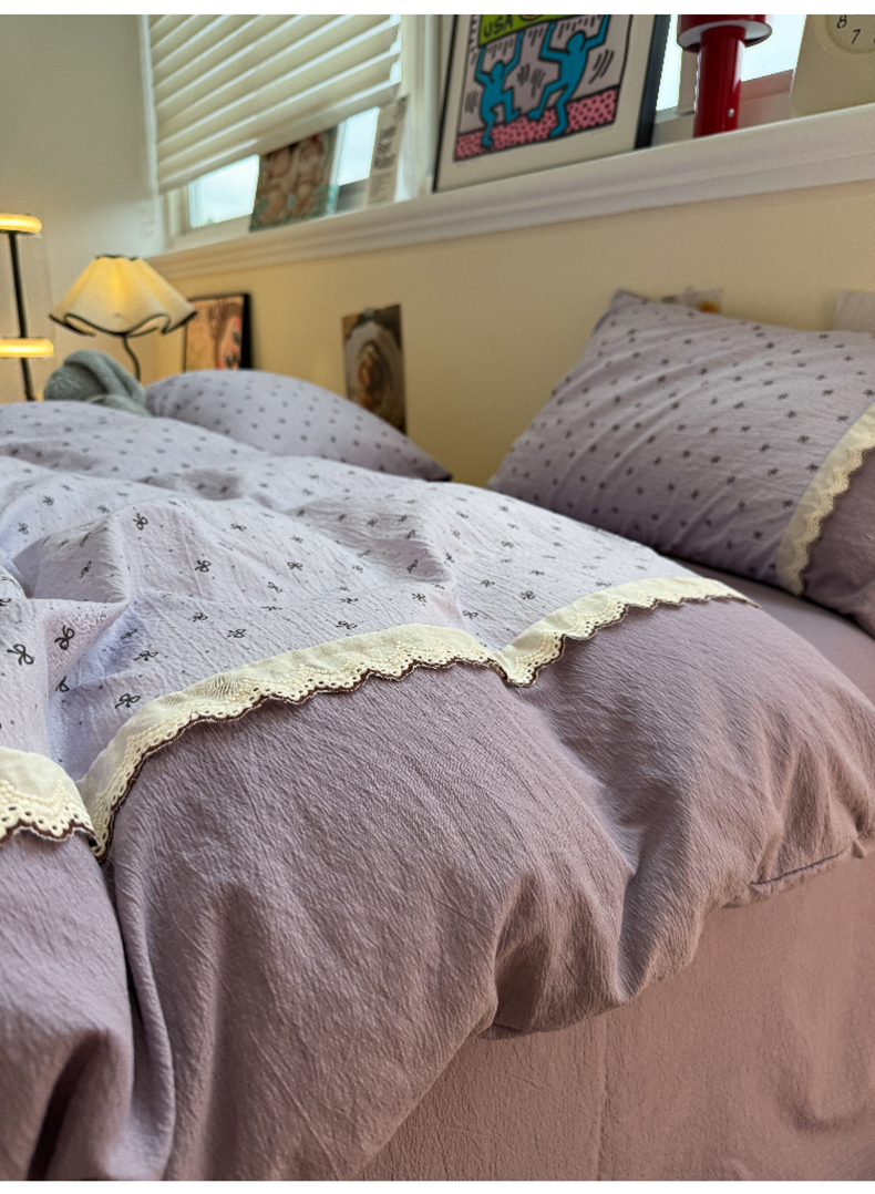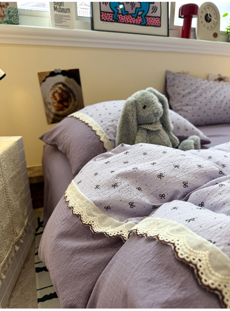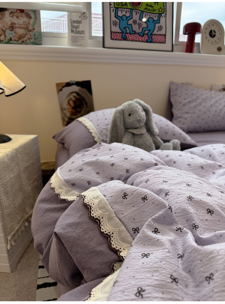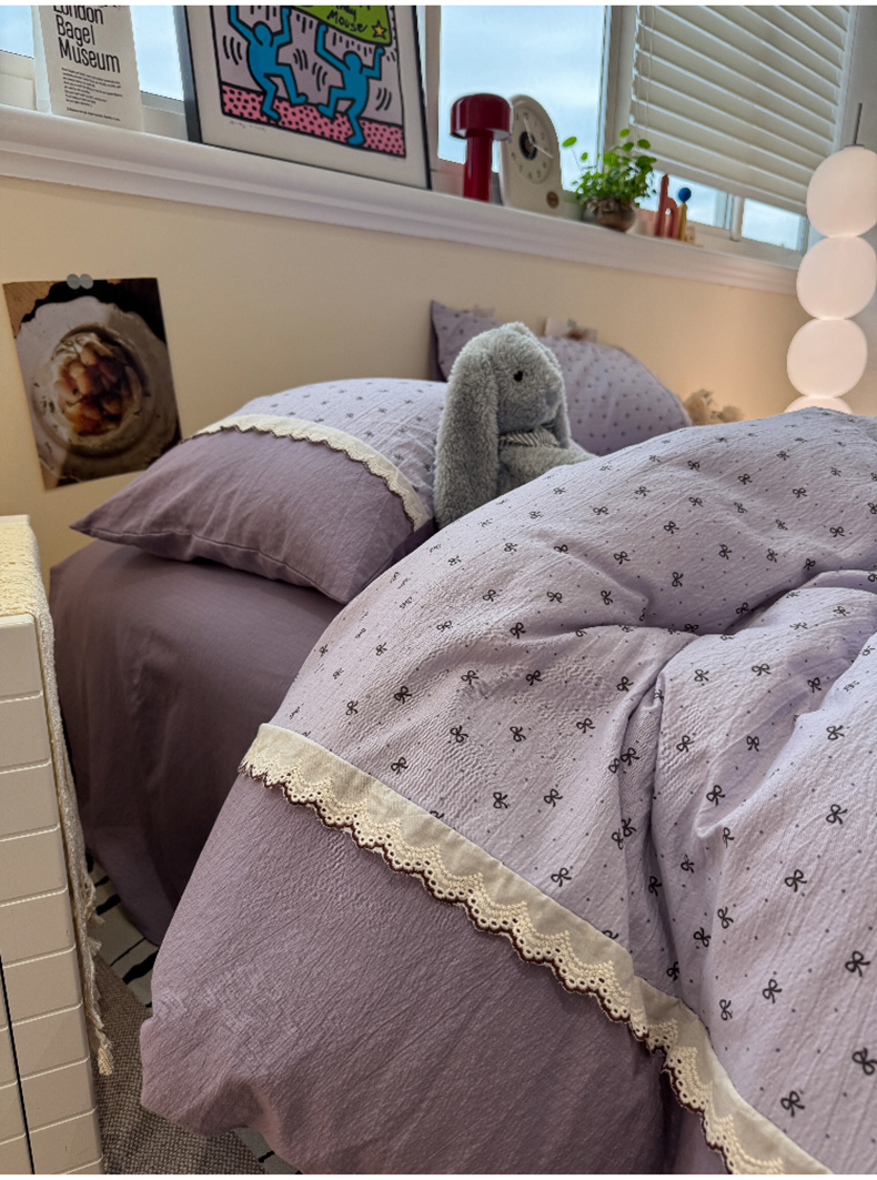 当前位置: 91家纺网 > 商品网购 > 床品套件 > 四件套 > 全棉普通四件套 > 水墨江南 2025新款云感皱皱纱全棉花边四件套-场景二 花边款-欢乐颂