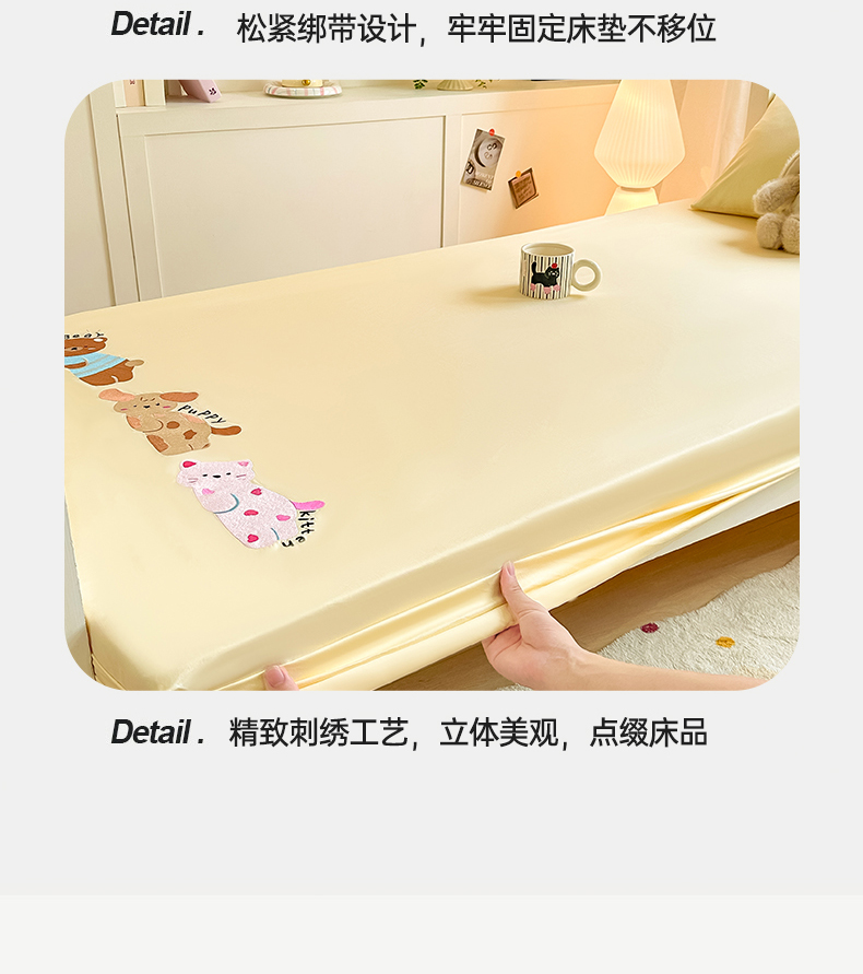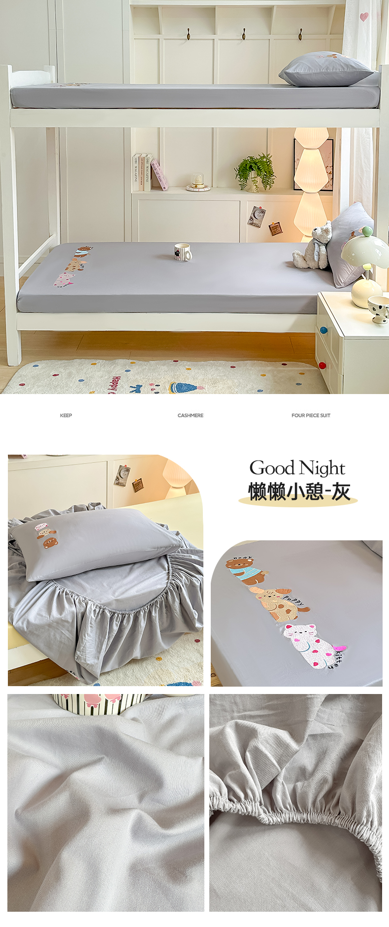 商品名称:(总)灰鲸 2025新款全棉刺绣床笠-懒懒小憩学生床系列