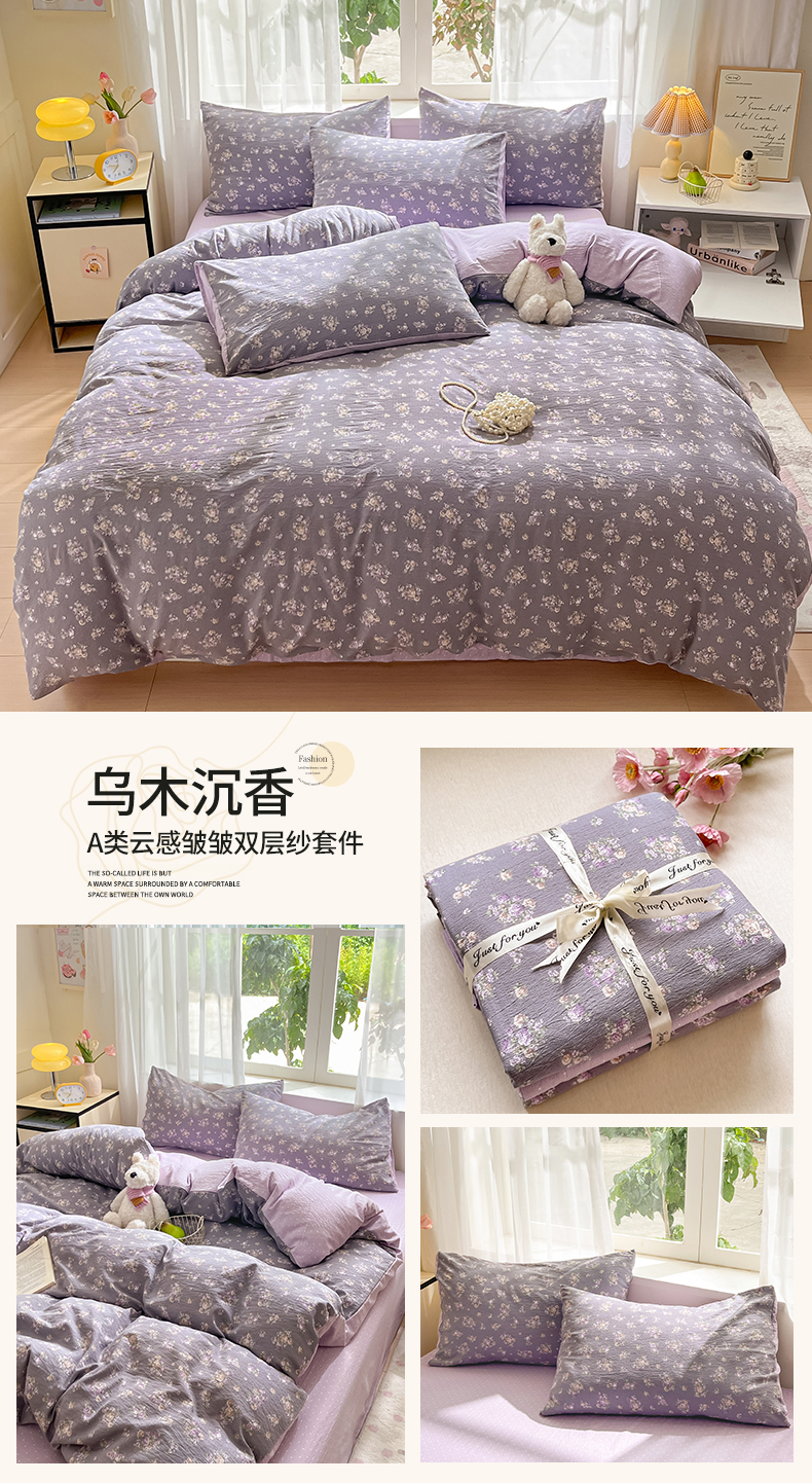 当前位置: 91家纺网 > 商品网购 > 床品套件 > 四件套 > 双层纱四件套 > 格真 2025秋冬新款110克高克重提花加厚皱皱纱双层纱四件套双面印花 草木集黄