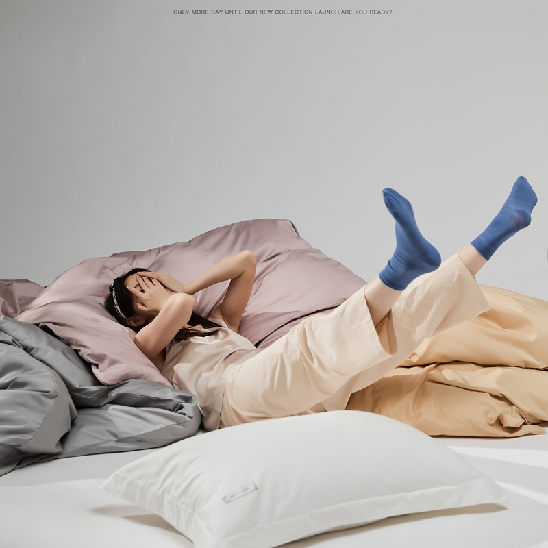 (总)红淳家纺 2025新款50支长绒棉贡缎磨毛单枕套系列,茜茜粉,高贵白,南非蓝,雅灰,柚子金,云青,竹青,紫罗兰