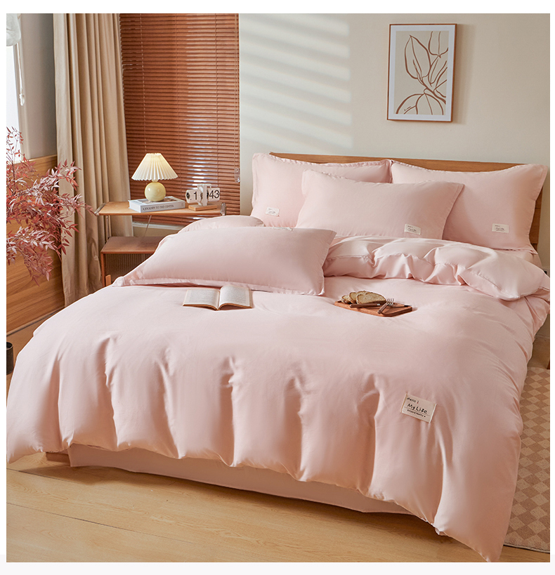 商品名称:红淳家纺 2025新款13366亲肤全棉纯色单被套-简单生活 烟紫粉+米白