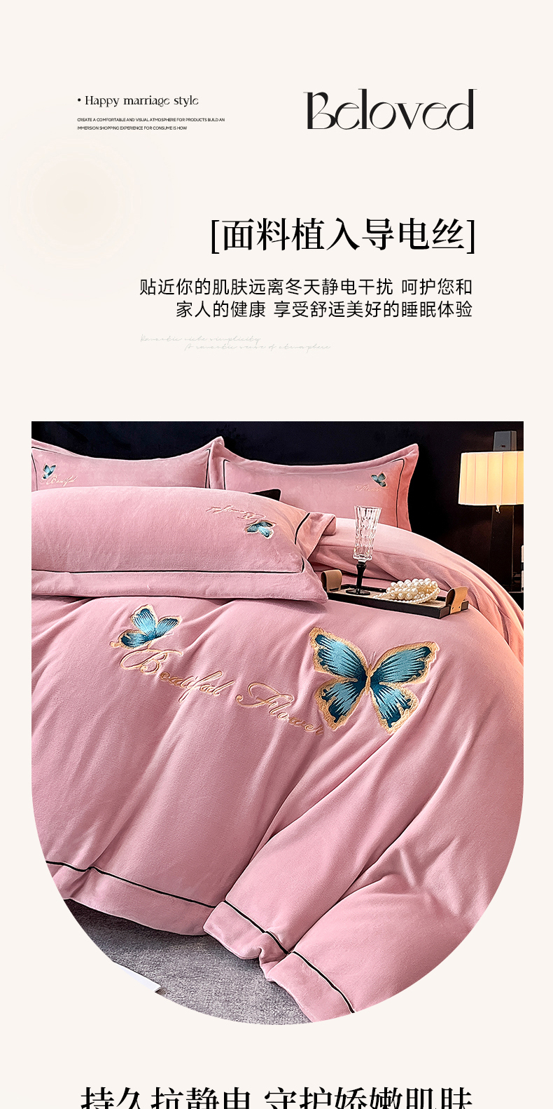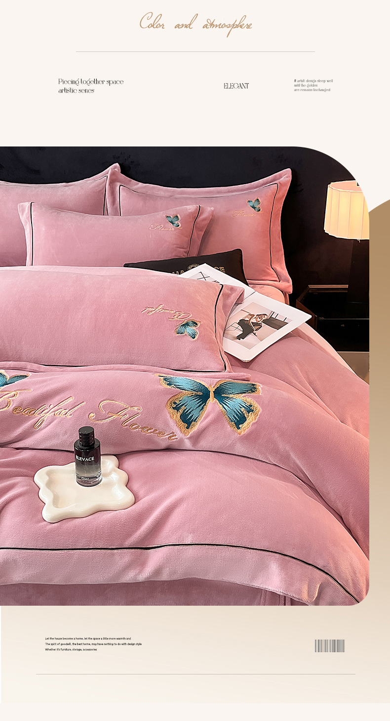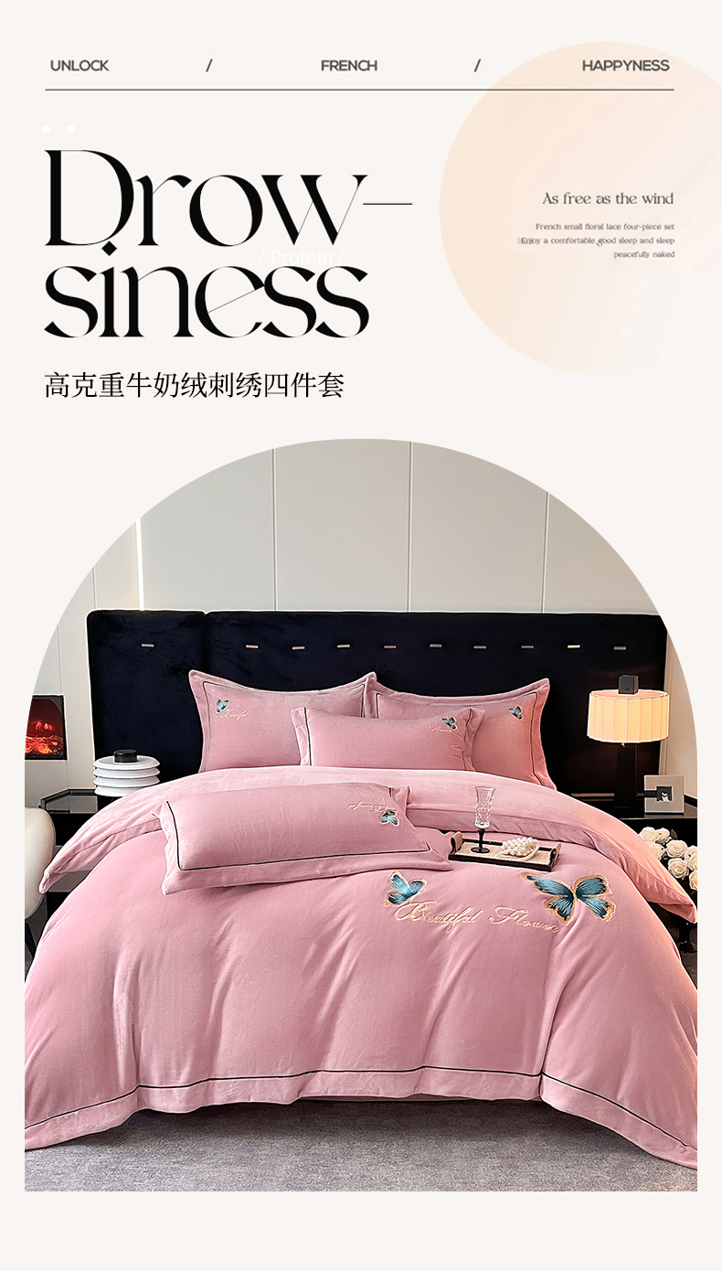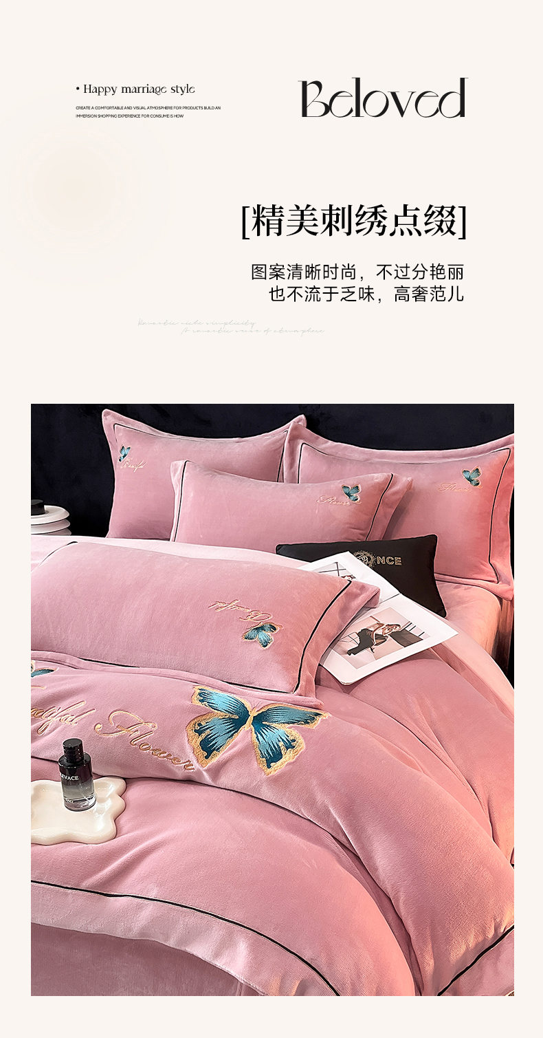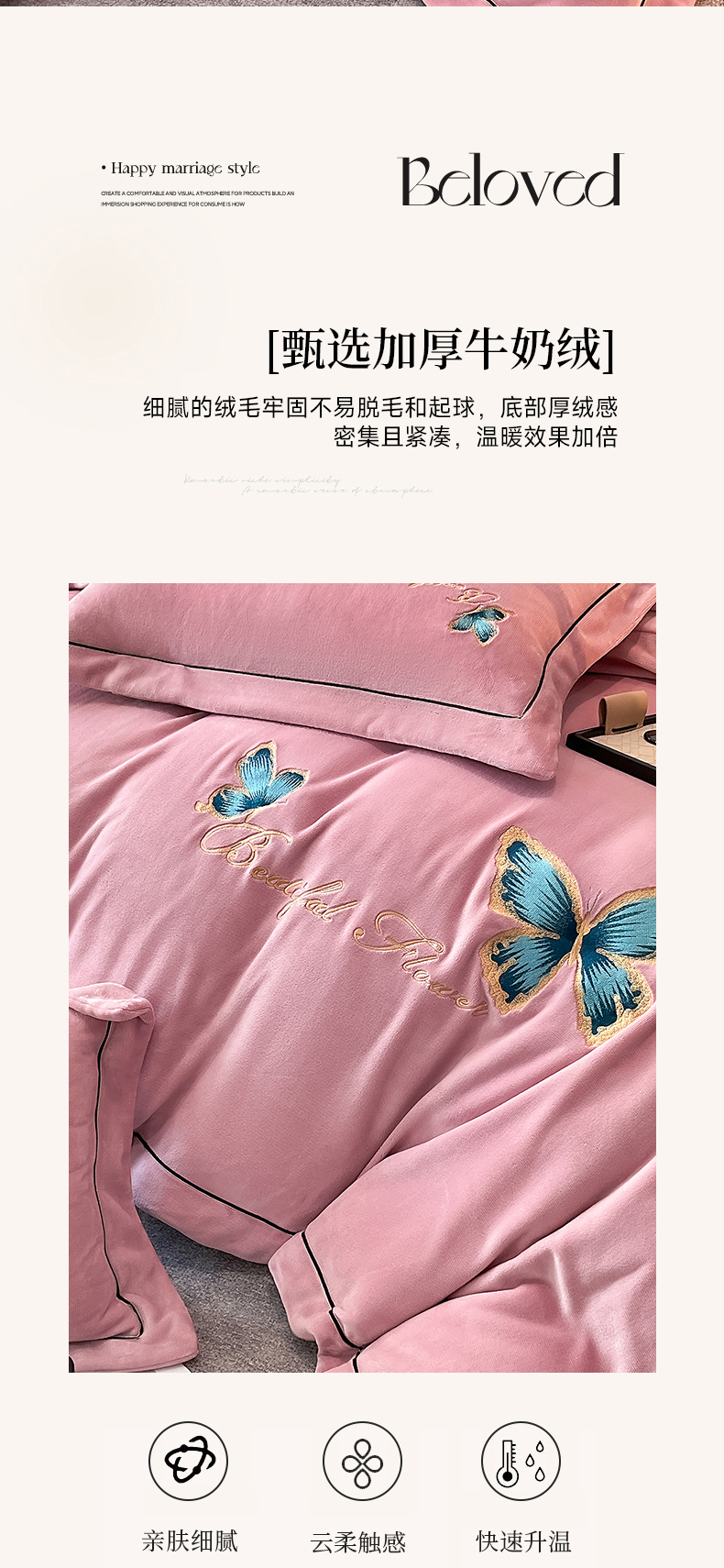 妮恒美家纺 2025新款牛奶绒刺绣四件套唯美蝴蝶结系列 唯美-豆沙