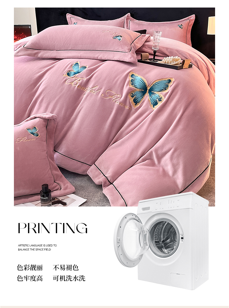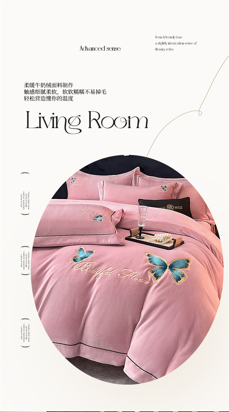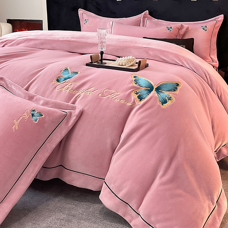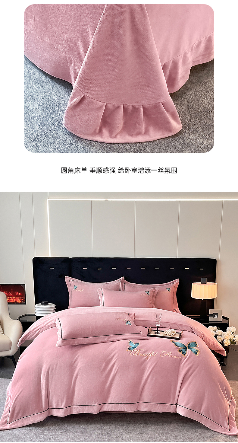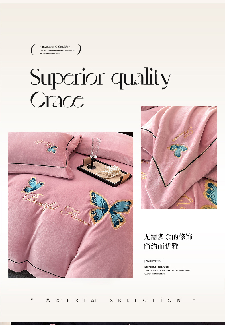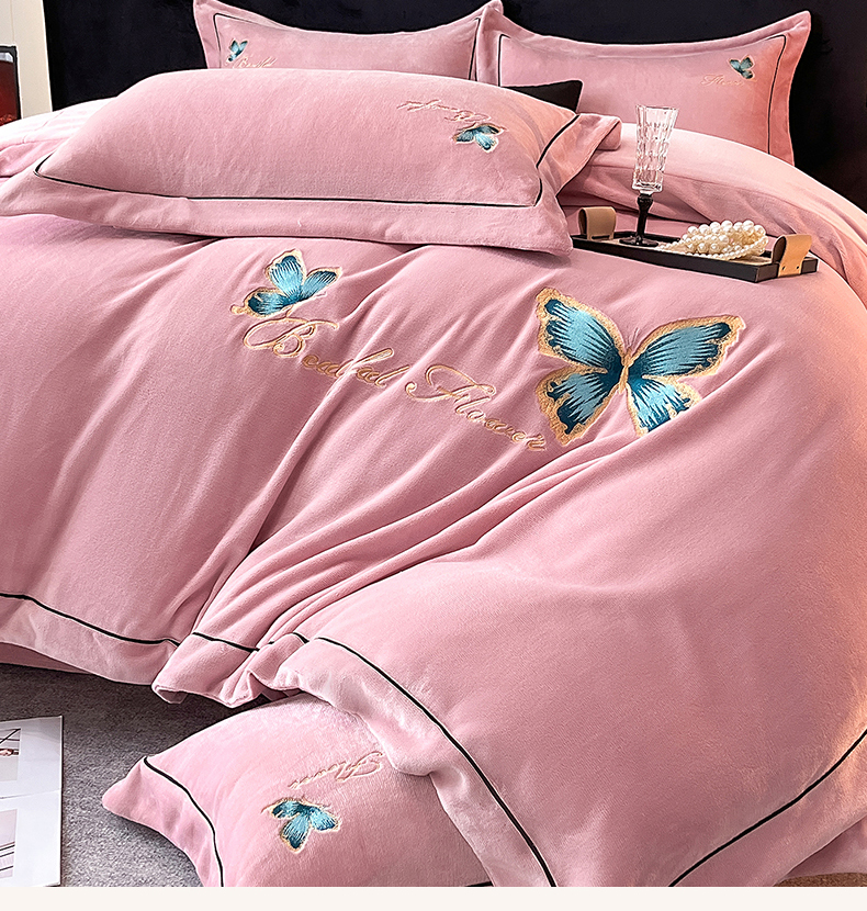 妮恒美家纺 2025新款牛奶绒刺绣四件套唯美蝴蝶结系列 唯美-豆沙