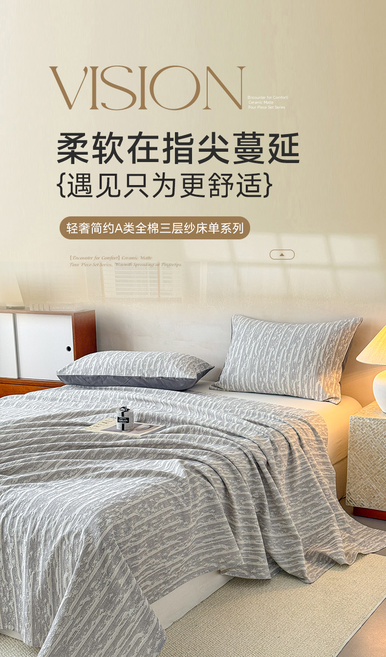 • 91家纺网 家纺一手货源 找家纺 眠博士 2025新款全棉纯棉三层纱单床单 床单单件 三层纱床单-流光灰 91家纺网 家纺一手货源 找家纺 眠博士 2025新款全棉纯棉三层纱单床单 床单单件 三层纱床单-流光灰