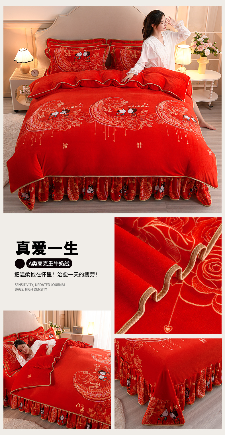 商品名称:羽梦2025新款8.5斤牛奶法莱绒金貂法兰绒四件套直播爆款真爱一生