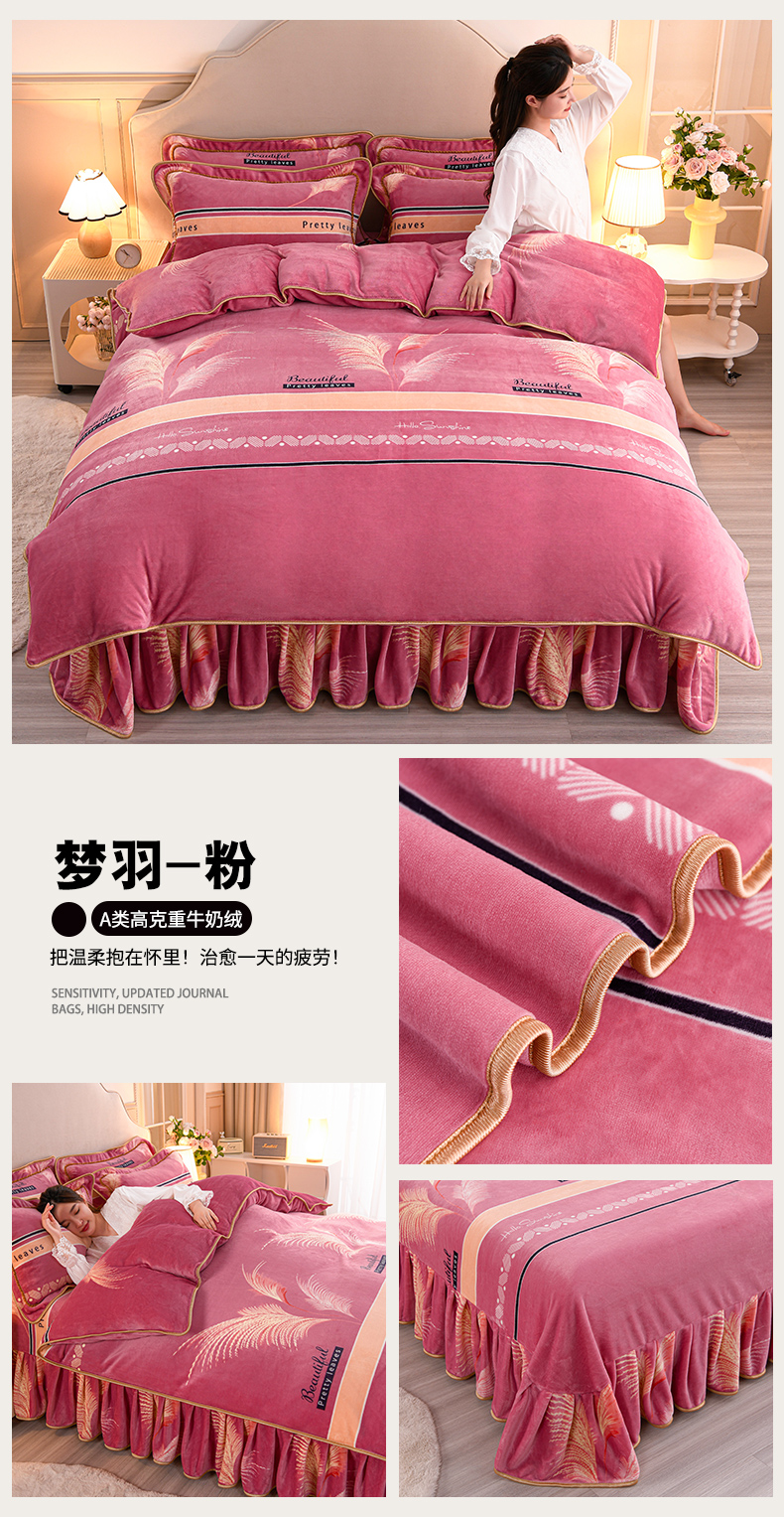 羽梦2025新款8.5斤牛奶法莱绒金貂法兰绒四件套直播爆款梦羽-粉