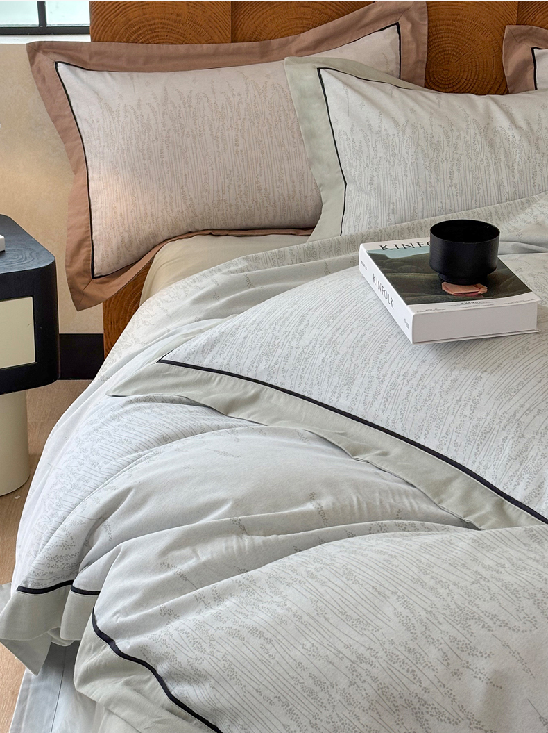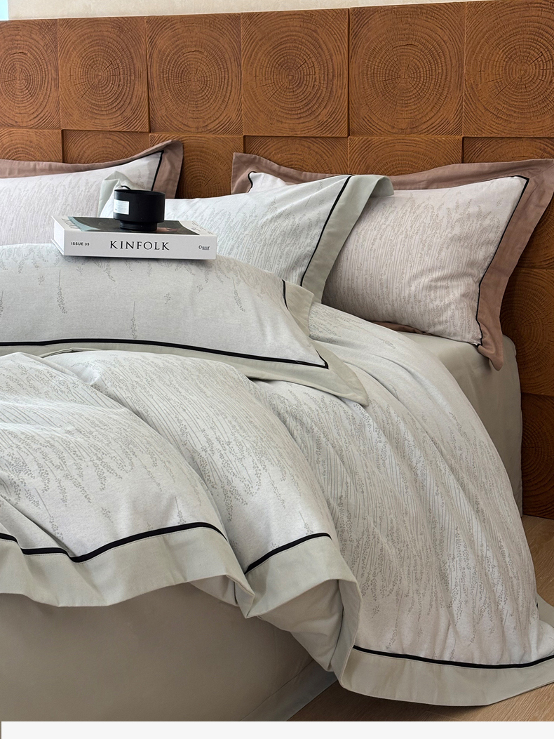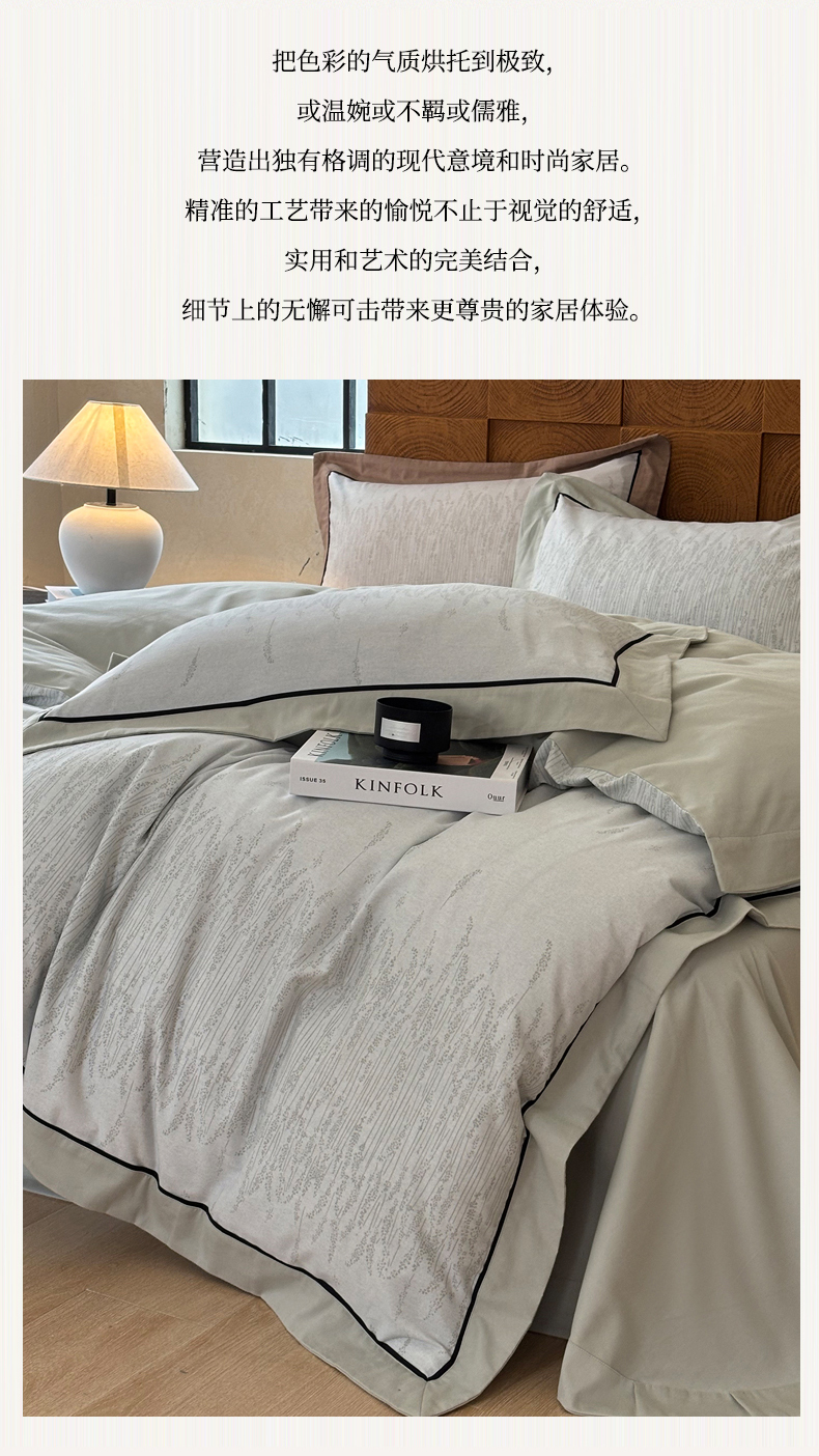 (总)嘉汀兰2025新款全棉臻品磨毛轻奢时尚秋冬加厚四件套-拼角款,浮生若梦,雾林-浅灰,星辰,杏花微雨,长相依-草绿