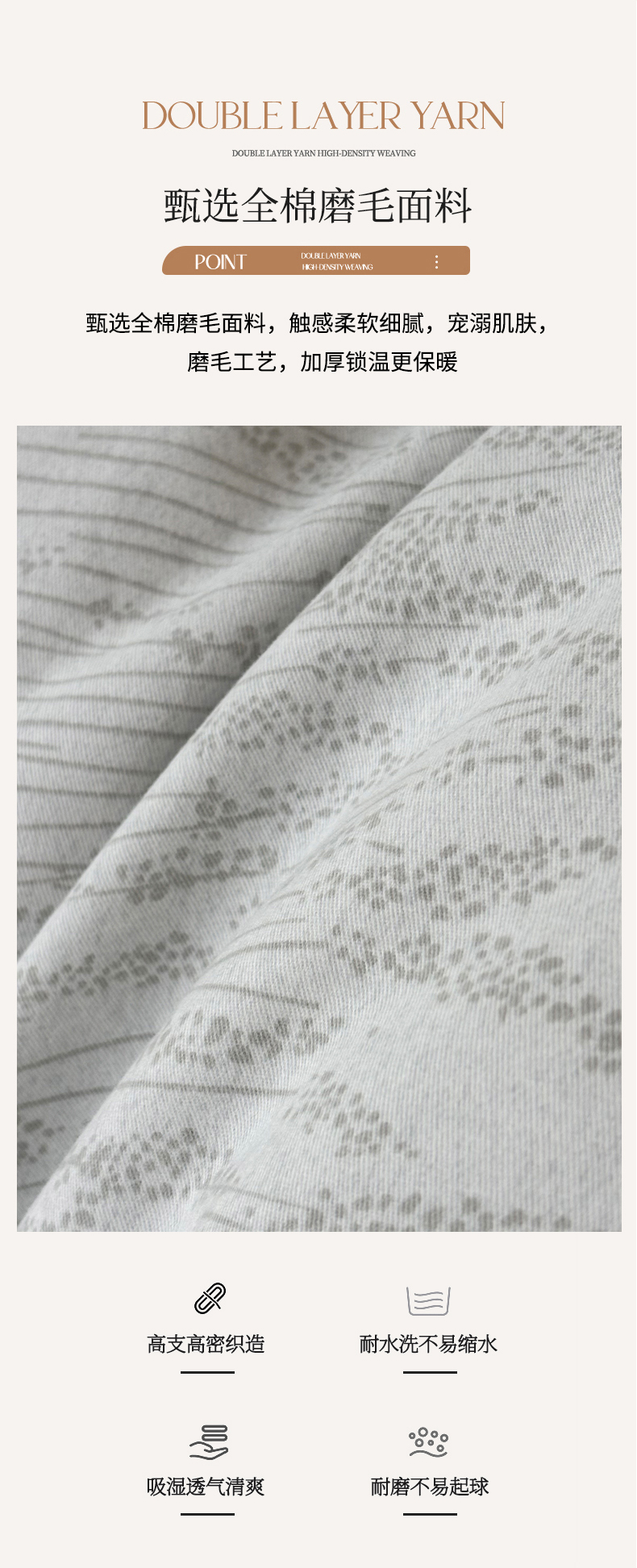 (总)嘉汀兰家居 2025新款长绒棉磨毛四件套—蔓莎,豆沙,灰色,桔色,绿色,香槟,紫色