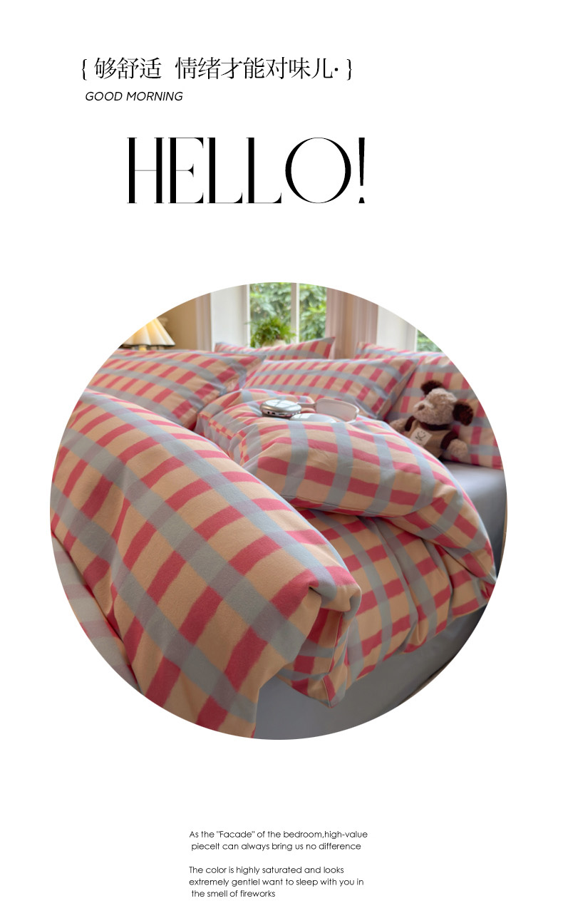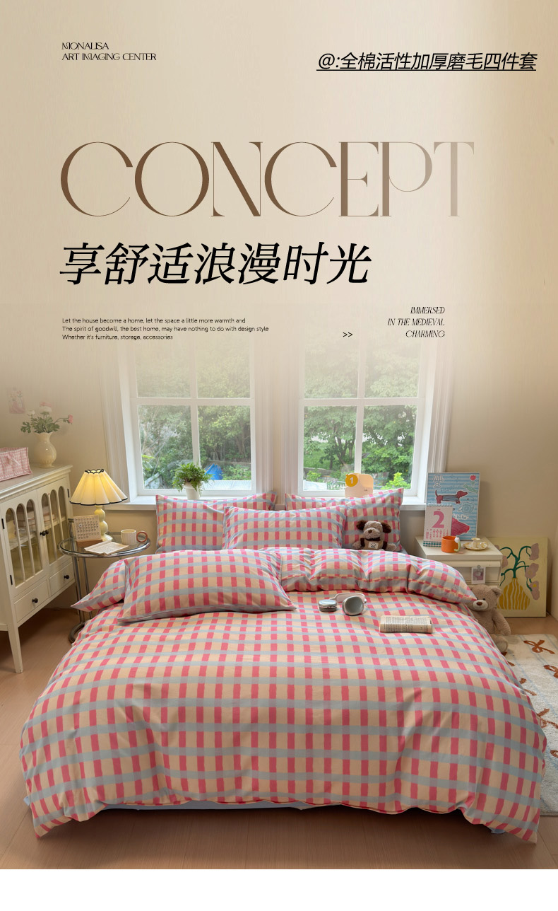 当前位置: 91家纺网 > 商品网购 > 床品套件 > 四件套 > 普通磨毛四件套 > 如意朵 2025新款全棉纯棉磨毛四件套 艾格-粉