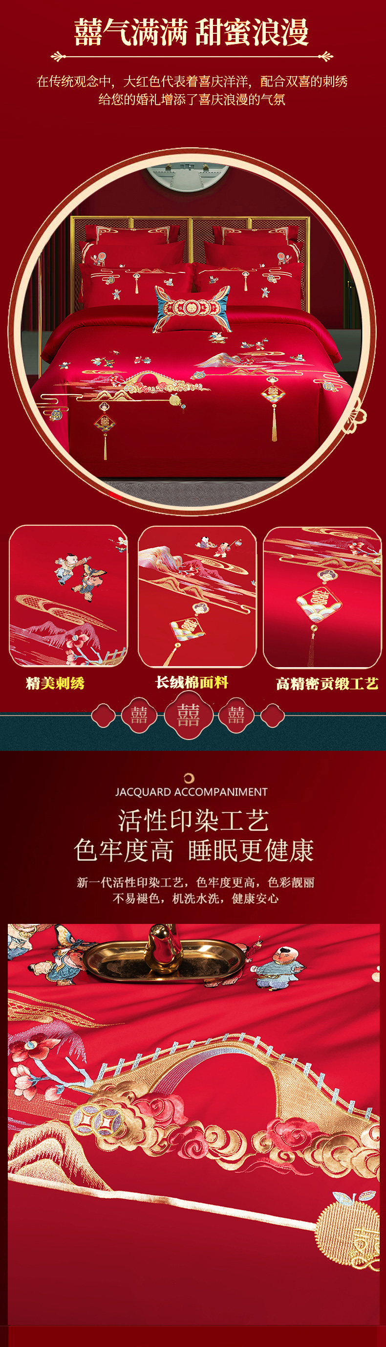 (总)2024新款100S长绒棉提花婚庆轻奢简约四件套多件套,龙凤祥和,幸福花语,幸福约定,幸福约定红