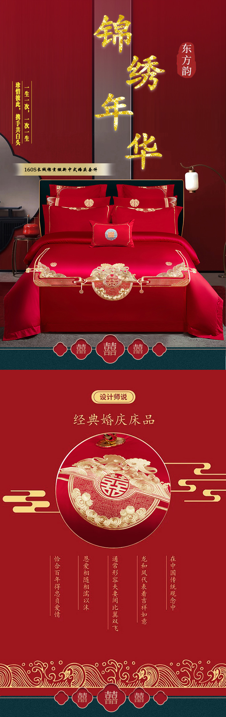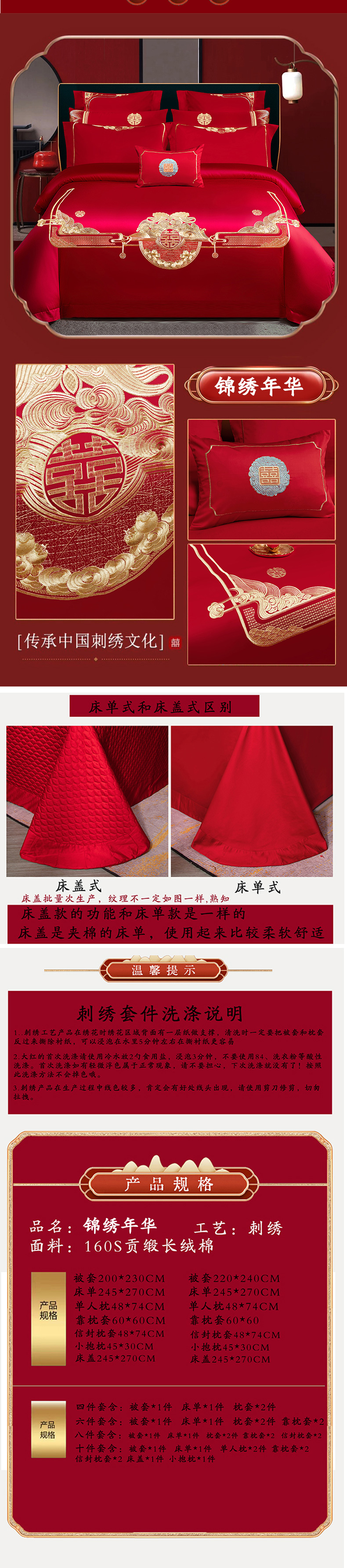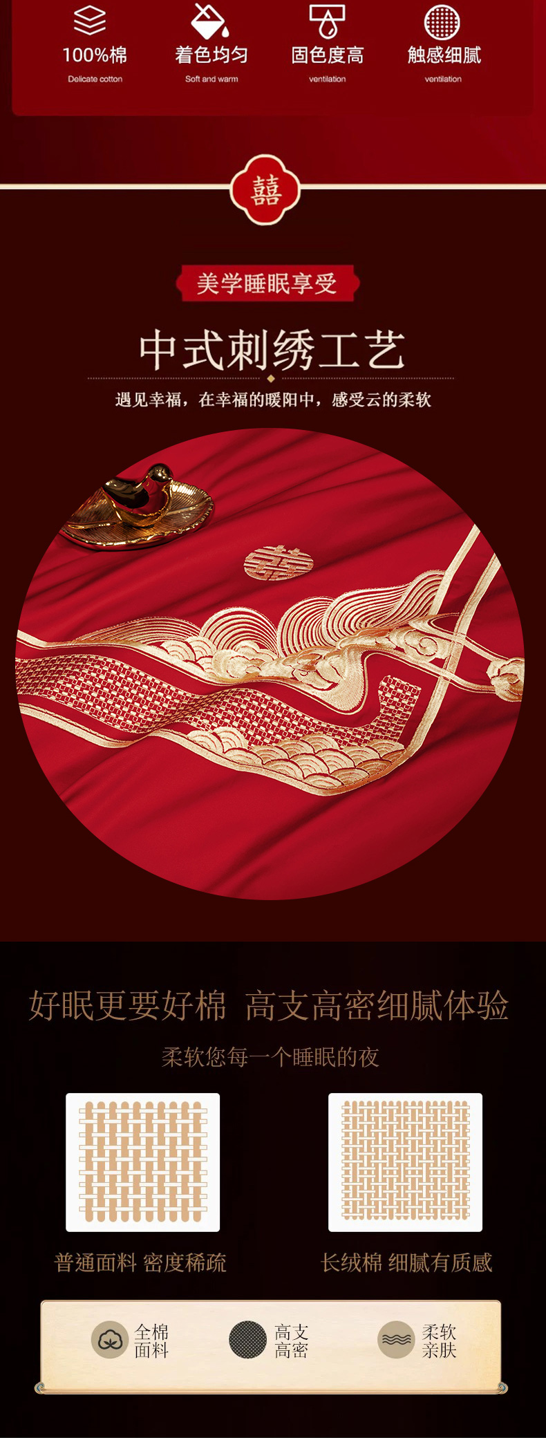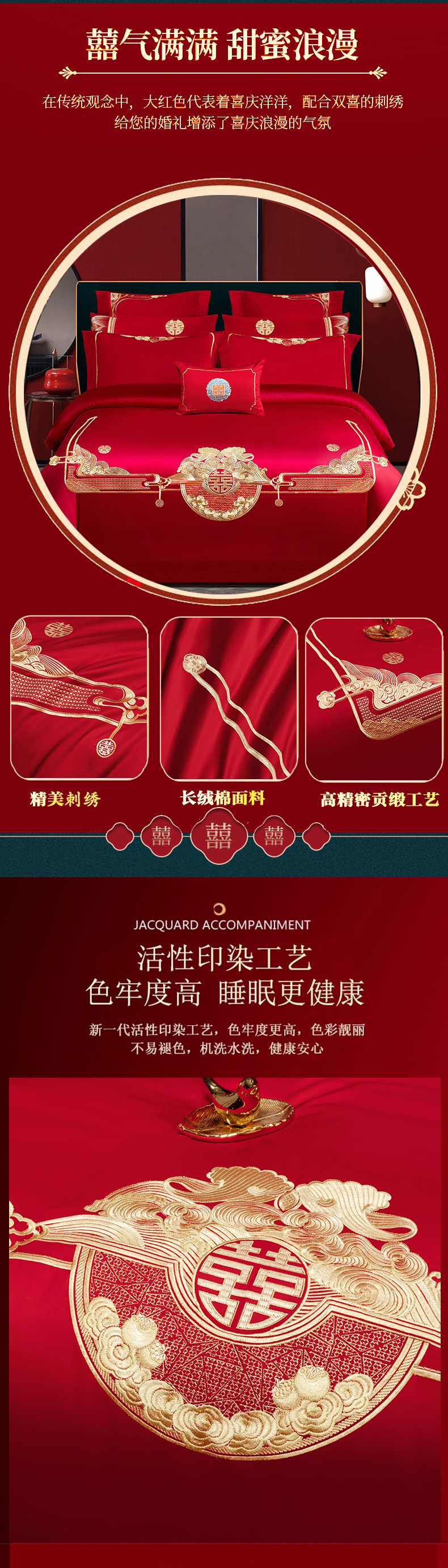 当前位置: 91家纺网 > 商品网购 > 床品套件 > 四件套 > 长绒棉四件套 > 柏拉图 2025新款100s长绒棉纯棉贡缎提花婚庆系列四件套多件套3 锦绣年华