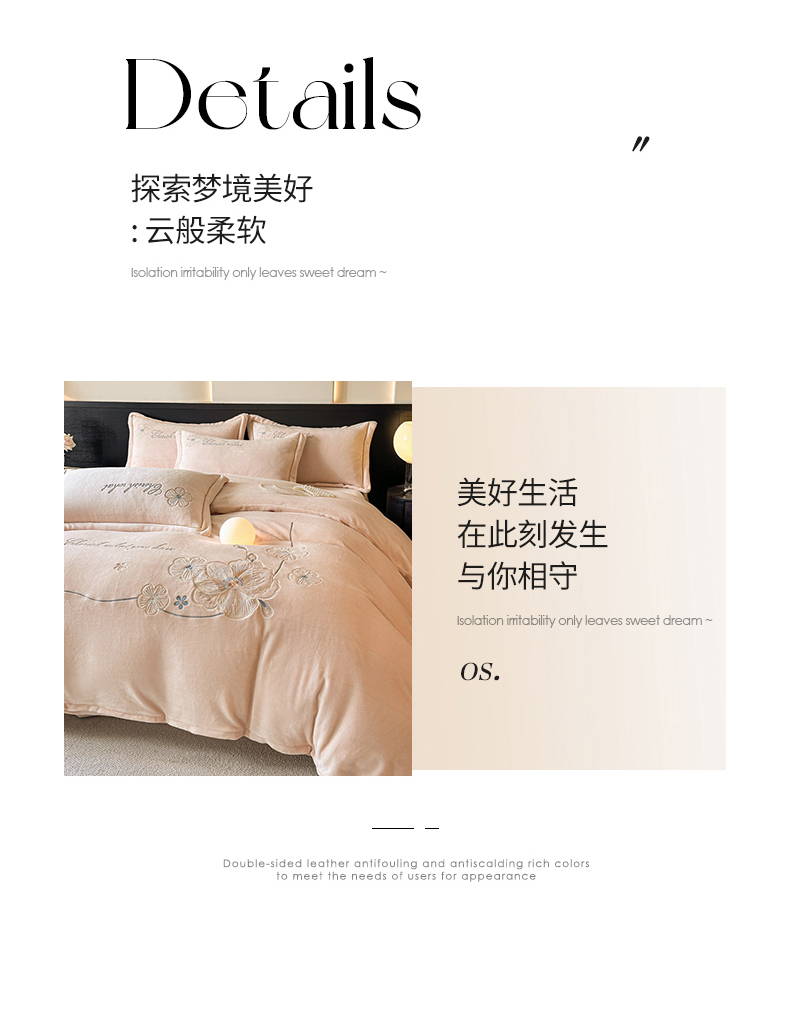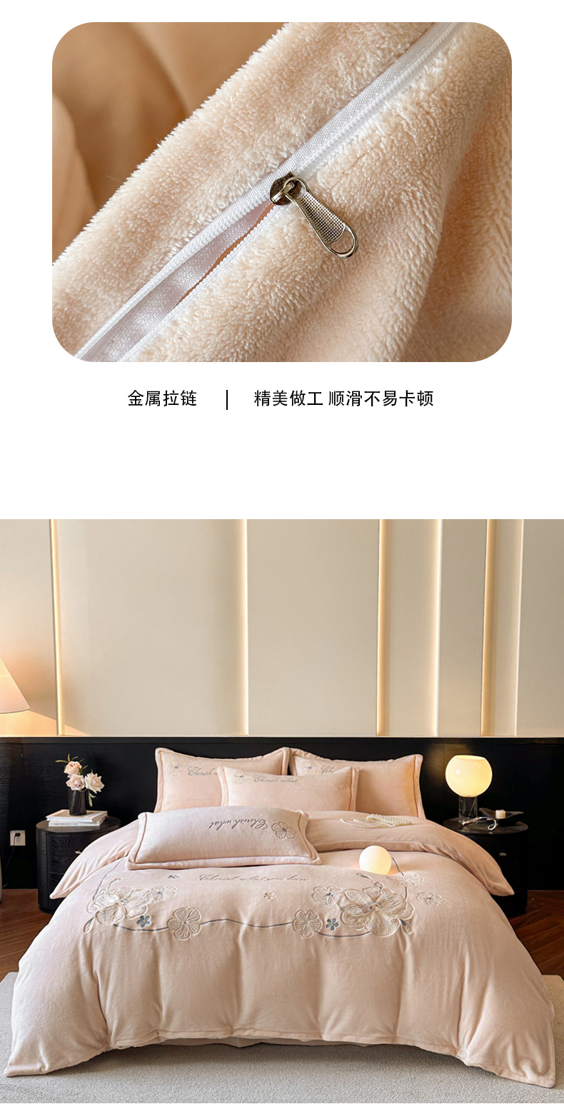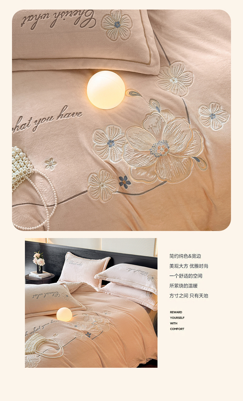 诺梵家纺 2025新款8斤牛奶绒刺绣绣花四件套 绮梦-肉粉