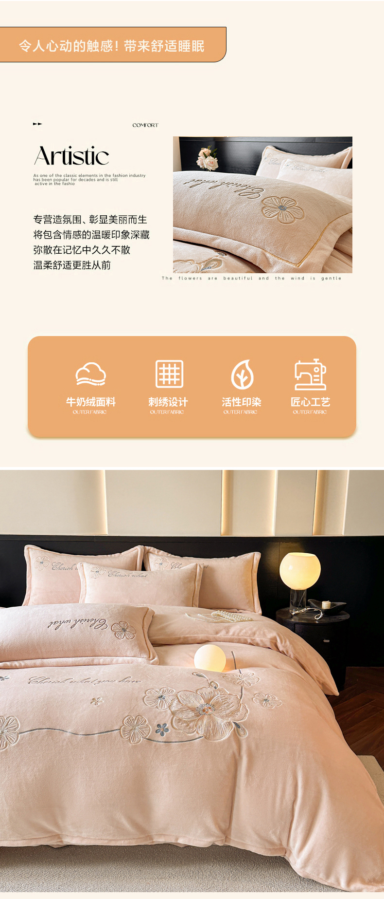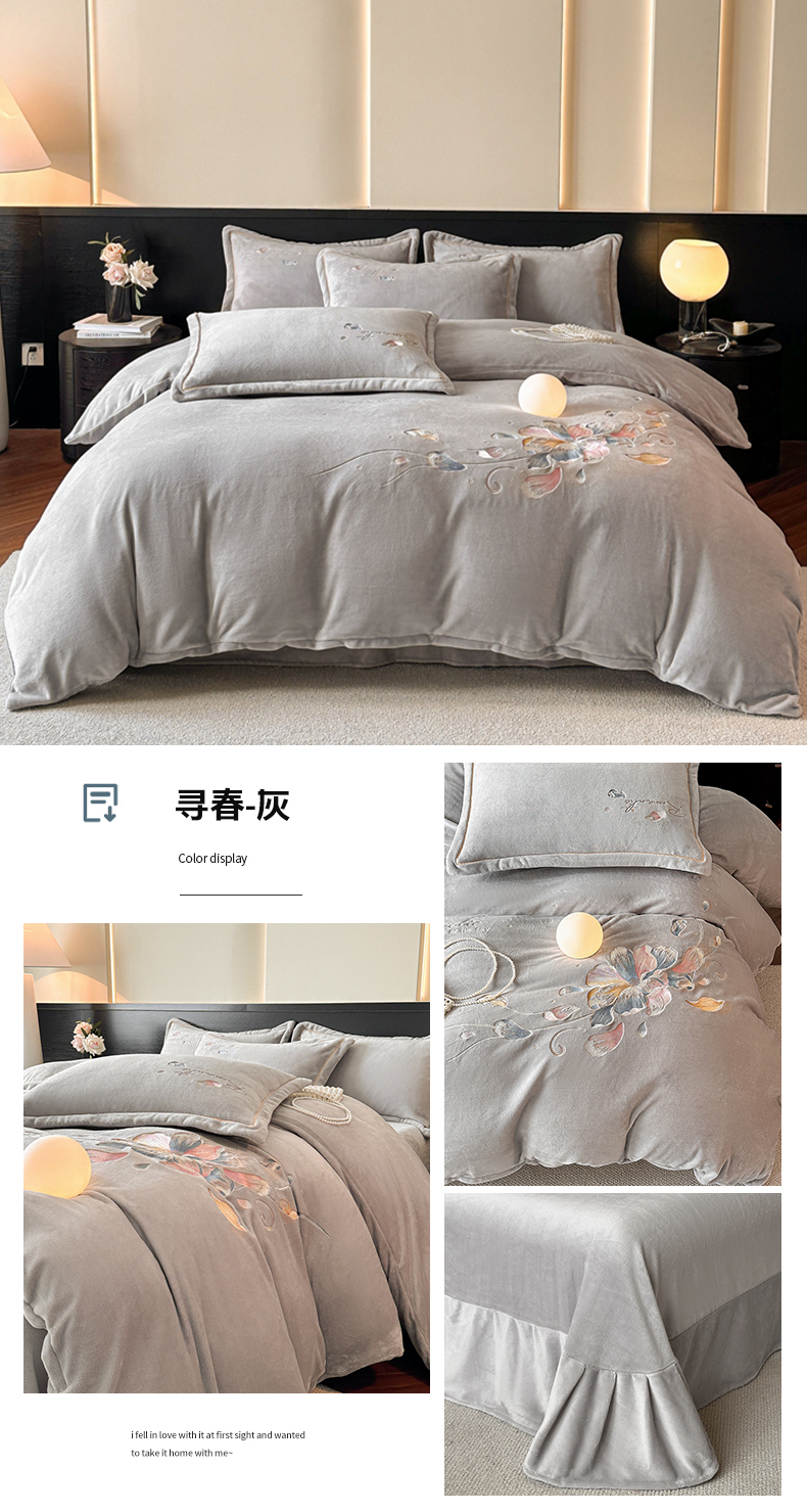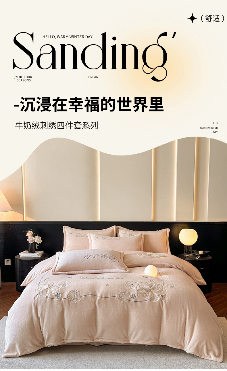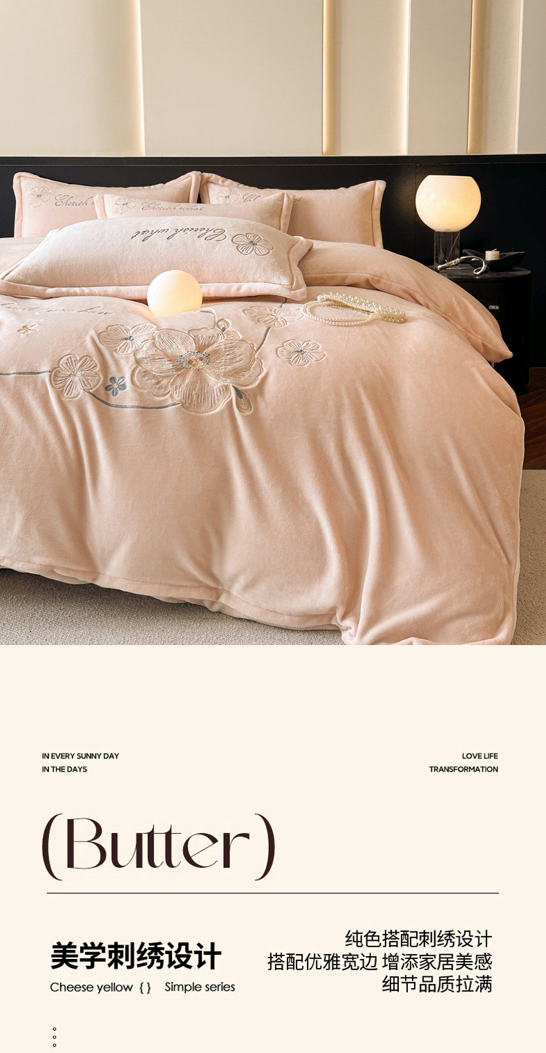 (总)诺梵家纺 2025新款牛奶绒绣花绒四件套,芳华-宝蓝,芳华-豆沙,芳华-湖兰,芳华-米白,芳华-抹茶绿,伊莉莎-米白,伊莉莎-抹茶绿