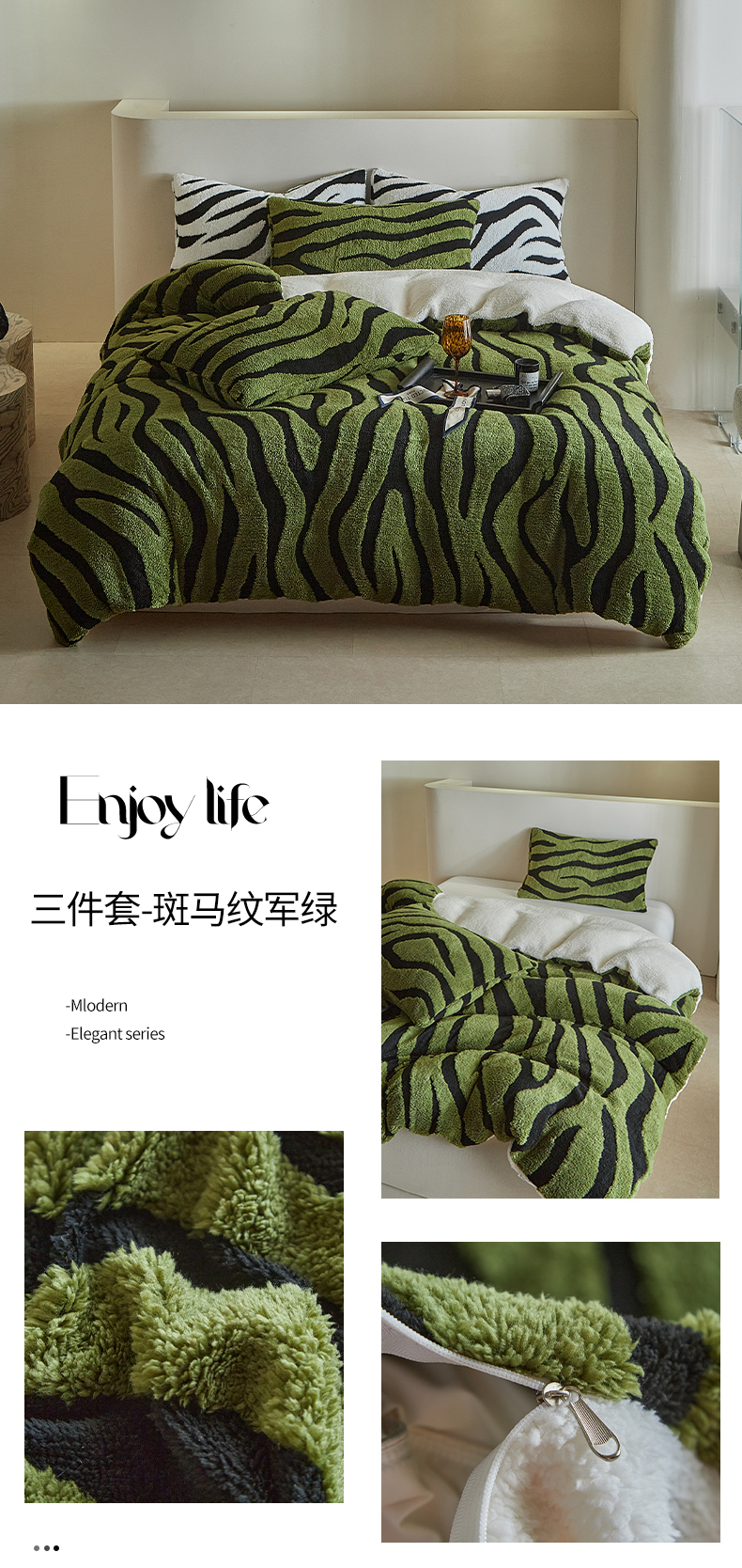 商品名称:温宁家纺 2025新款斑马被套毯毛毯盖毯 三件套-斑马纹军绿