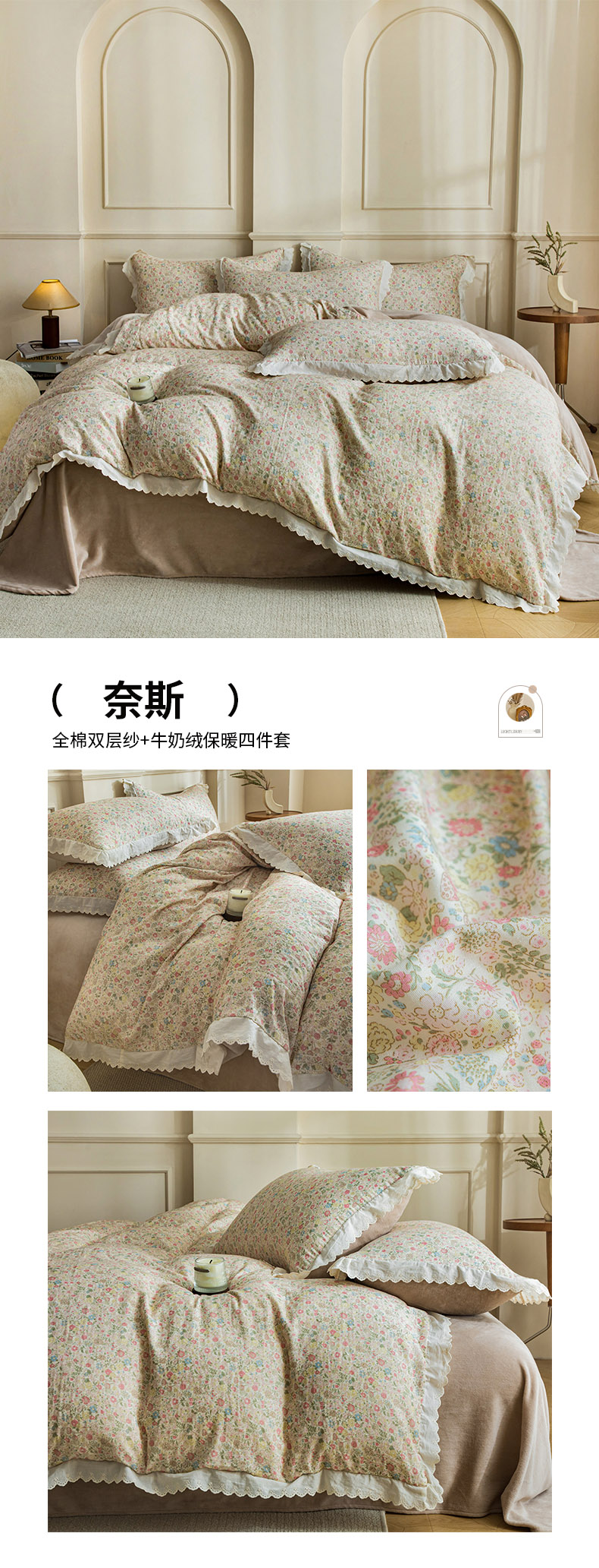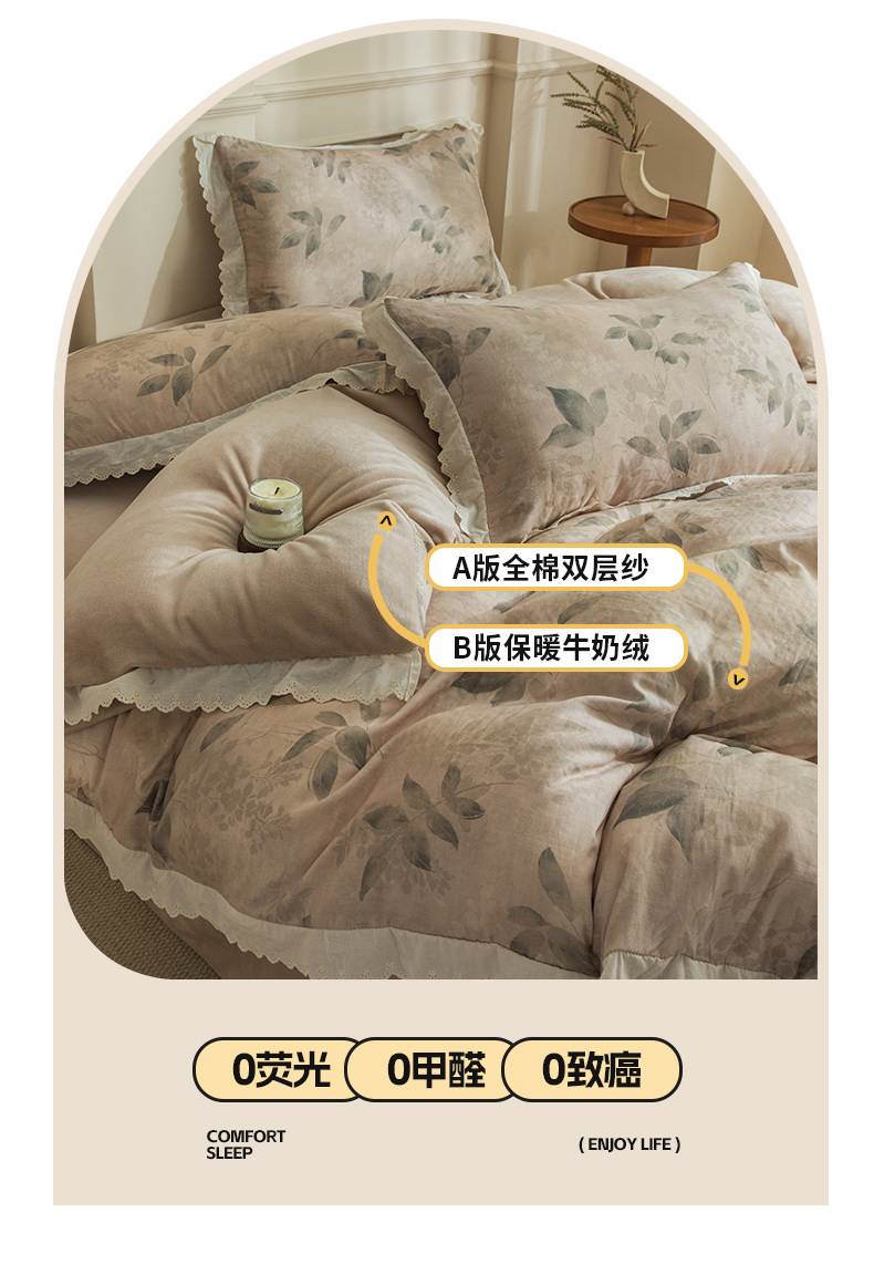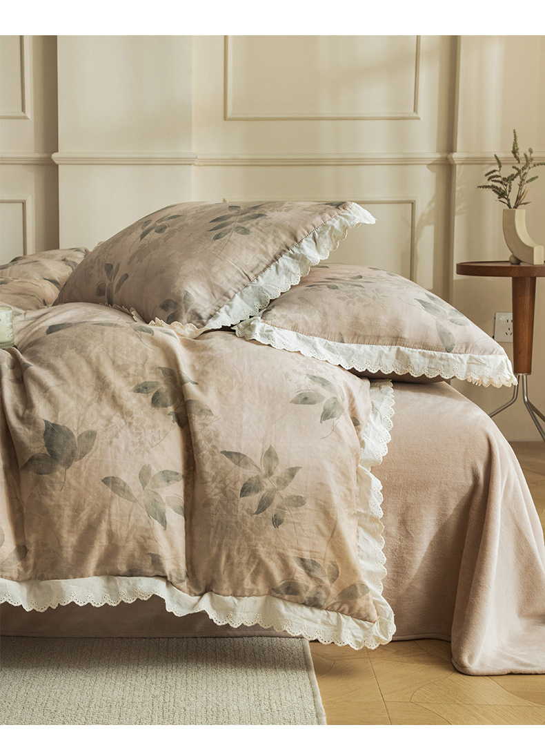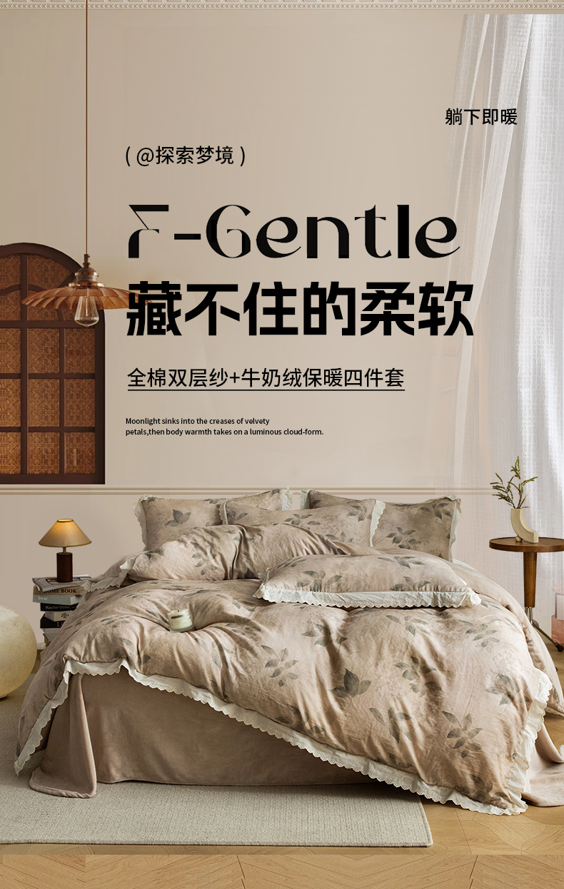 (总)大境 2025秋冬新款A类全棉双层纱棉加牛奶绒四件套韩版公主风,春野,可颂,奈斯,秋屿,瑞芙丽,映秋