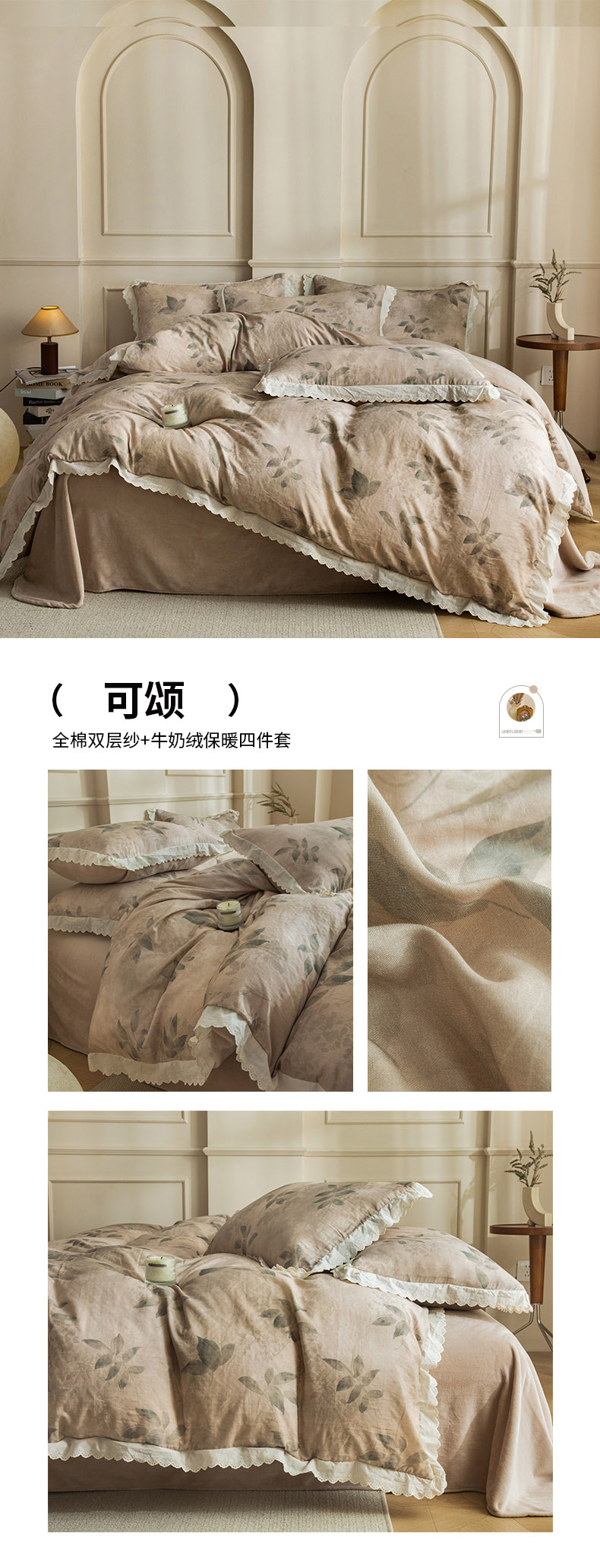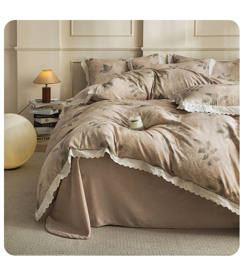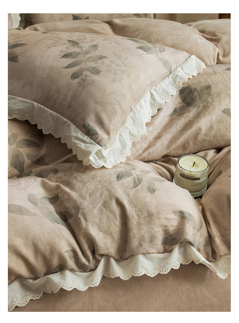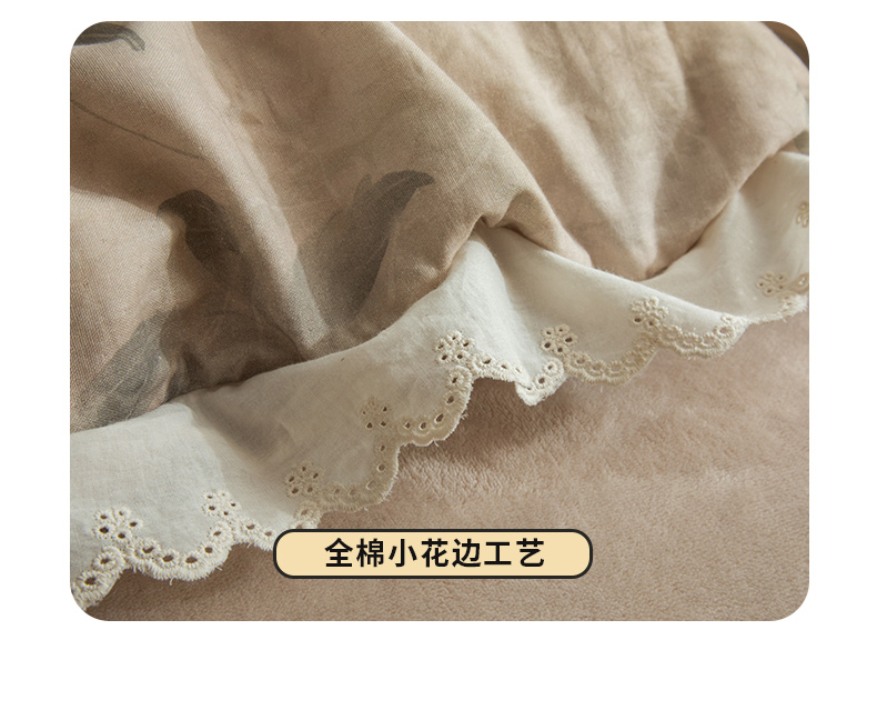 商品名称:大境 2025秋冬新款A类全棉双层纱棉加牛奶绒四件套韩版公主风 可颂