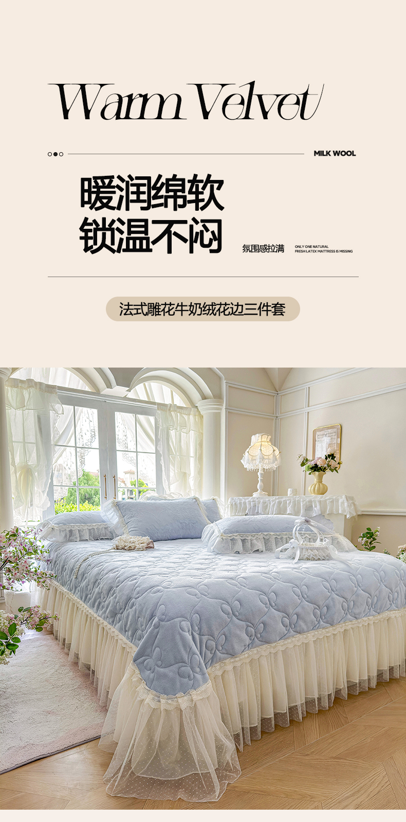 (总)虹星家纺 2025新款法式雕花牛奶绒花边床盖四件套-星光碟影,星光蝶影-海盐蓝,星光蝶影-丁香紫,星光蝶影-浅米白,星光蝶影-青石绿,星光蝶影-紫雾色,星光蝶影-樱花粉