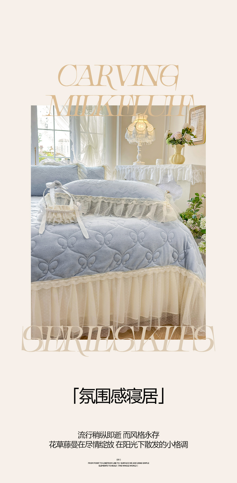 (总)虹星家纺 2025新款花边牛奶绒床裙四件套系列,蝶恋-粉玉,蝶恋-抹茶绿,蝶恋-奶茶色,蝶恋-葡萄紫,蝶恋-天空蓝