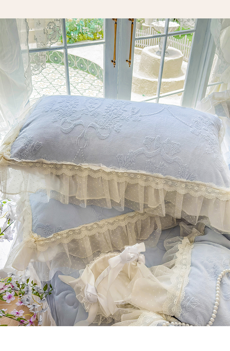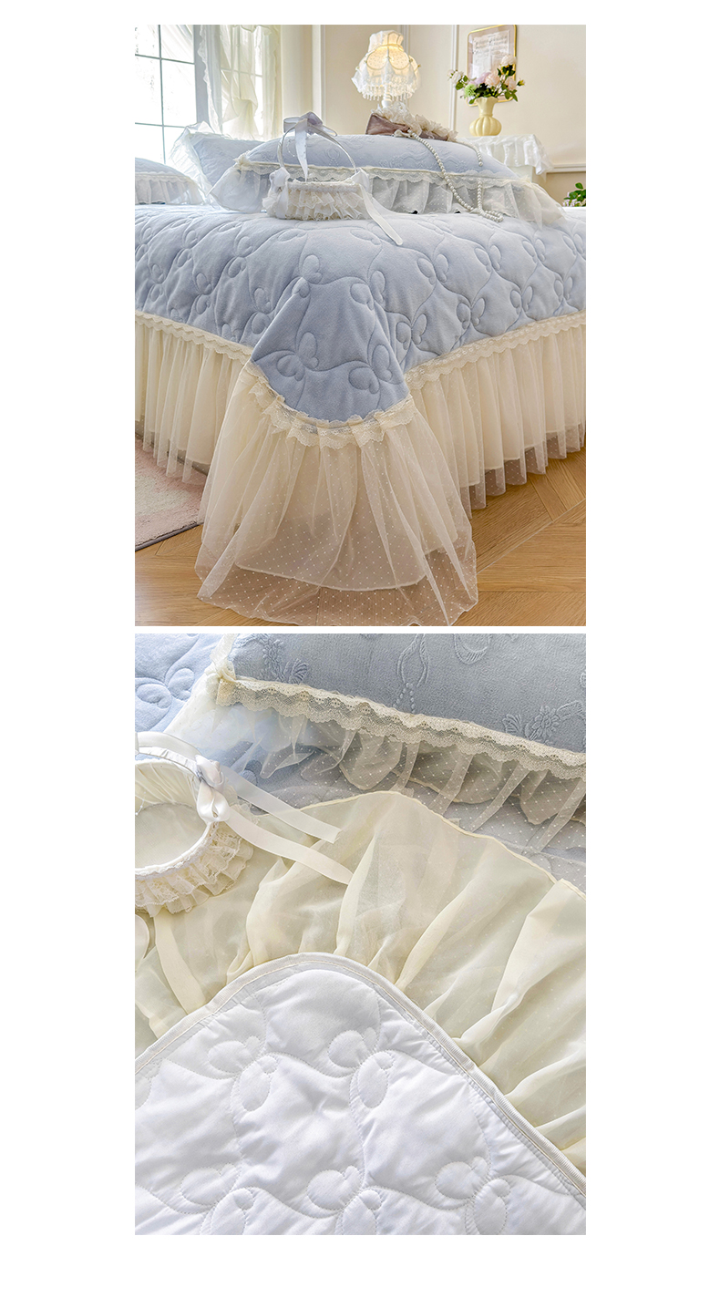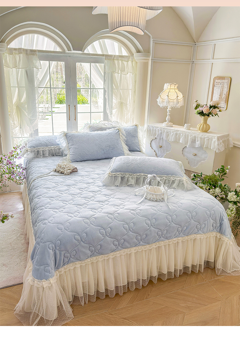 虹星家纺 2025新款法式雕花牛奶绒花边单床盖-星光碟影 星光蝶影-海盐蓝