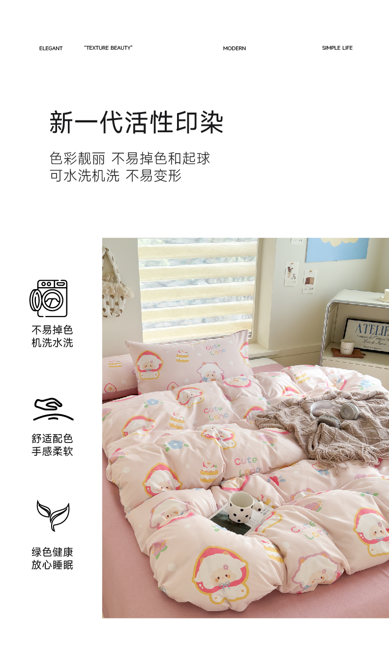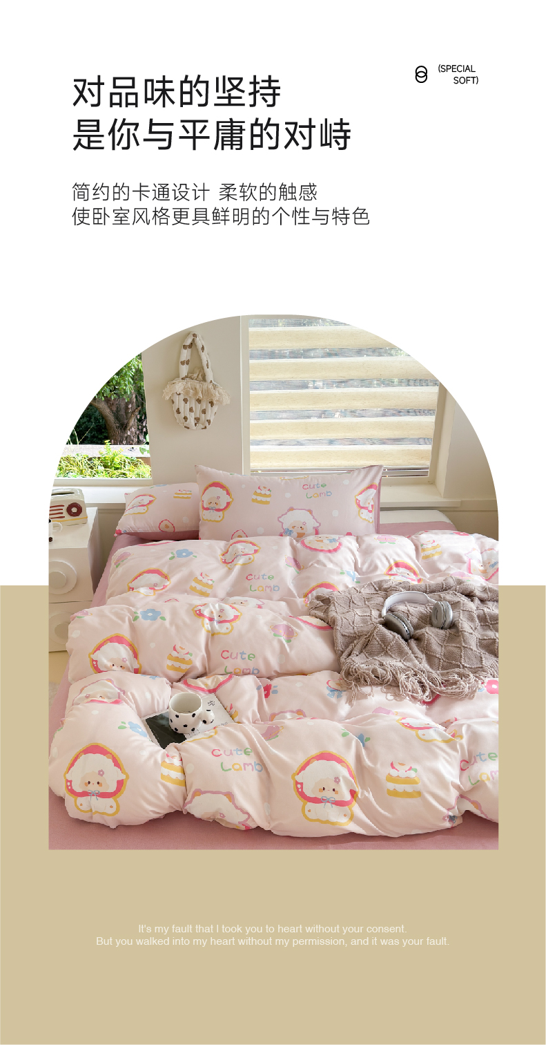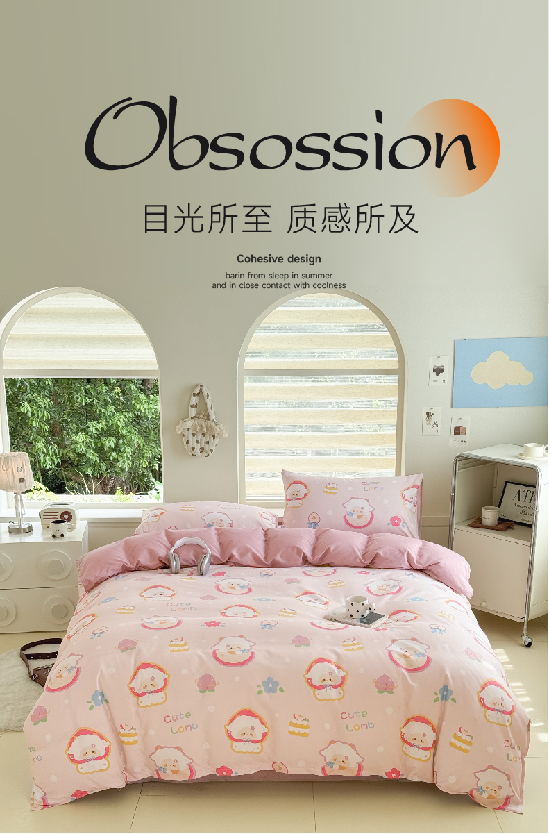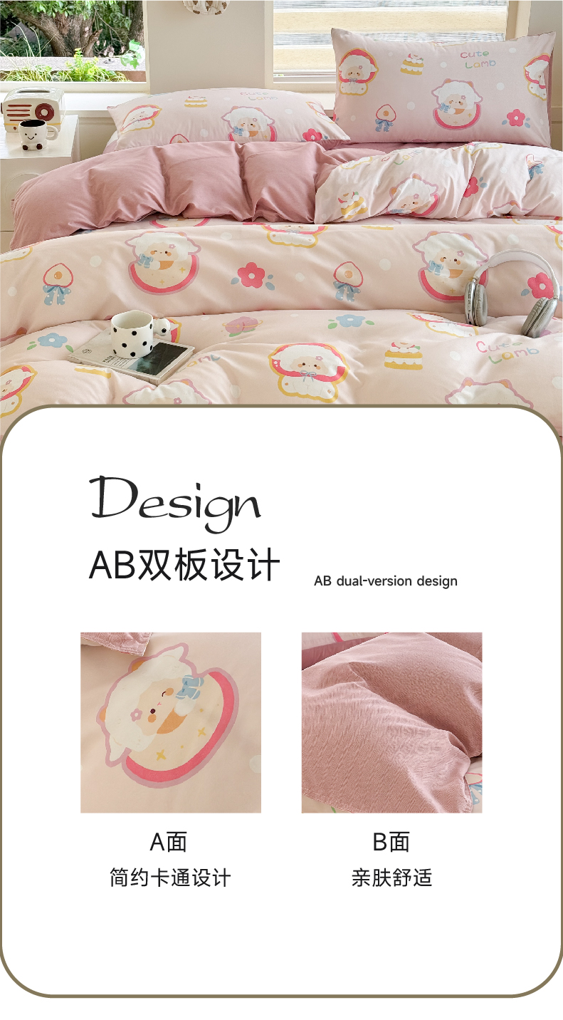 当前位置: 91家纺网 > 商品网购 > 床品套件 > 四件套 > 全棉普通四件套 > 可可家纺 2025新款印花卡通芦荟棉四件套亲肤床单被套三件套 蜜桃小羊