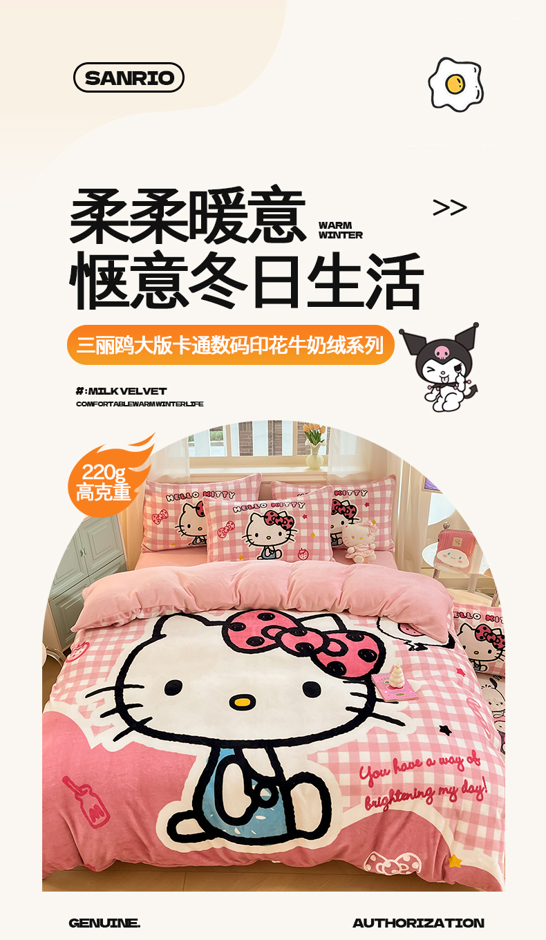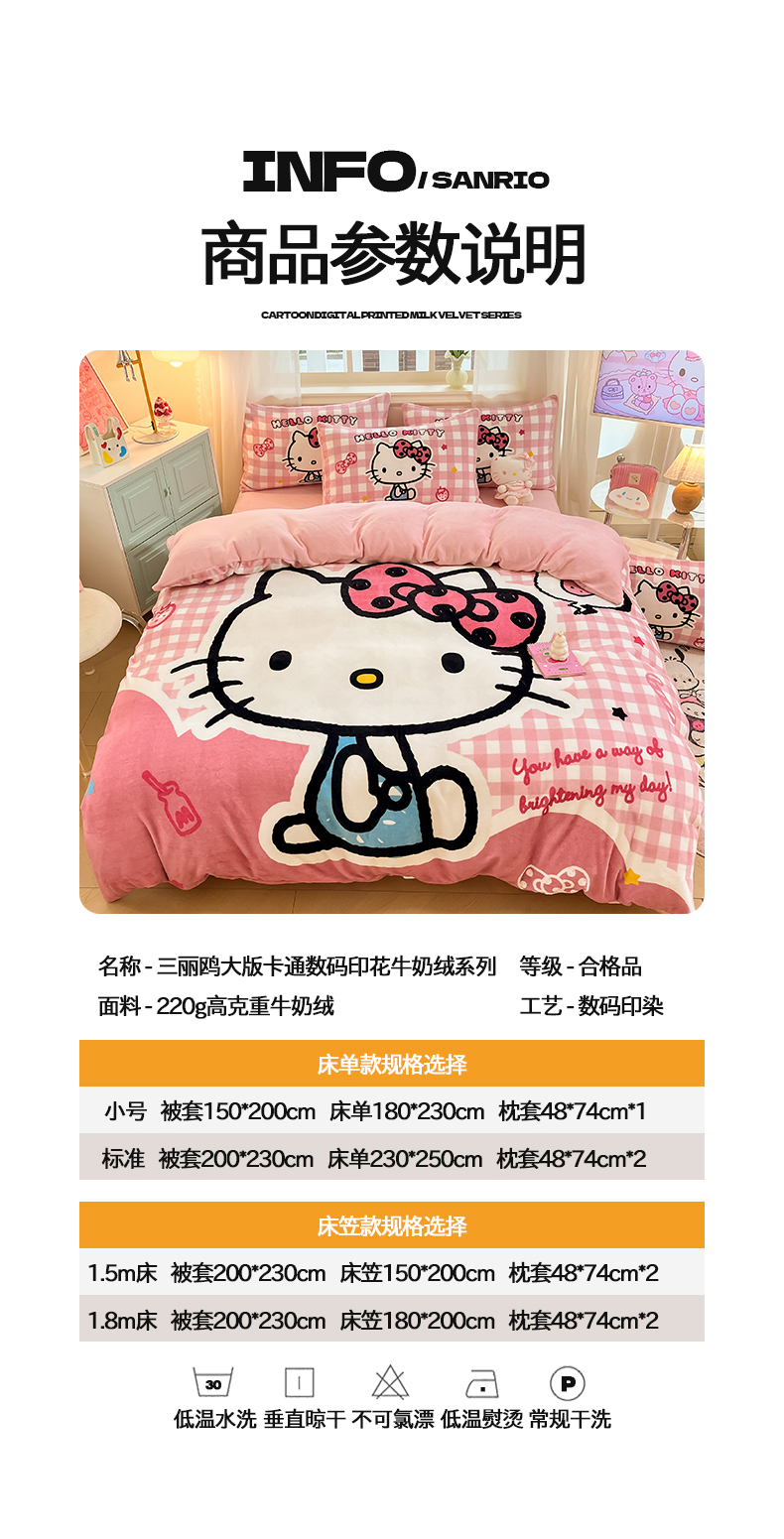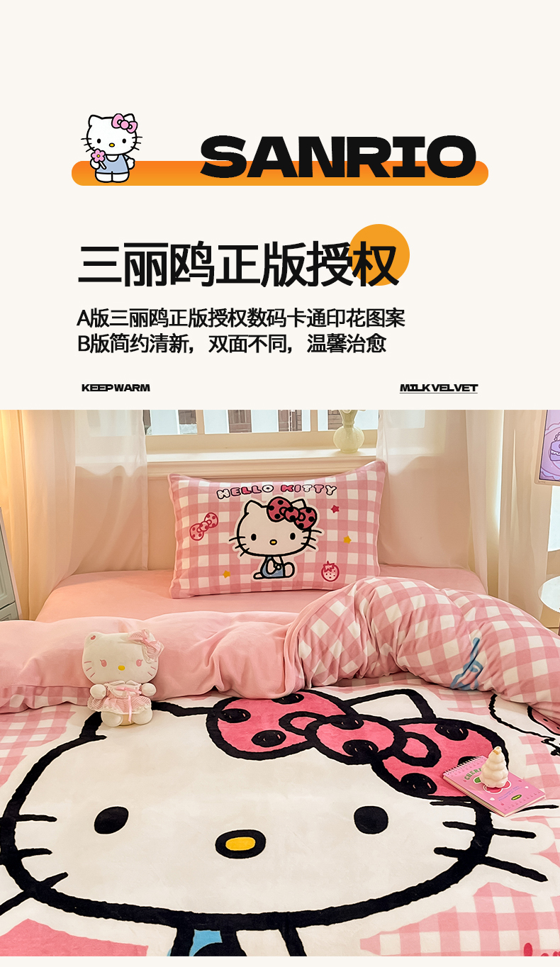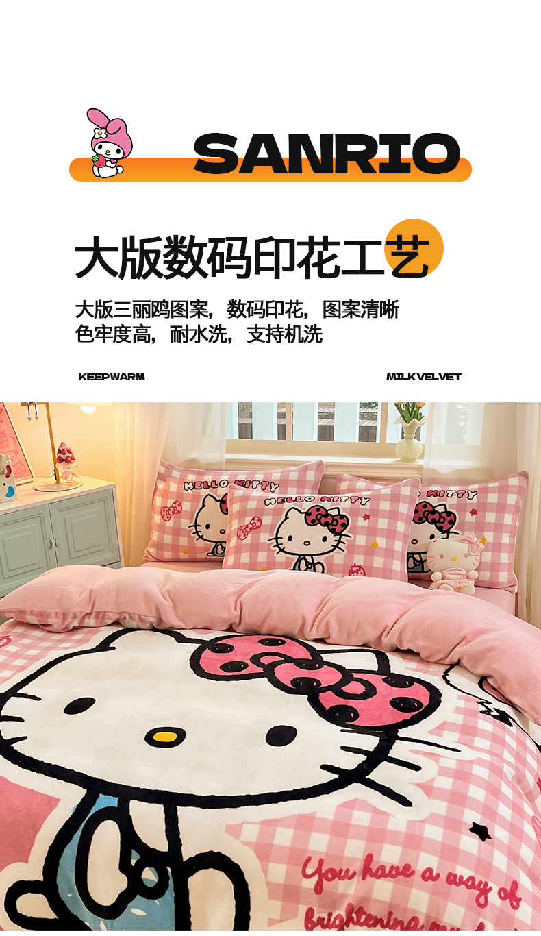 当前位置: 91家纺网 > 商品网购 > 床品套件 > 四件套 > 牛奶绒四件套 > 金爱家 2025新款正版三丽鸥授权大版卡通平网数码印花加厚高克重牛奶绒系列四件套-第一批 绒大版-R甜甜粉格kitty