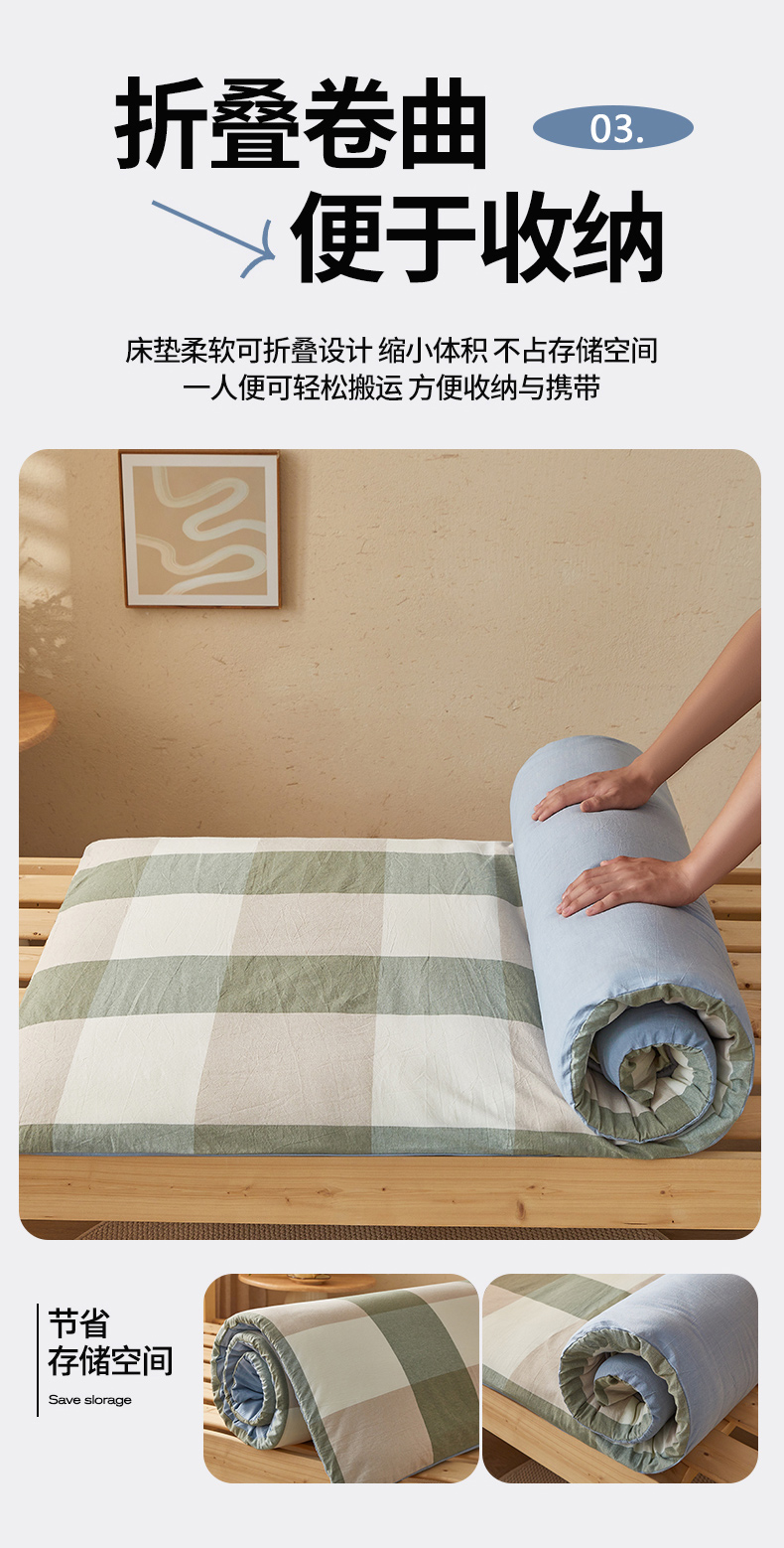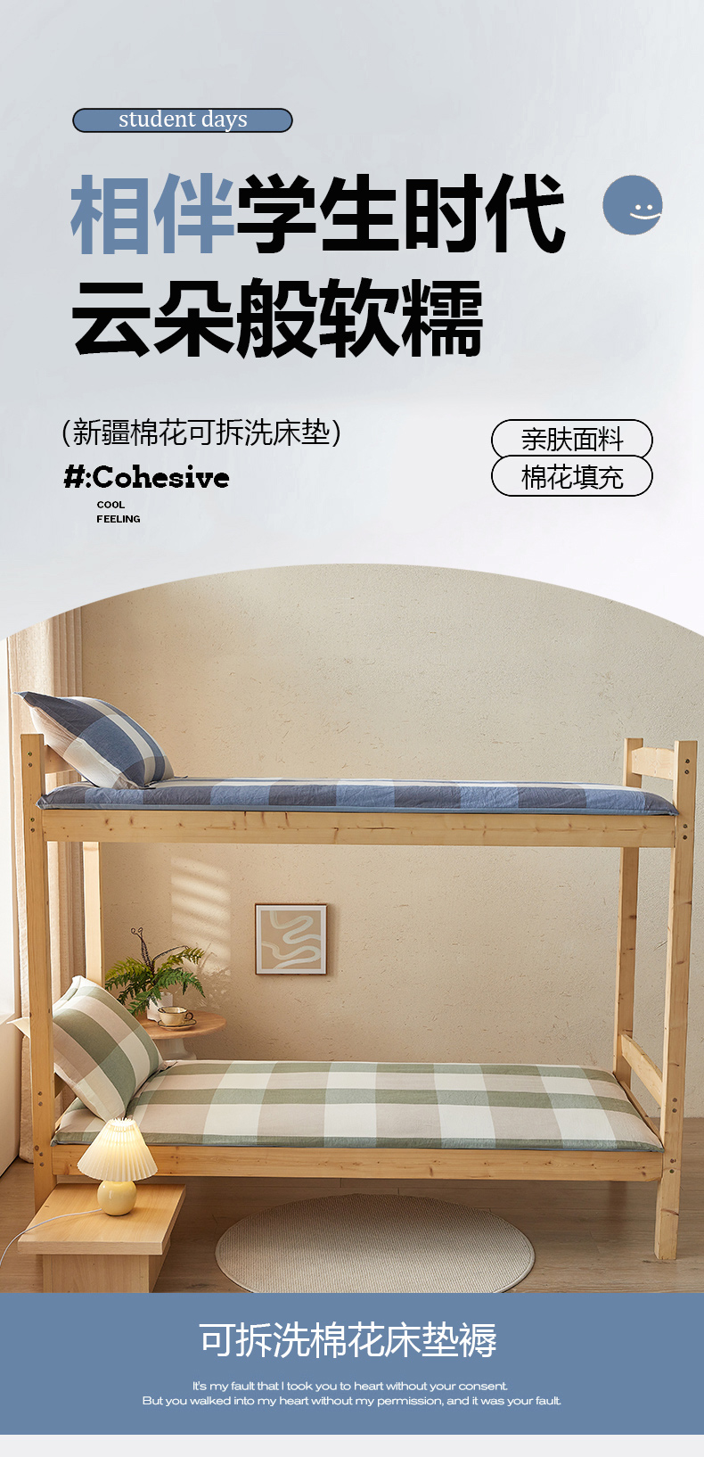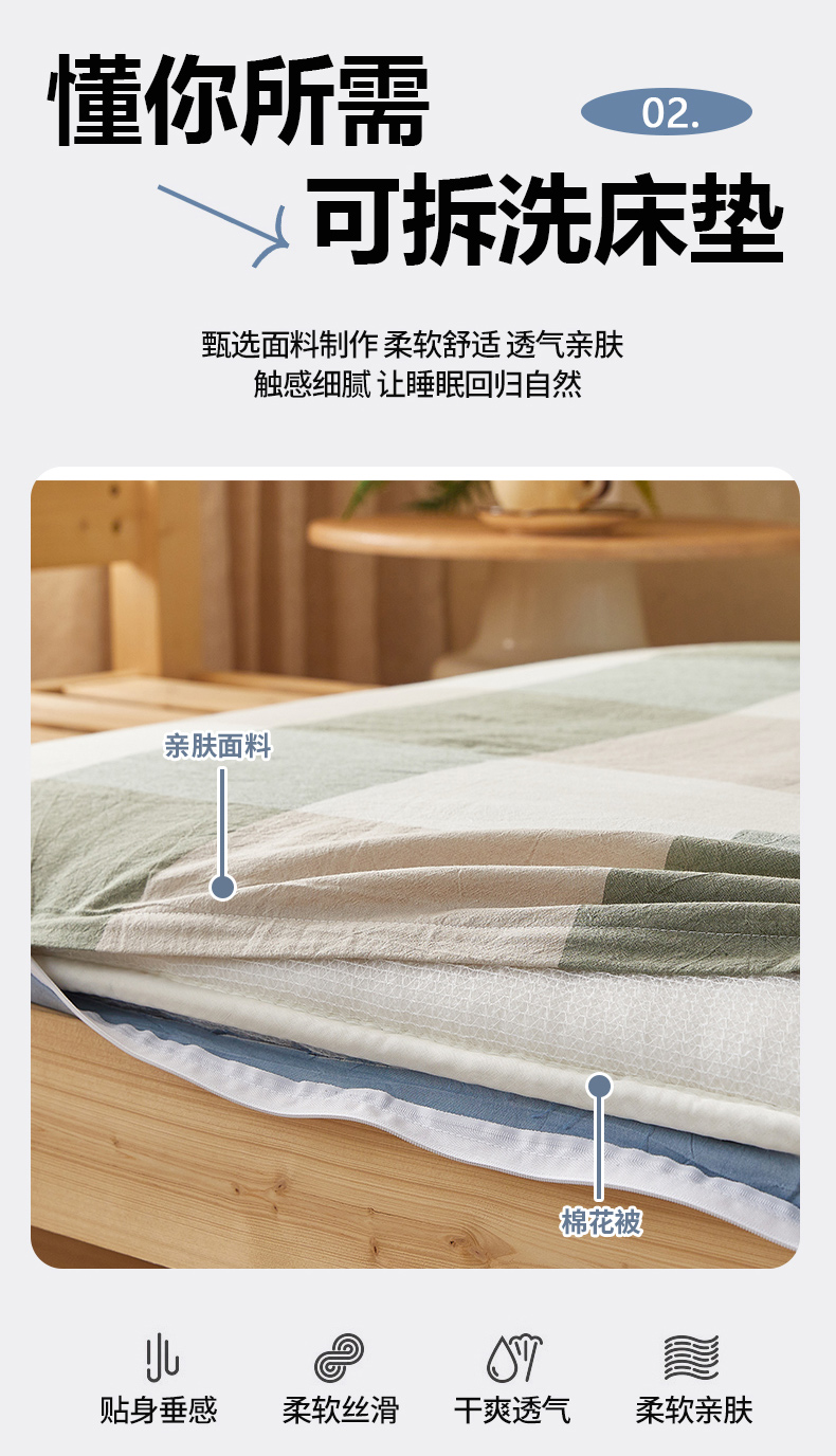 (总)悠米悠家 2025新款新疆棉花学生款可拆洗床垫,宾利兰格,高级灰格,格子控,灰色,极简绿格,简兮格,橘色小格,蓝小格,墨绿小格