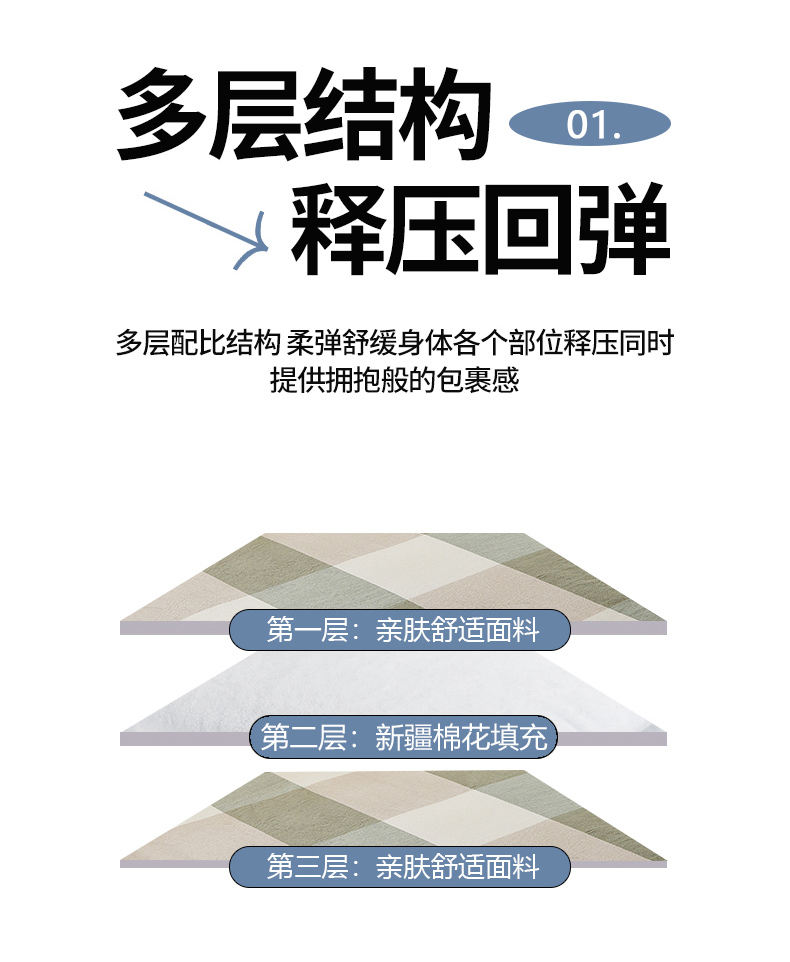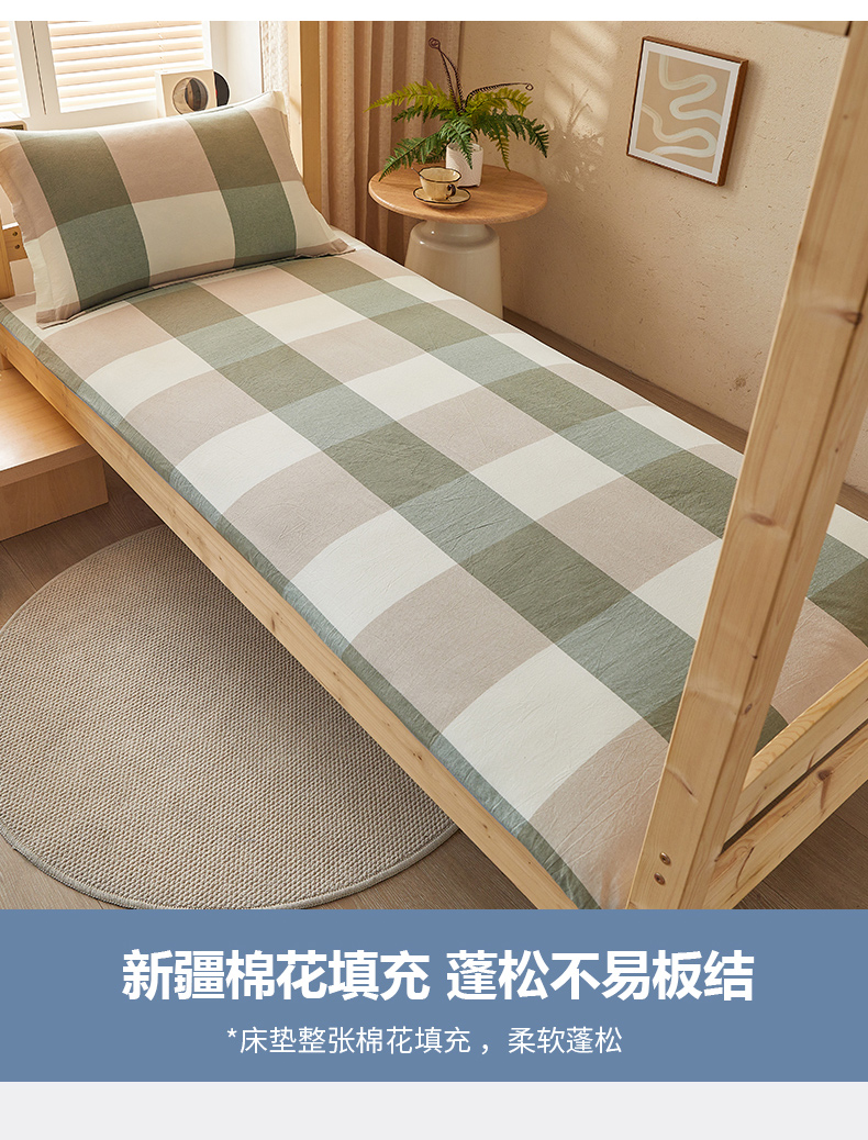 商品名称:悠米悠家 2025新款新疆棉花学生款可拆洗床垫 绿大格