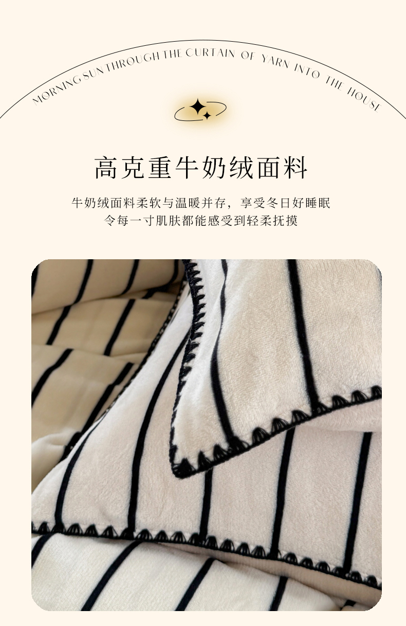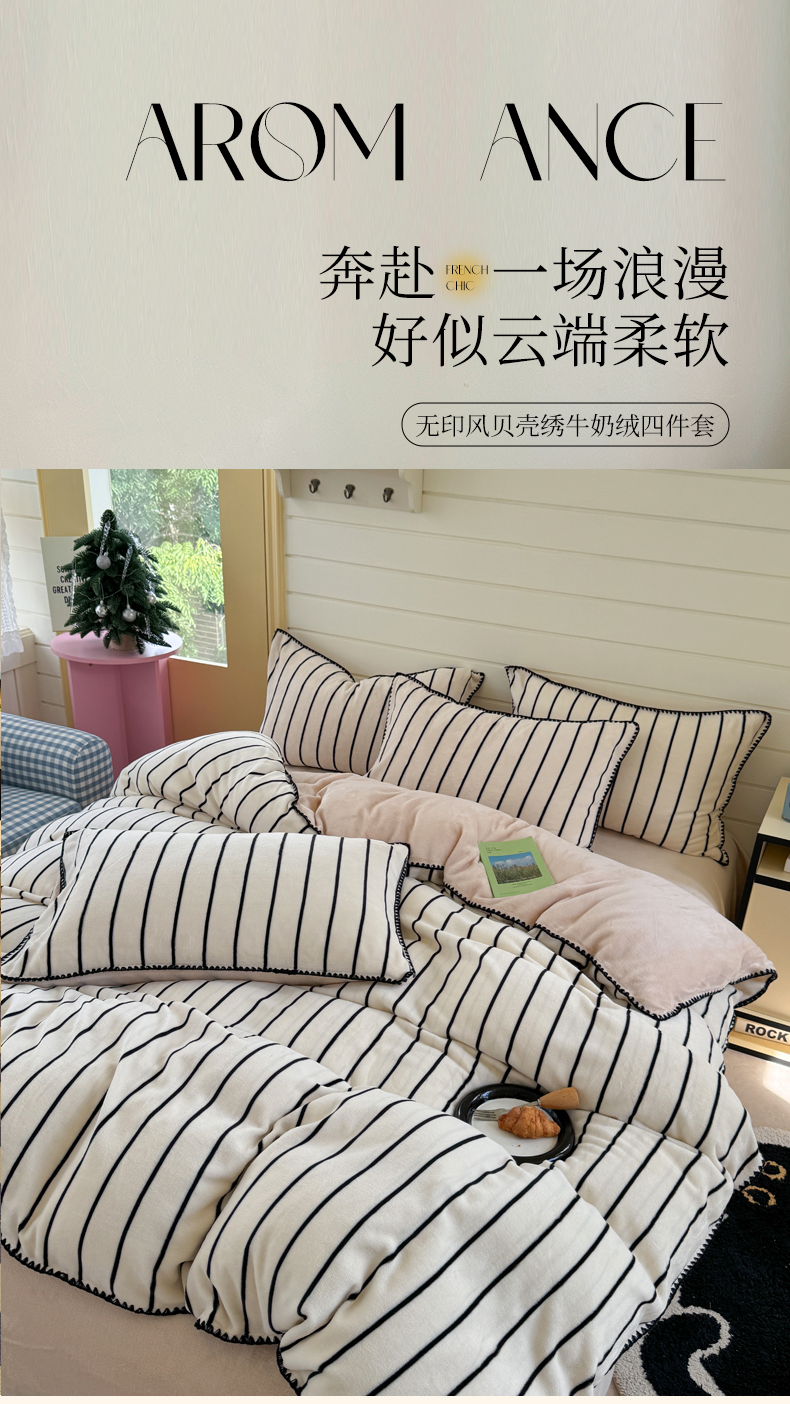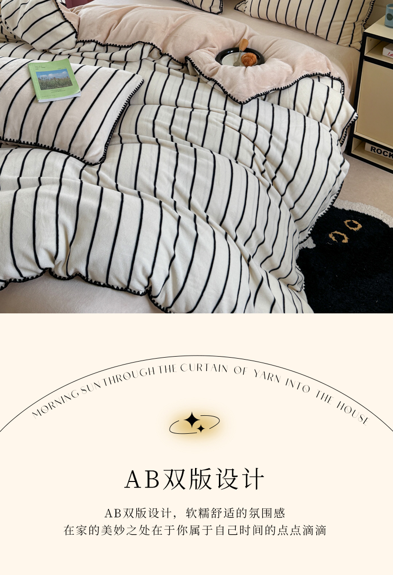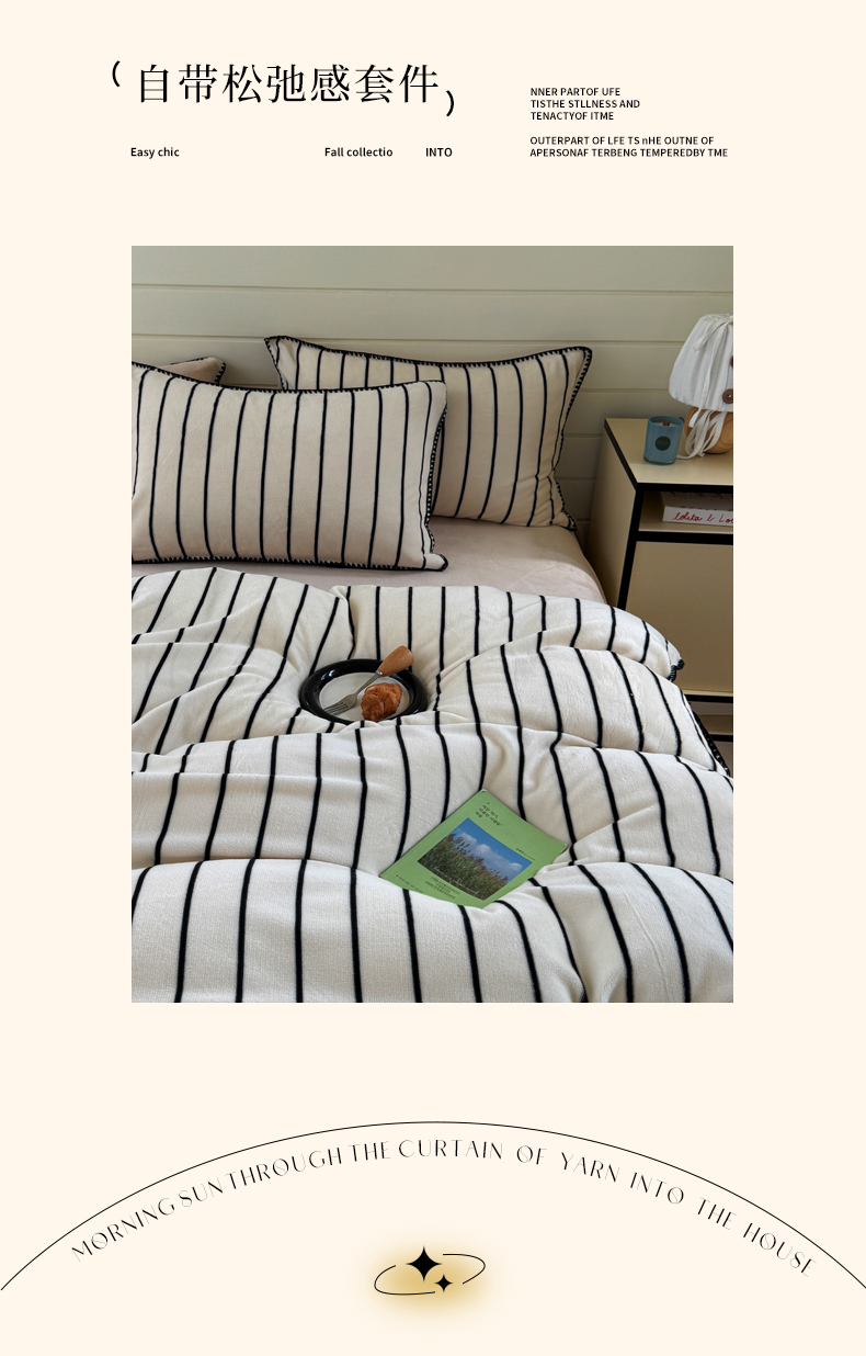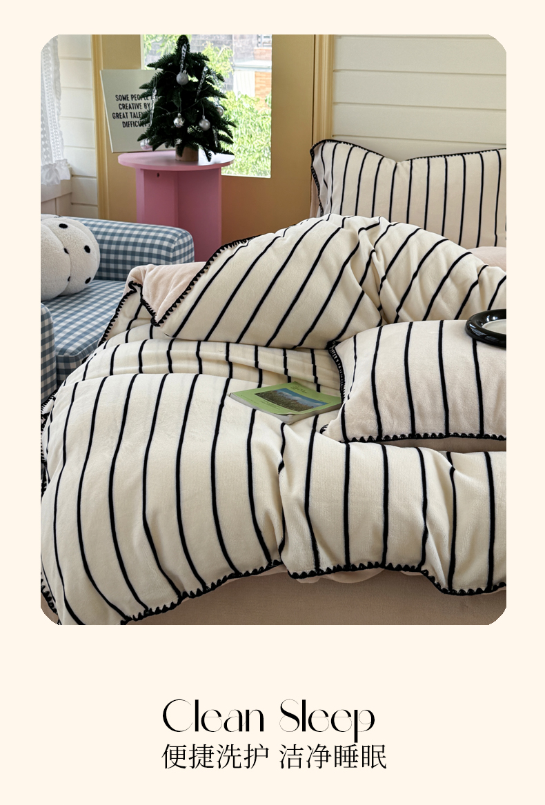 当前位置: 91家纺网 > 商品网购 > 床品套件 > 四件套 > 牛奶绒四件套 > 三朵家纺 2025新款无印风三角针牛奶绒四件套 黑白纹细条