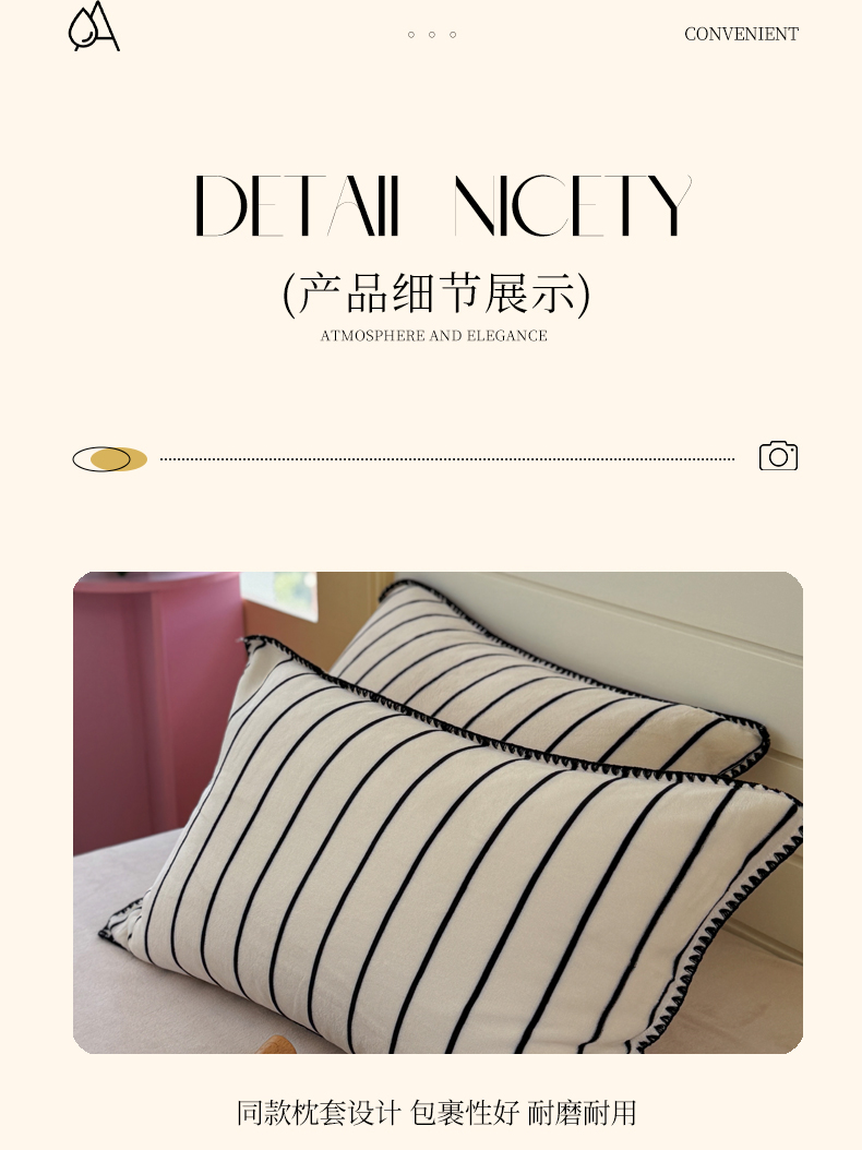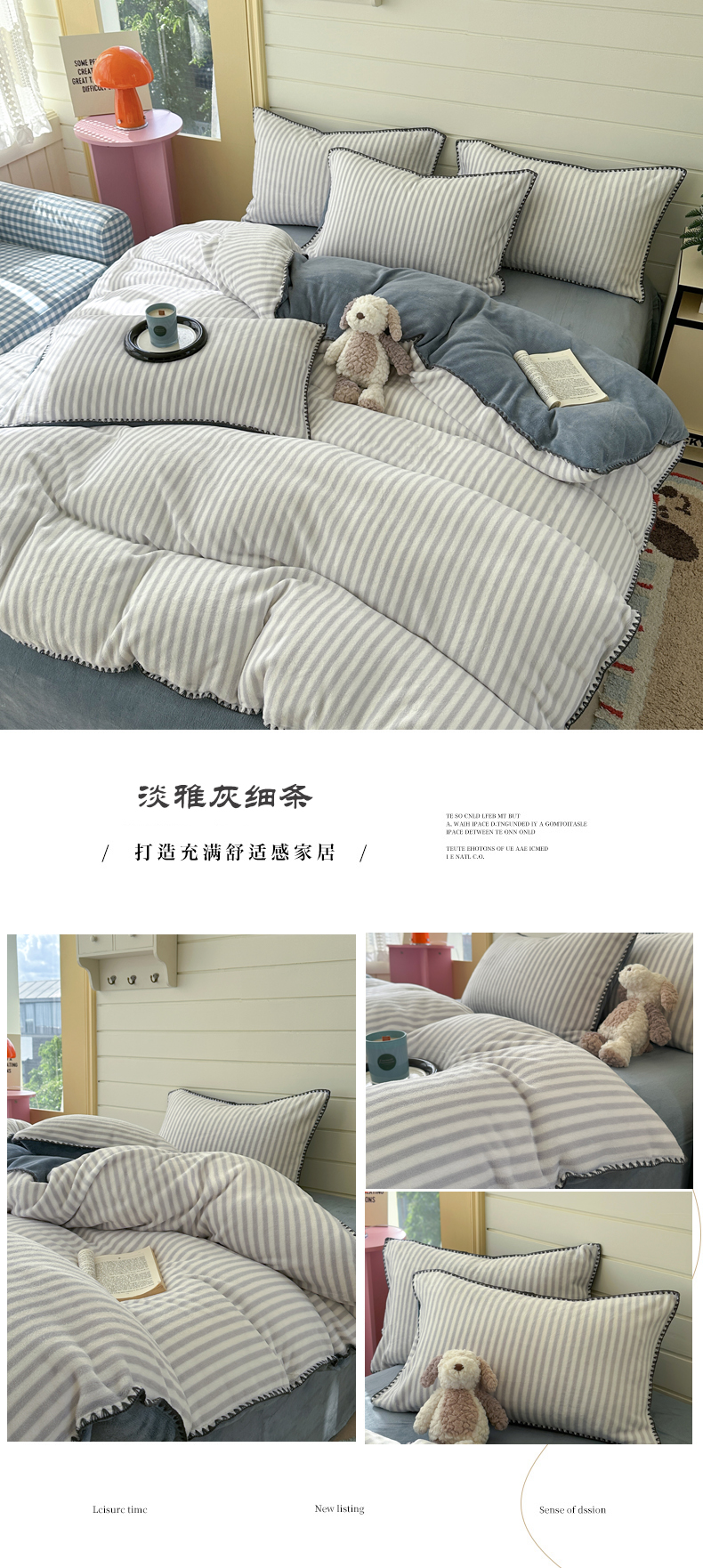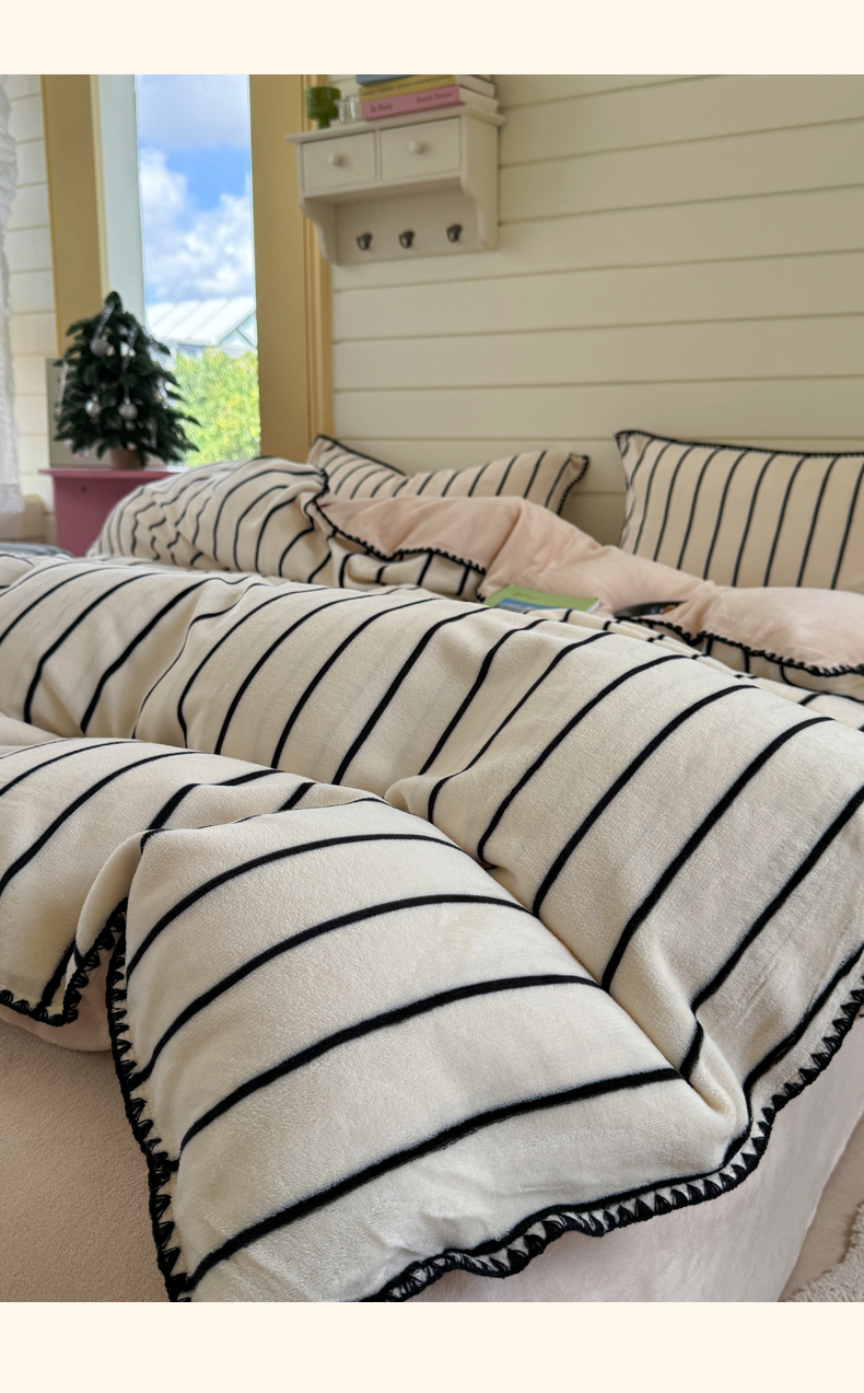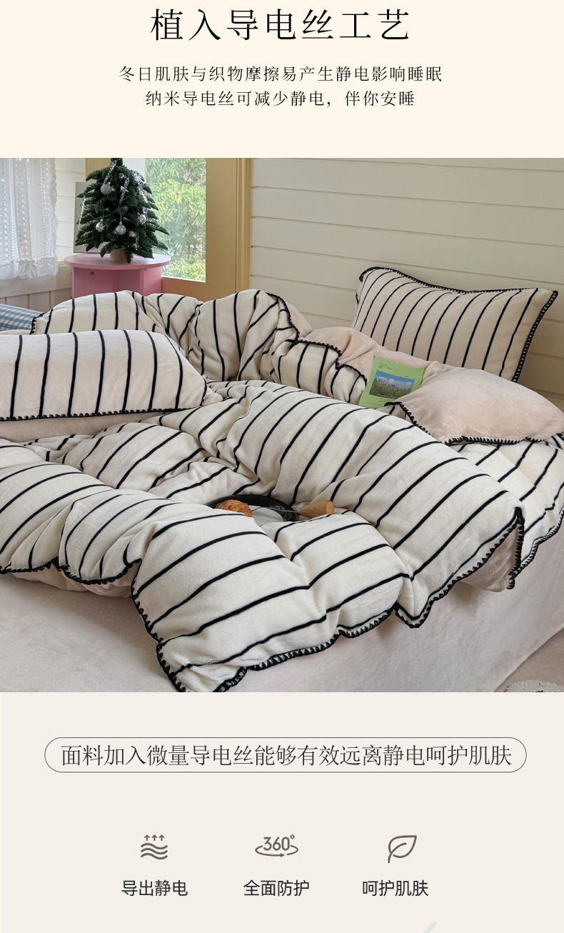 当前位置: 91家纺网 > 商品网购 > 床品套件 > 四件套 > 牛奶绒四件套 > 三朵家纺 2025新款无印风三角针牛奶绒四件套 黑白纹细条