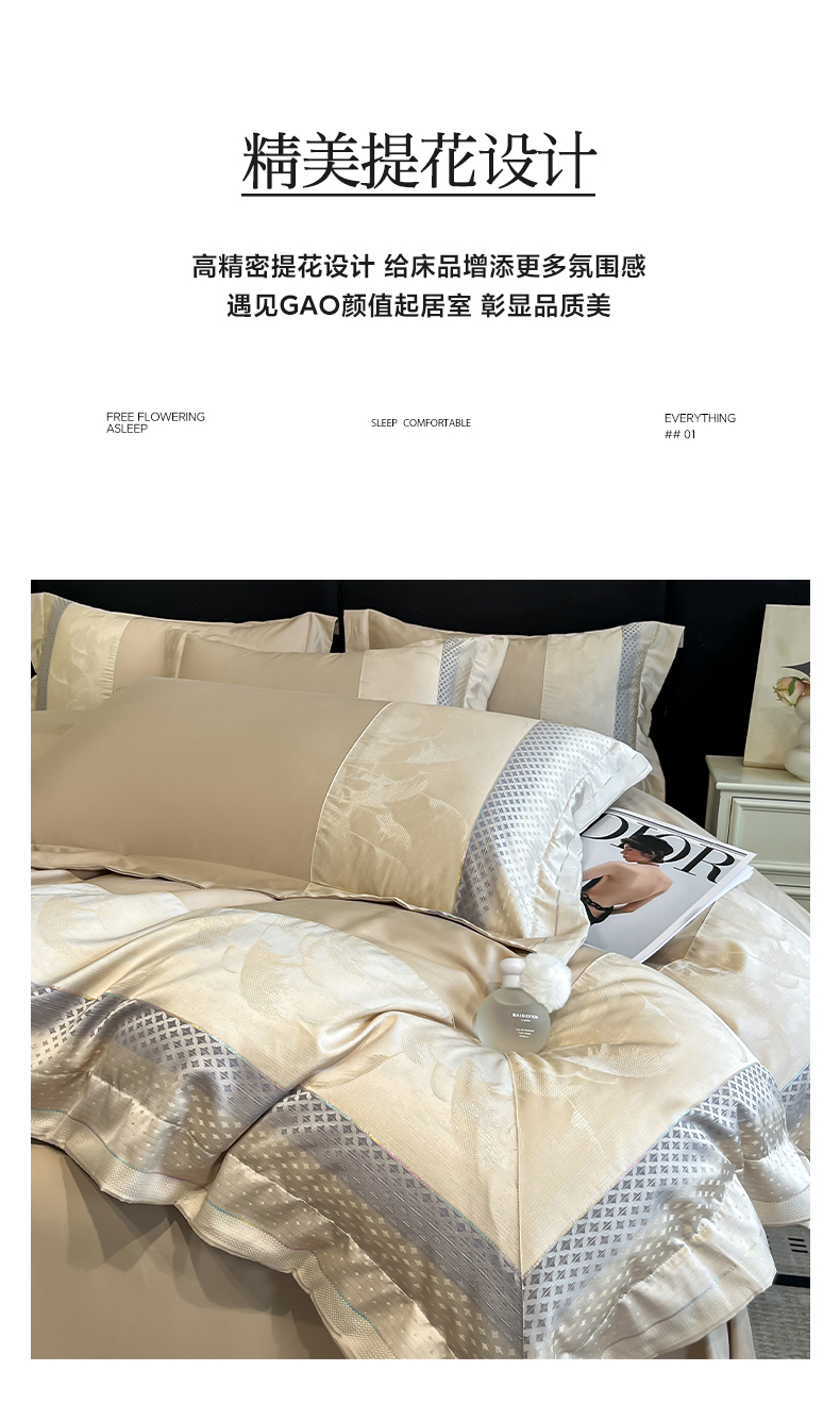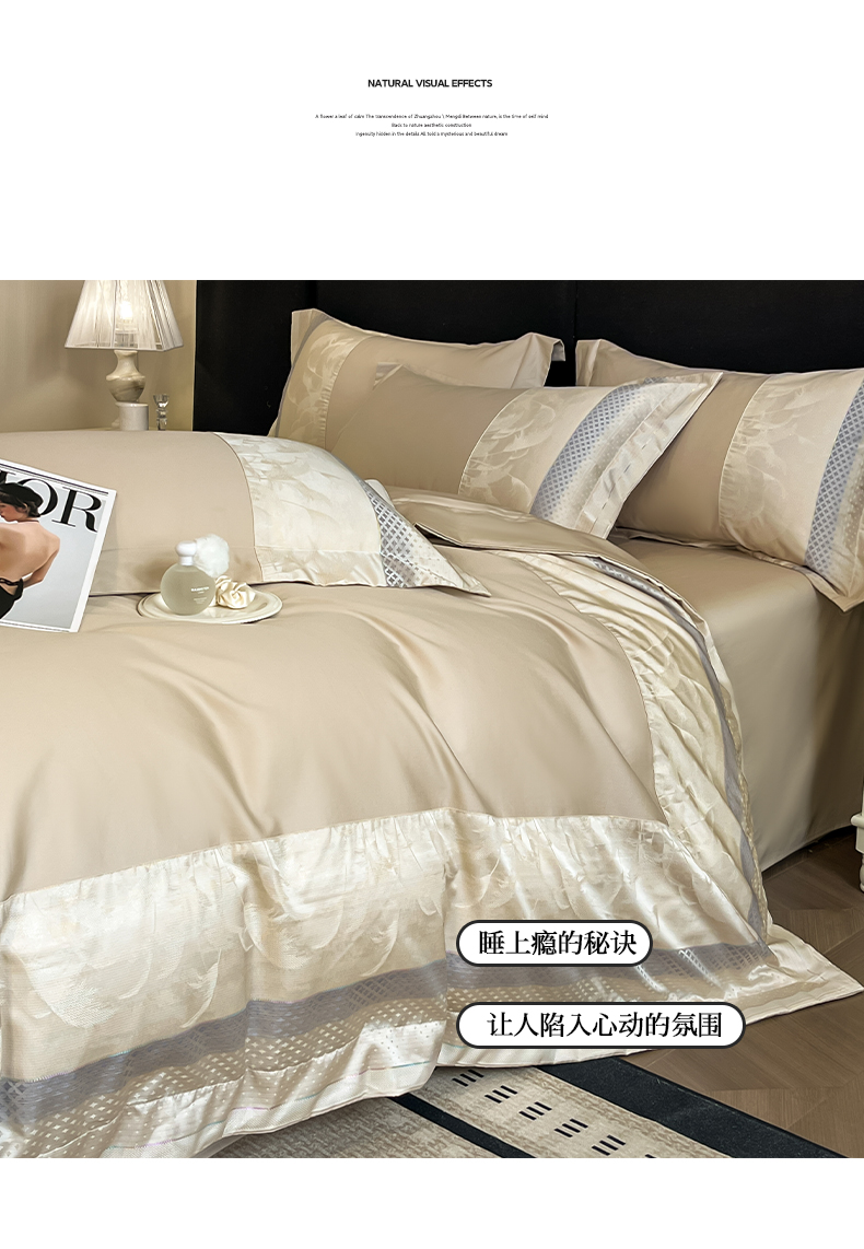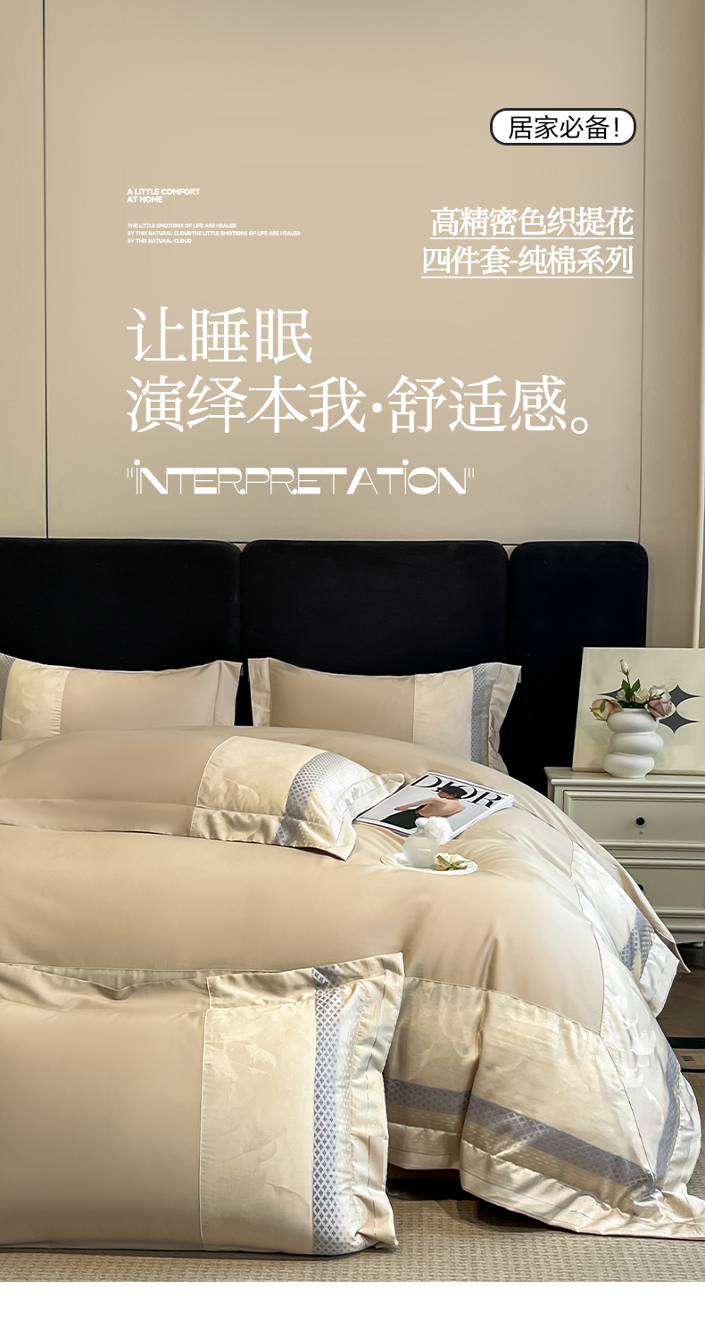 博纳家纺 2025新款多色色织提花宽边高级简奢款纯棉四件套-山木花亭 山木花亭-香槟