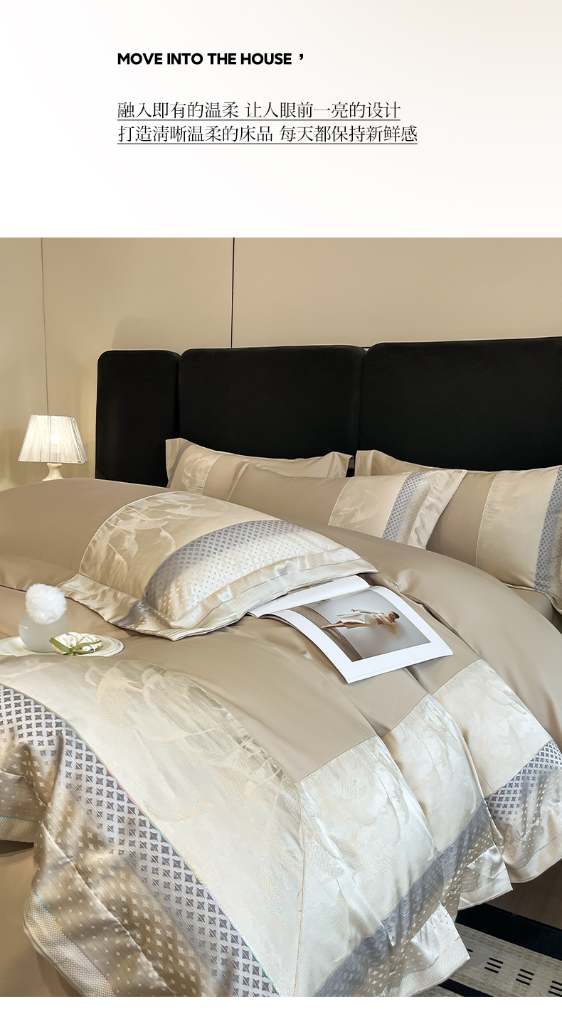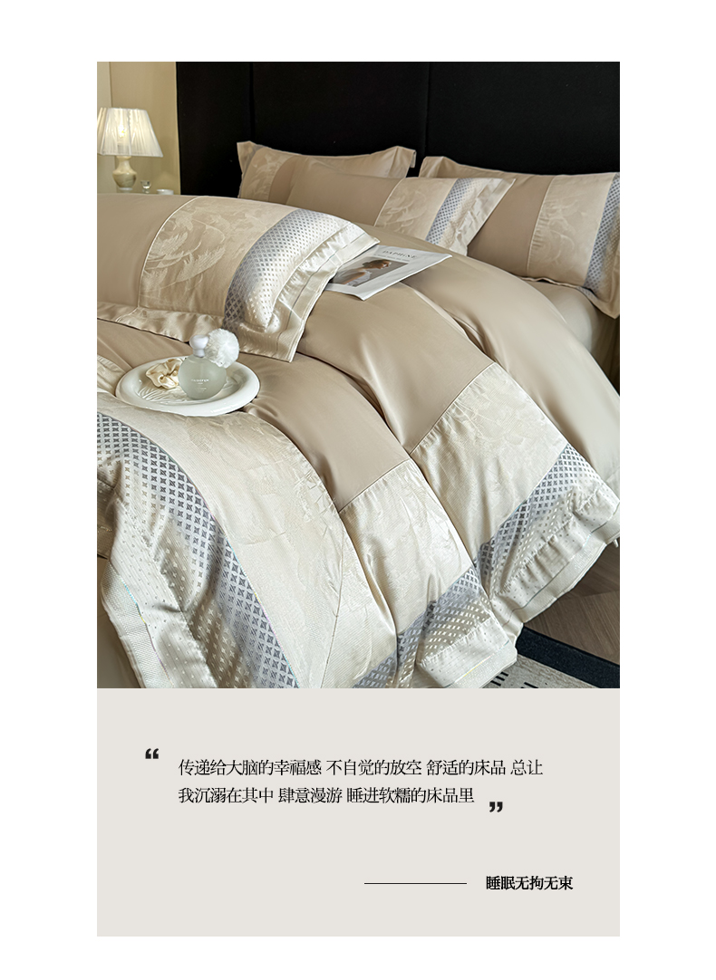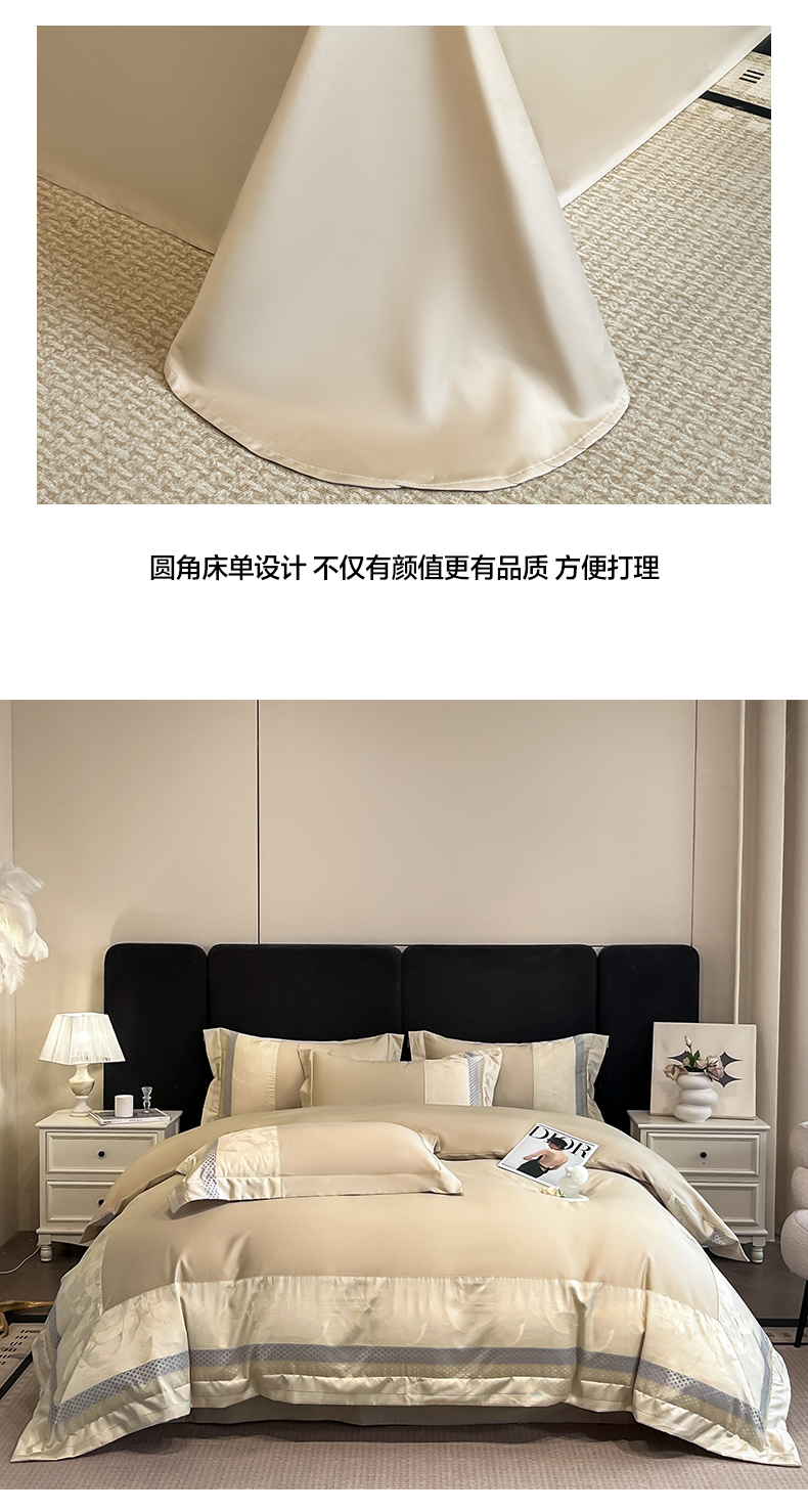 (总)博纳家纺 2025新款镂空大宽边拼角高级简奢款亲肤棉四件套-山水提花,繁星蓝,粉玉,高级灰,香槟,象牙白