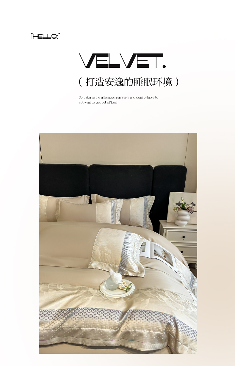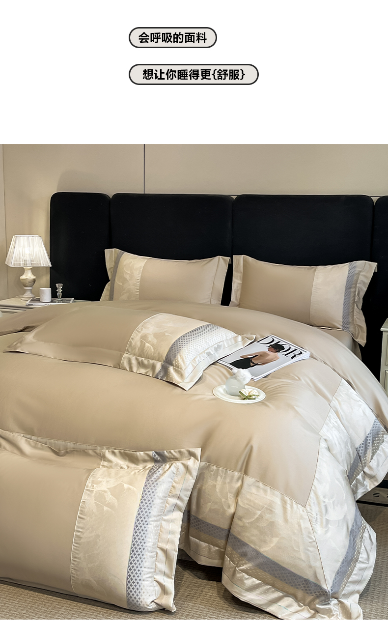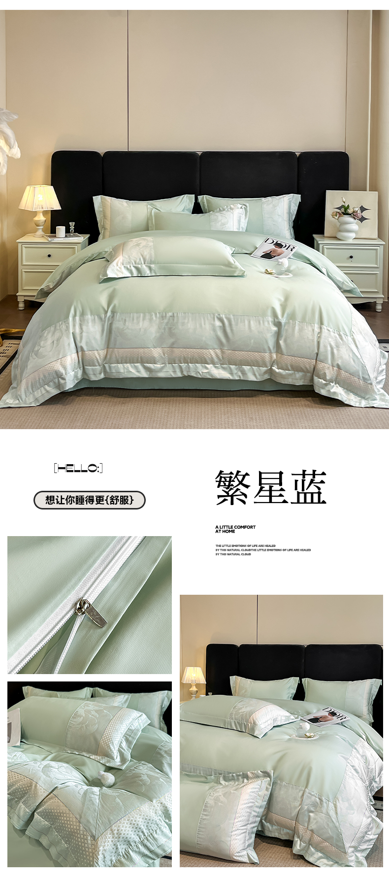 (总)博纳家纺 2025新款镂空大宽边拼角高级简奢款亲肤棉四件套-山水提花,繁星蓝,粉玉,高级灰,香槟,象牙白
