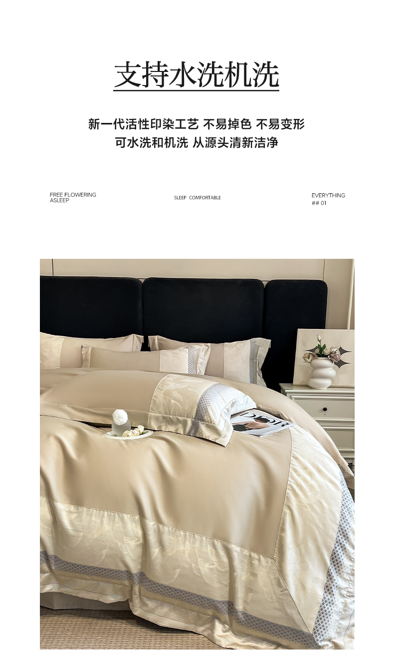 (总)博纳家纺 2026新款正宗60支纯棉 活性数码印花 宽边高级简奢 撞色拼角 纯棉四件套,查尔斯,清沙月贝,睡美人,玉树临风