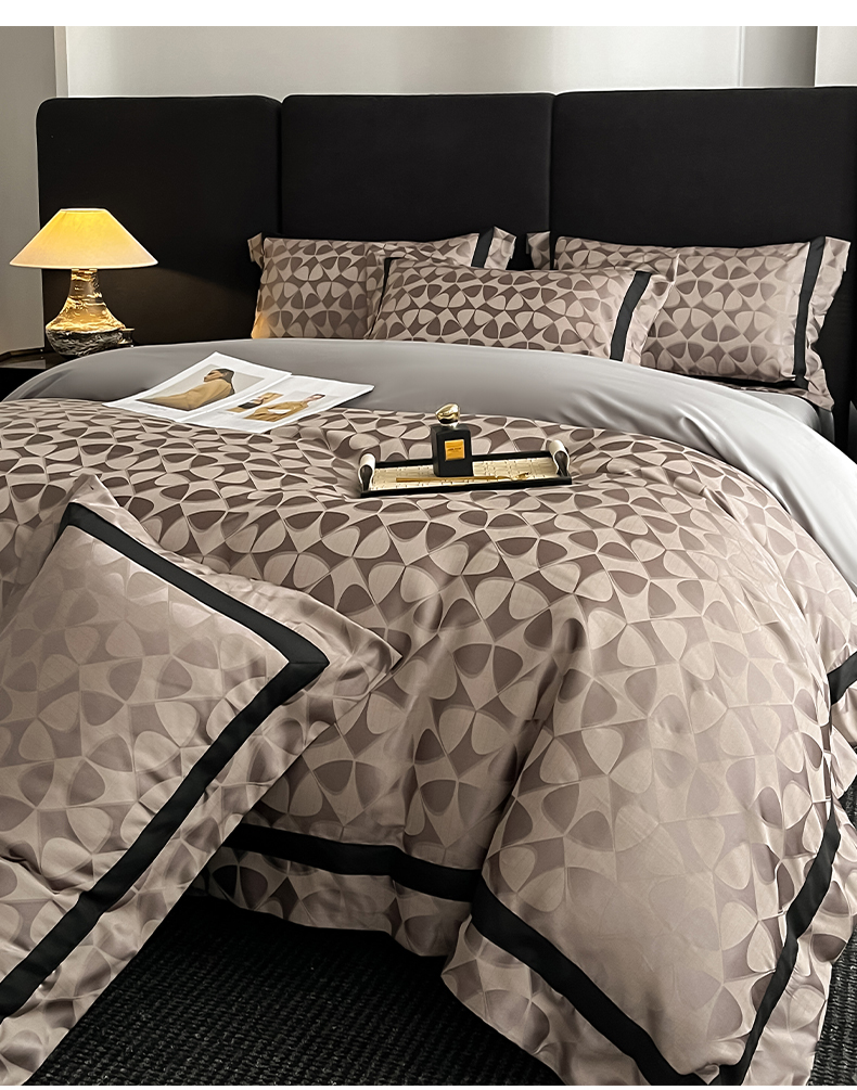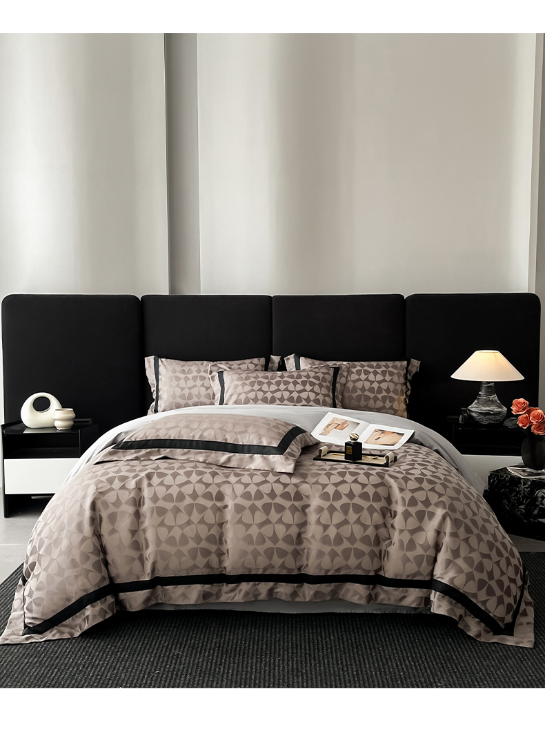 (总)博纳家纺 2025新款镂空大宽边拼角高级简奢款亲肤棉四件套-山水提花,繁星蓝,粉玉,高级灰,香槟,象牙白