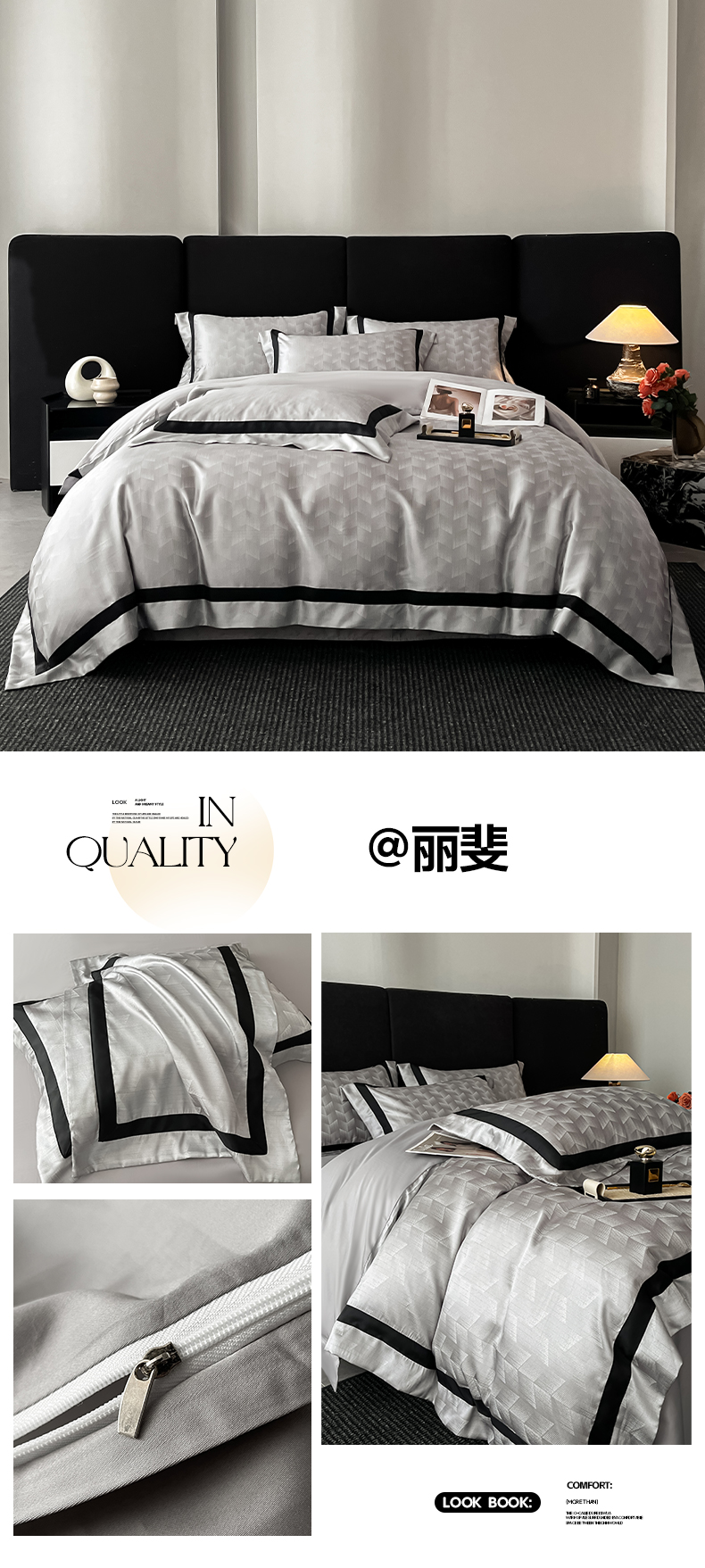 (总)博纳家纺 2025新款双色宽边高级简奢款四件套-维多利亚,高级灰,咖色,香槟,象牙白