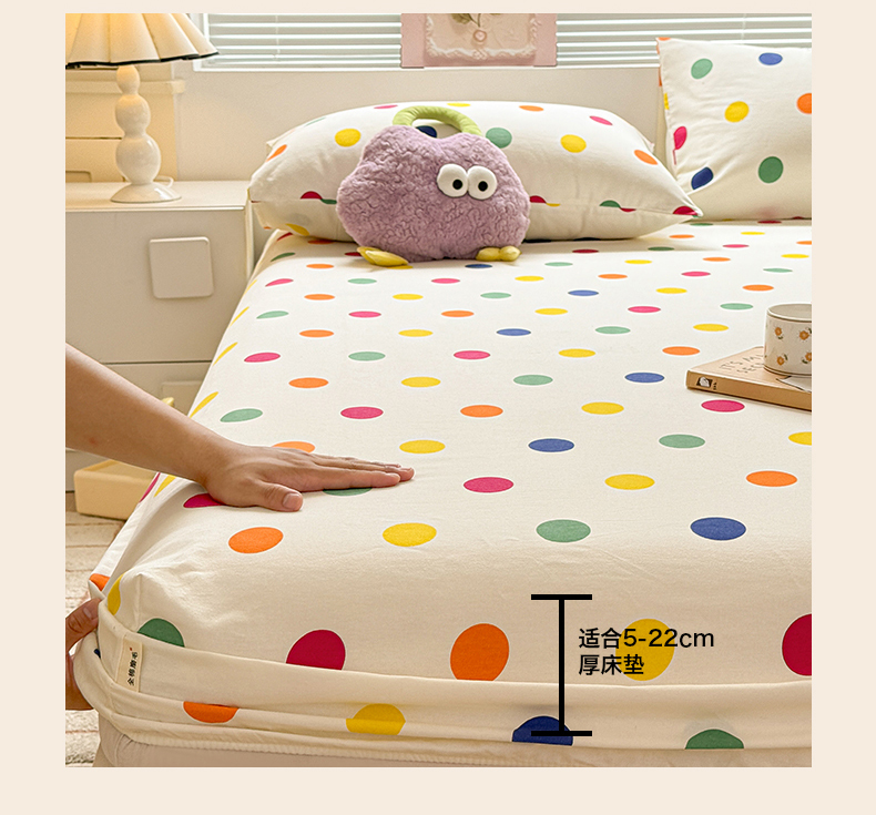 • 91家纺网 家纺一手货源 找家纺 名兮家居 2025新款亲肤舒适全棉纯棉磨毛印花床笠单床笠单品床笠单件床笠 柔色圆点