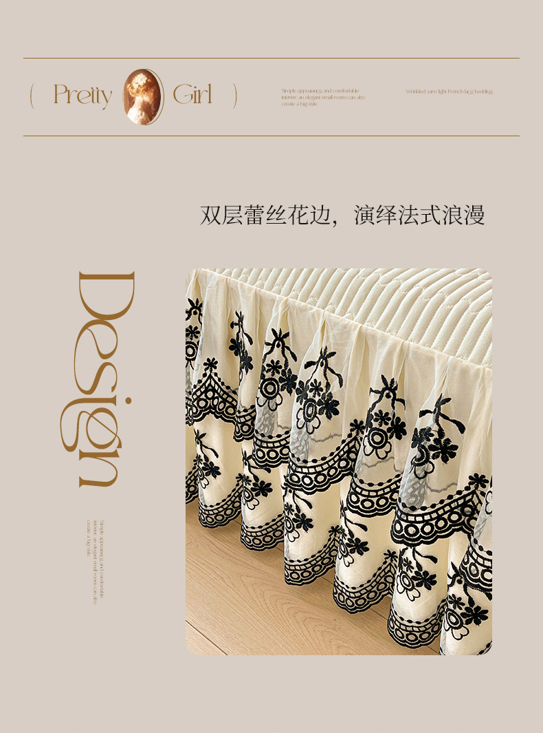 商品名称:(总)鼎丰家纺 2025新款皱皱纱双层花边夹棉床裙单床裙床裙单品-梦想系列