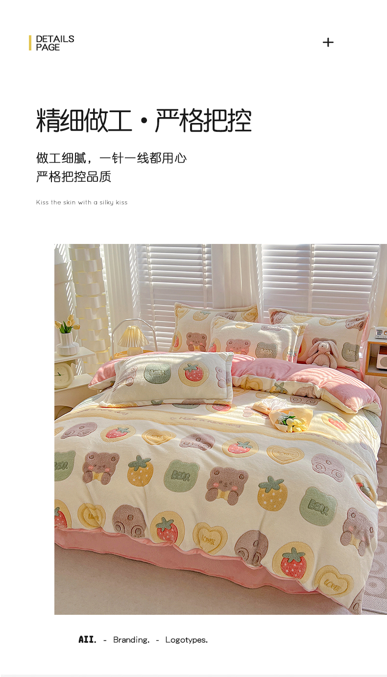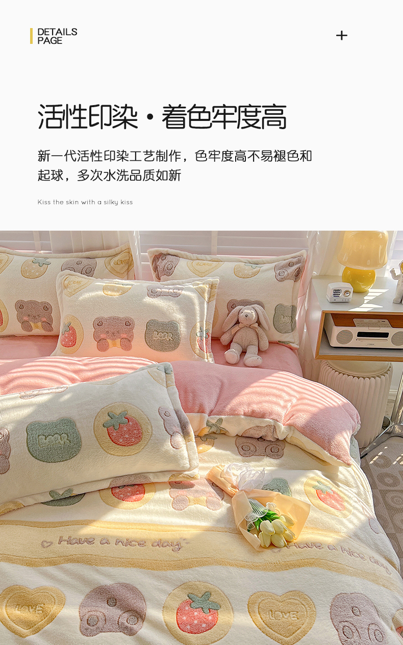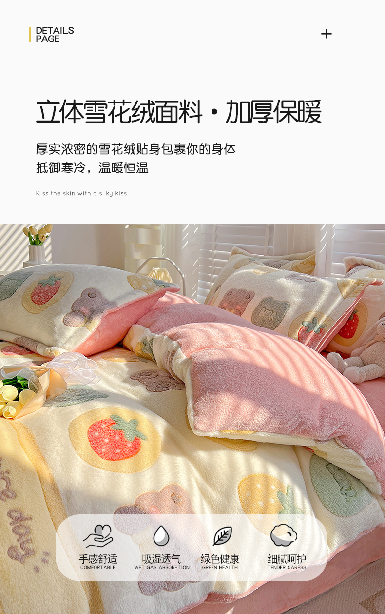 商品名称:(总)居易简 2025秋冬新品立体雪花绒单被套牛奶绒法莱绒雕花绒兔毛卡通四件套学生季四件套