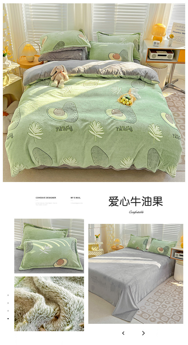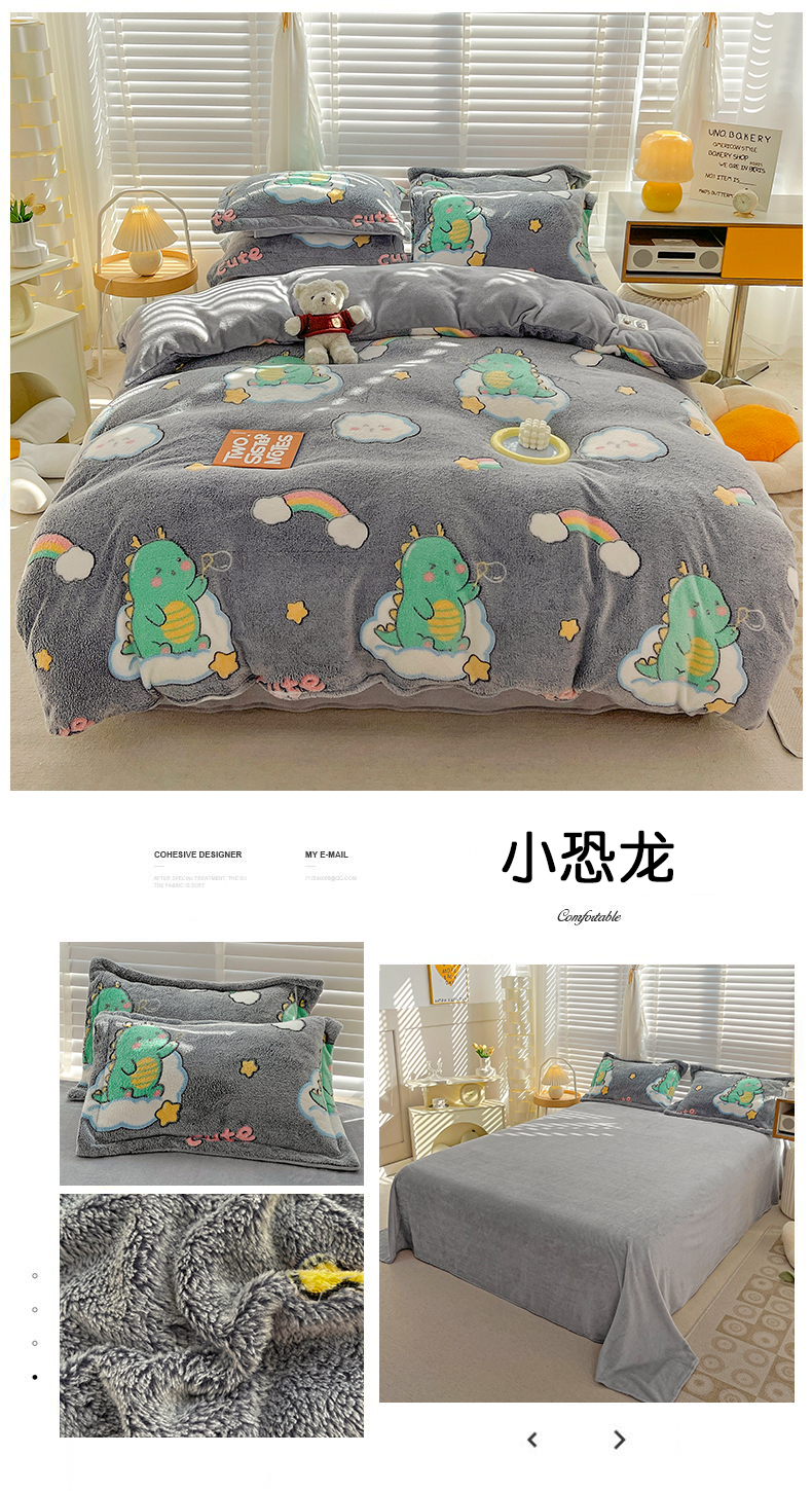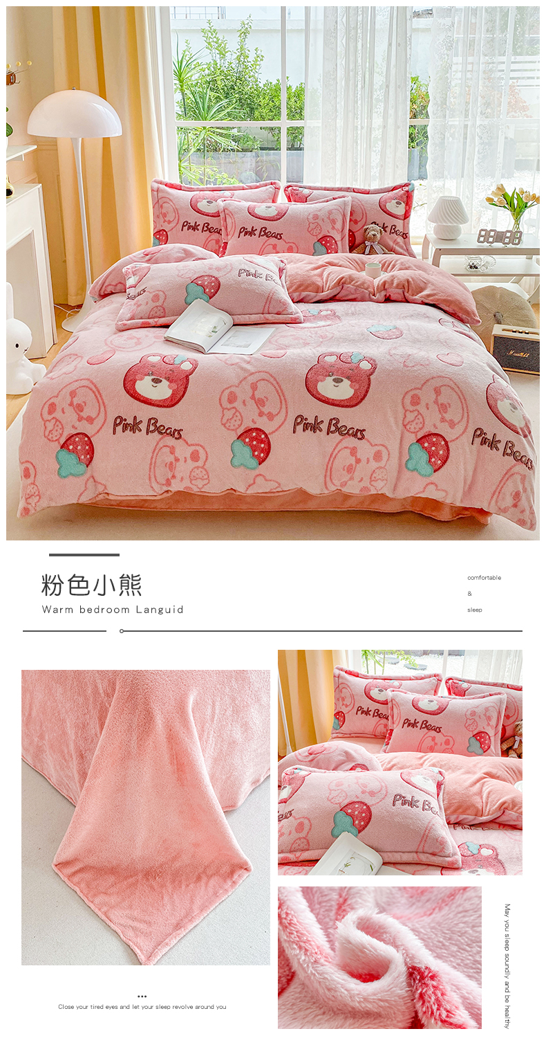 商品名称:(总)居易简 2025秋冬新品立体雪花绒单被套牛奶绒法莱绒雕花绒兔毛卡通四件套学生季四件套
