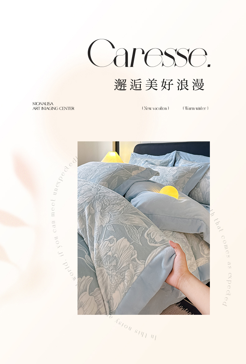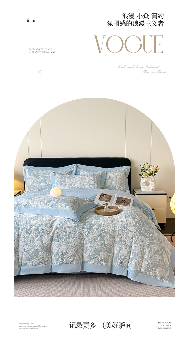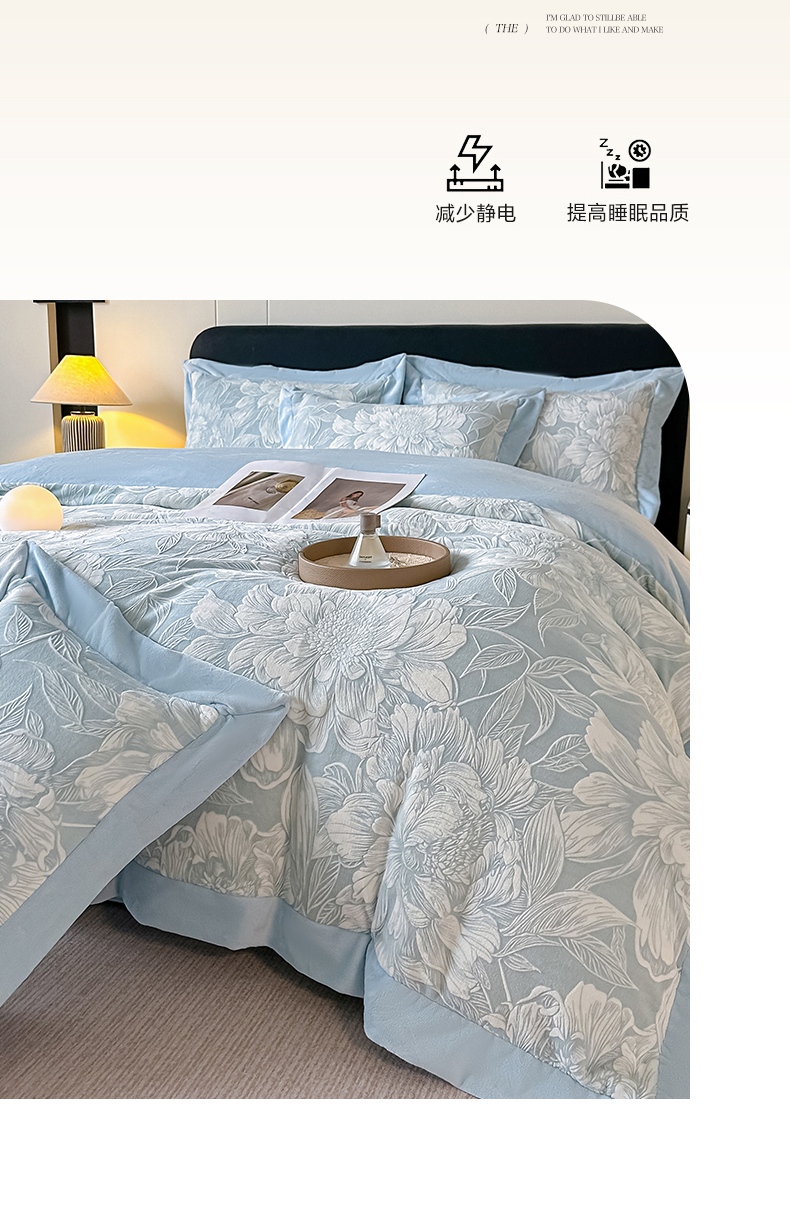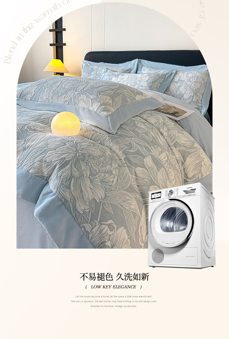 商品名称:锦铭源家纺 2025新款烂花75D全消光超柔樱花绒牛奶绒四件套拼角四件套【有买家秀】 繁花织梦-蓝