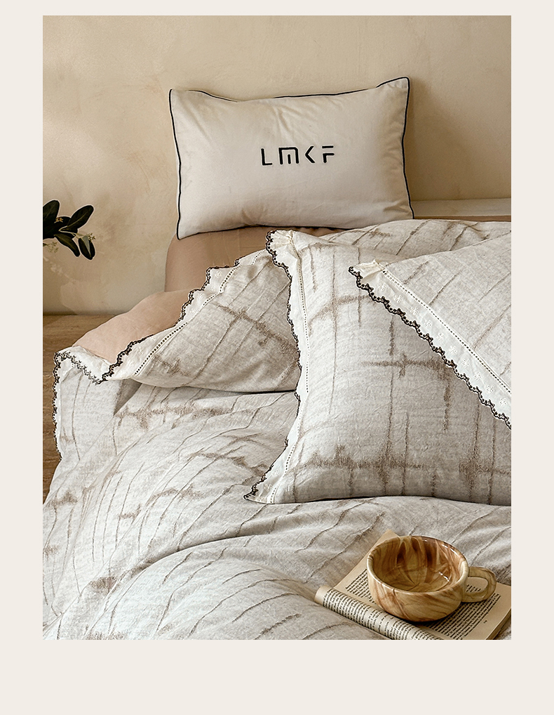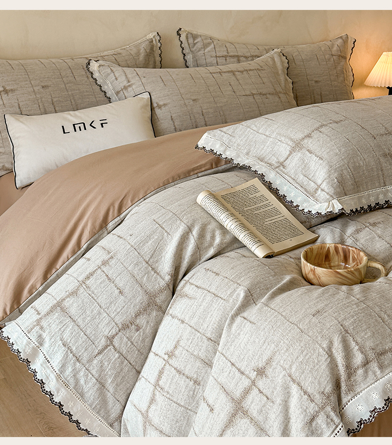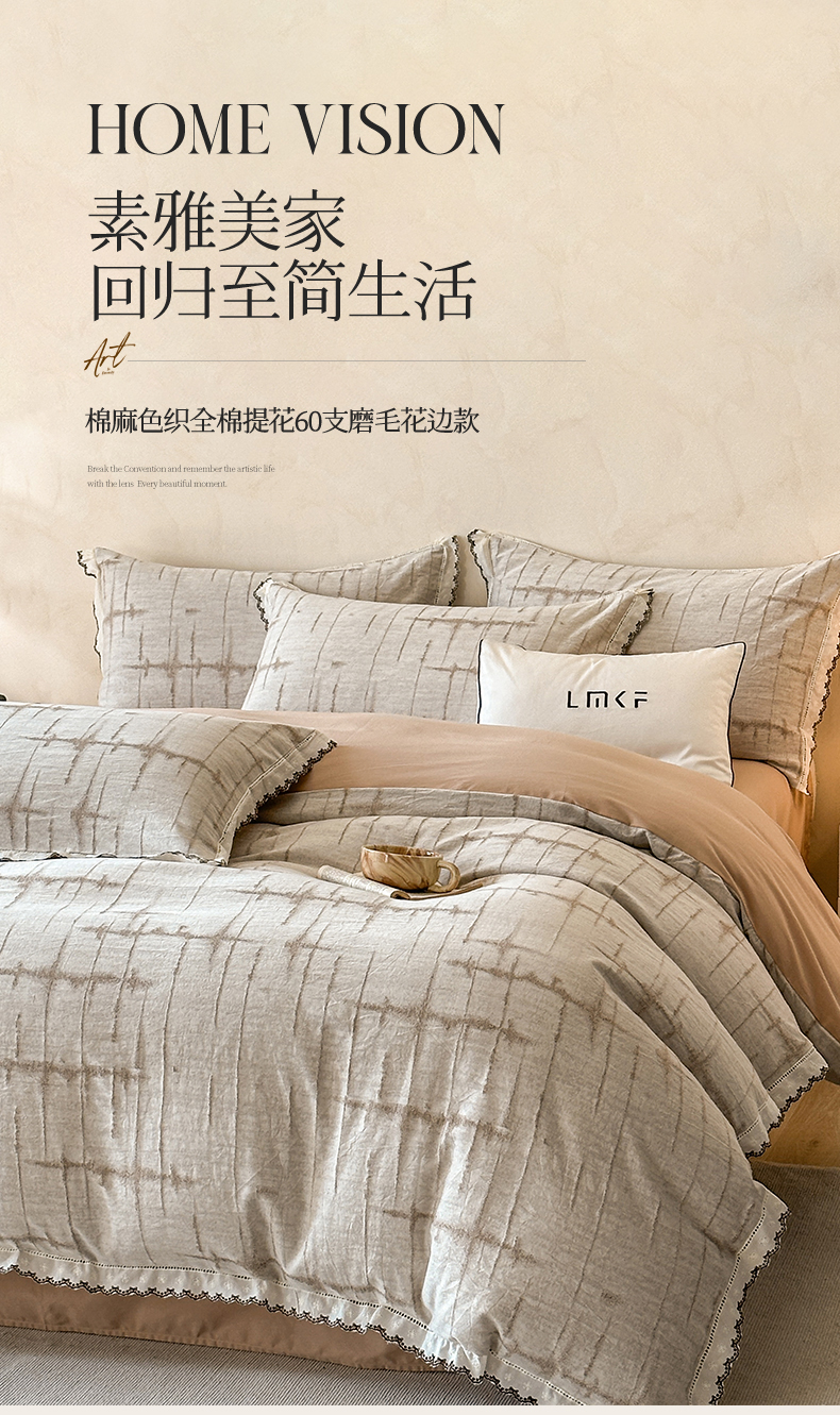 蓝米卡夫 2025秋冬-棉麻色织全棉提花60支磨毛花边款(礼盒包装)提供买家秀 无限之光-卡其