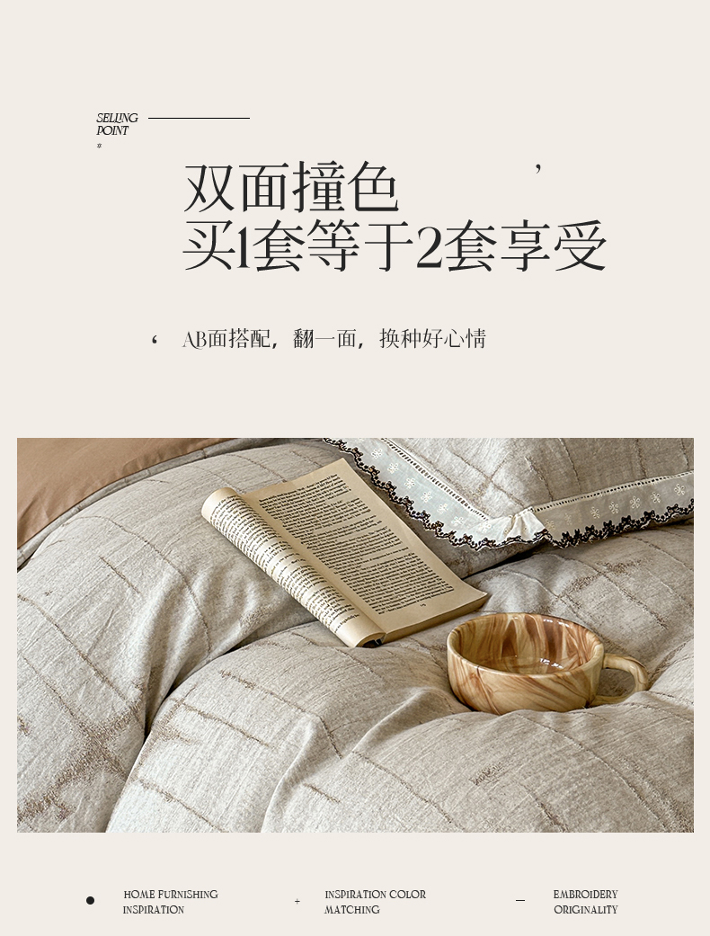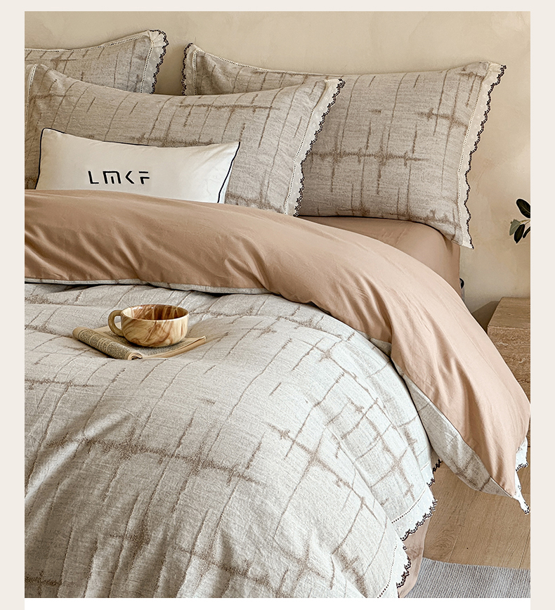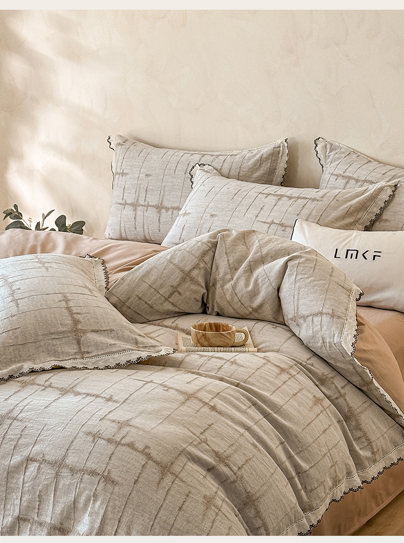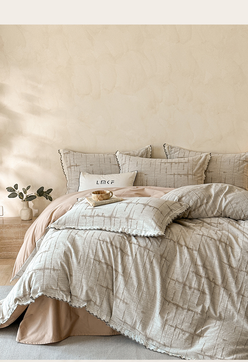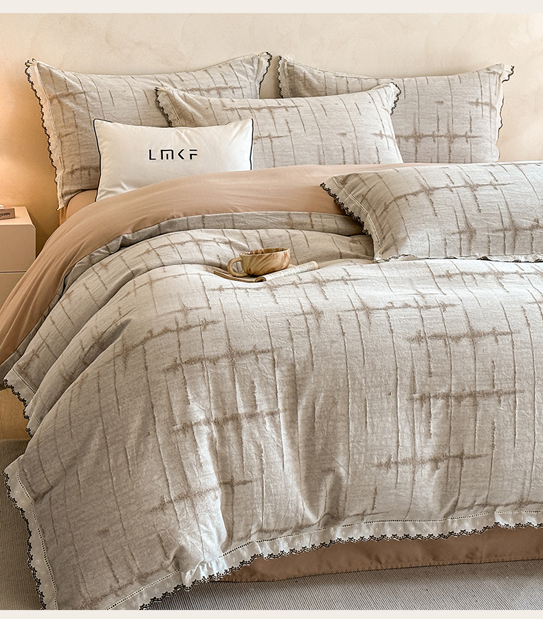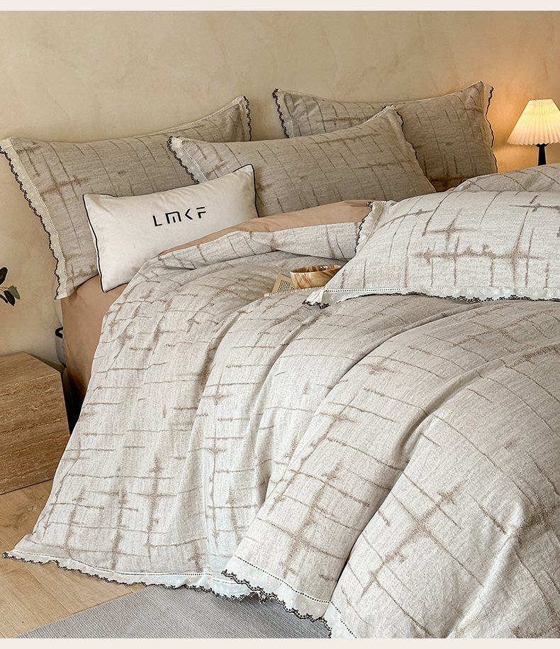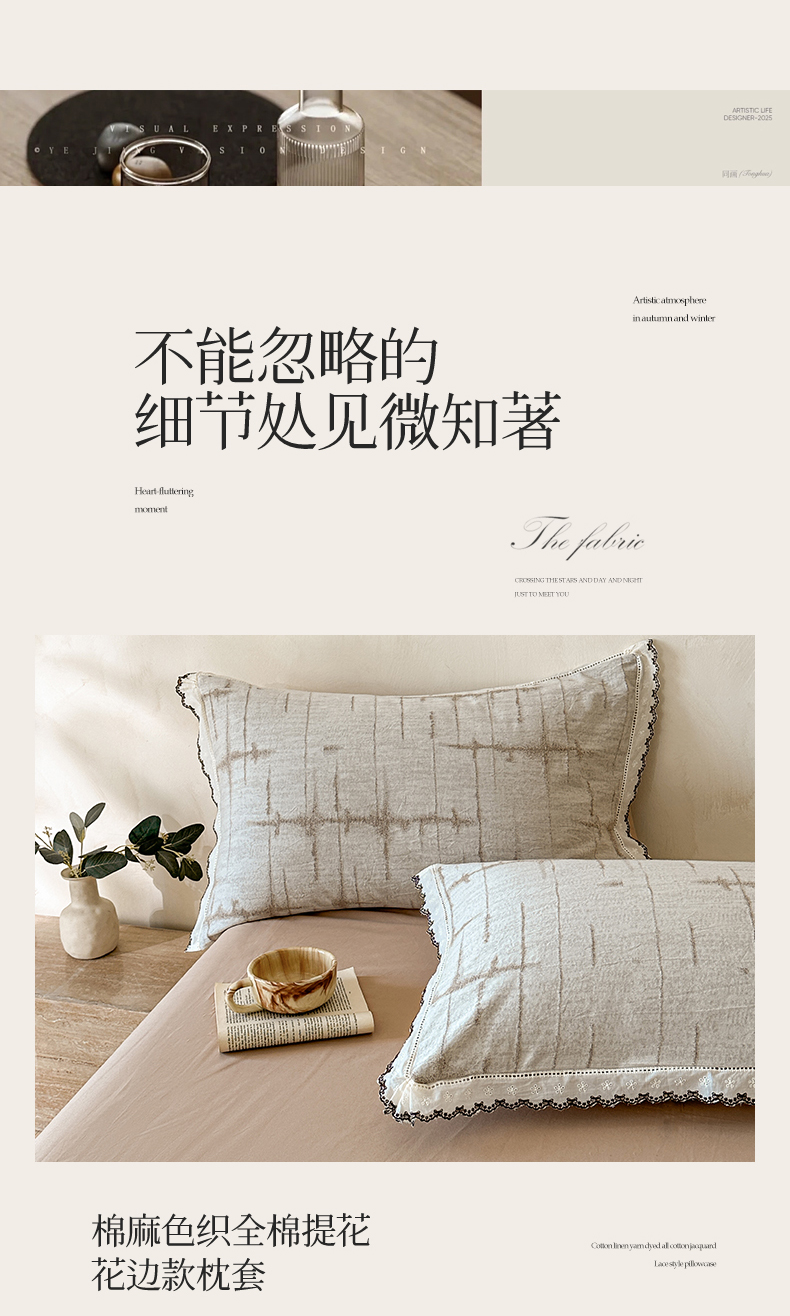 商品名称:蓝米卡夫 2025秋冬-棉麻色织全棉提花60支磨毛花边款(礼盒包装)提供买家秀 无限之光-卡其