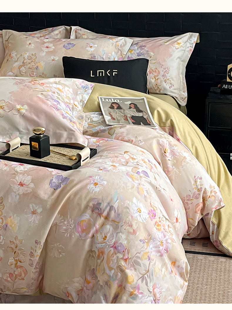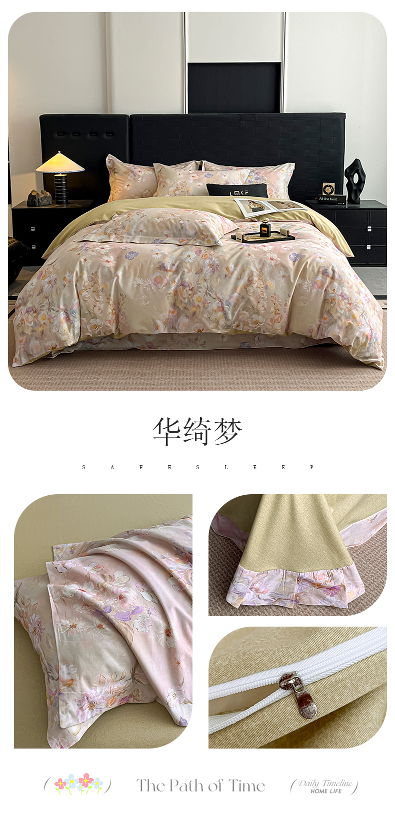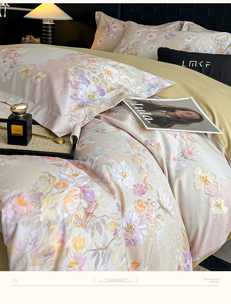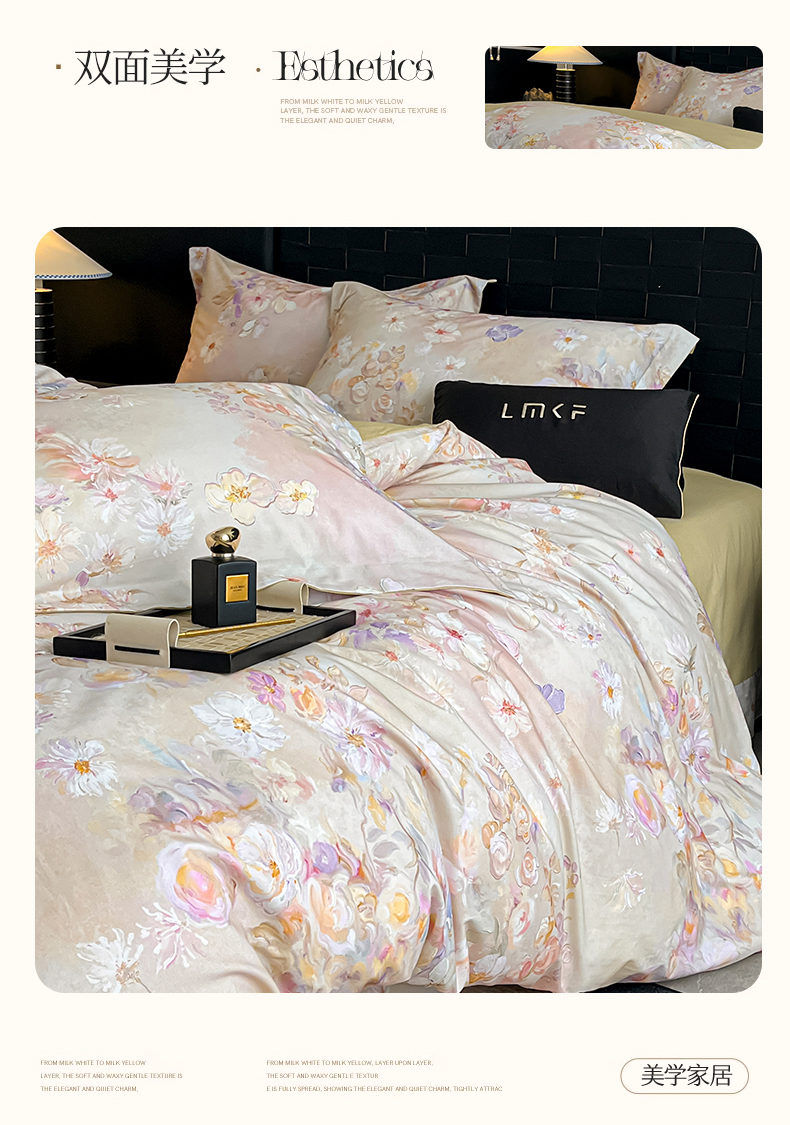 (总)蓝米卡夫 2026夏季新款60S天丝提花数码印花四件套(礼盒包装),春之语-米,春之语-紫,花海秘境-粉,花海秘境-紫,夏之初